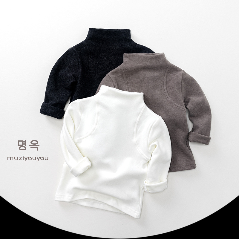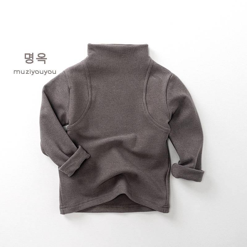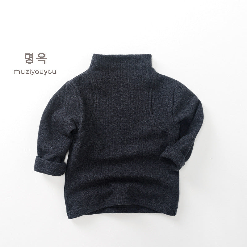 25238SE-秋冬季韓版車線半高領素色長袖上衣