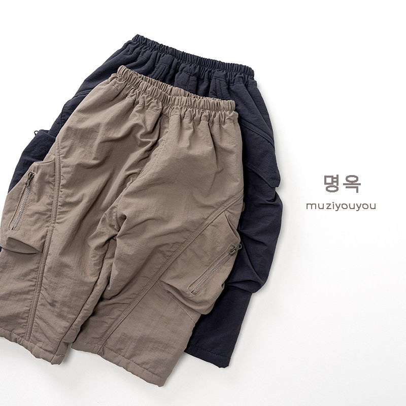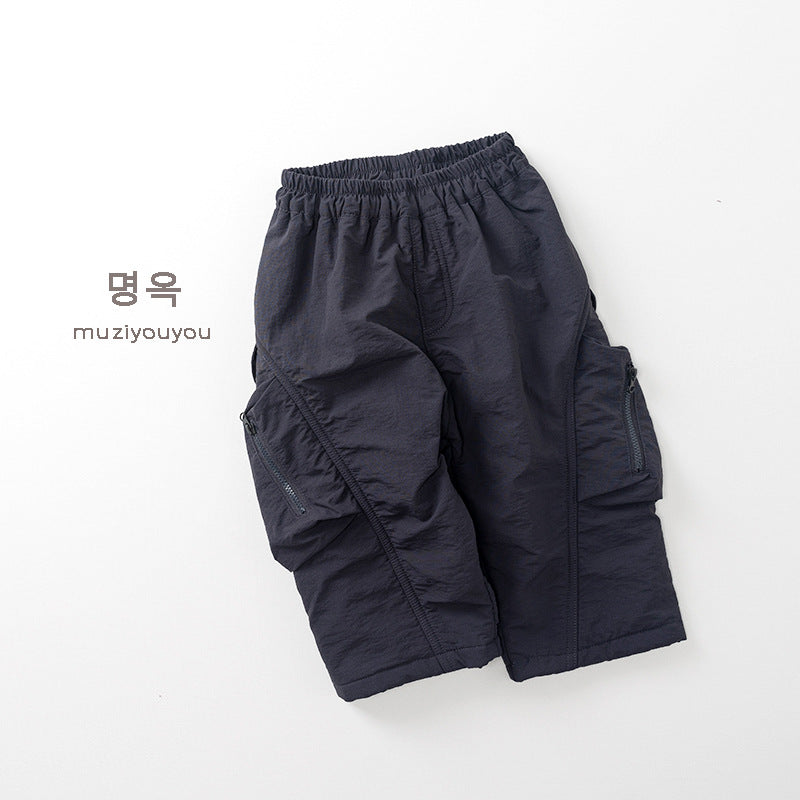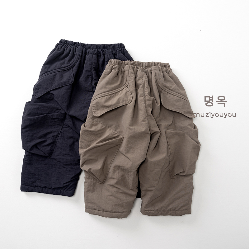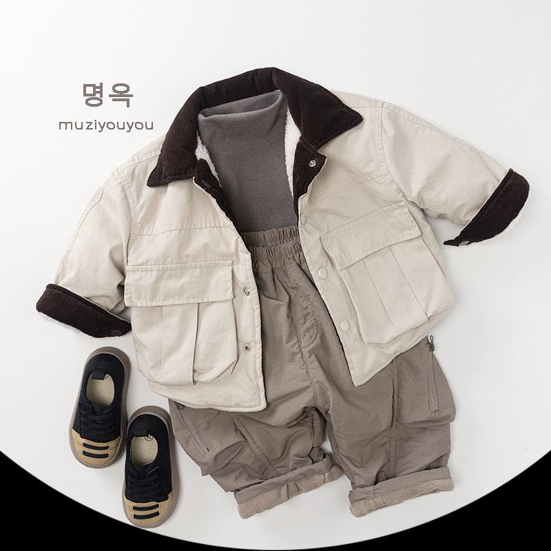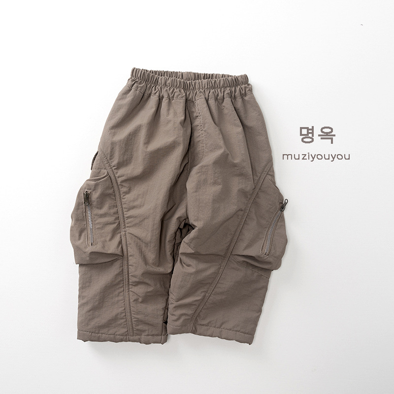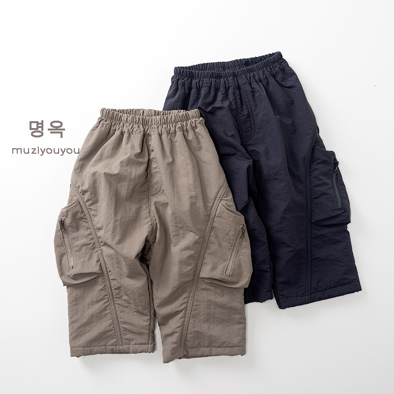 25239PA-冬季韓版兒童刷絨加厚個性工裝長褲