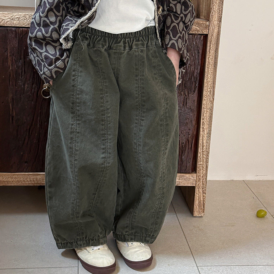 25C17PA-秋季拼接闊腿蘿蔔九分褲