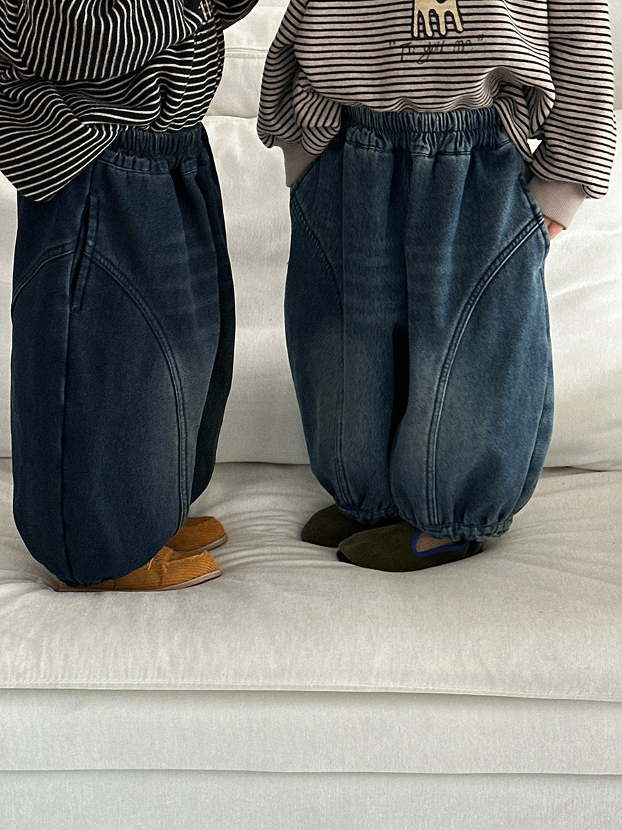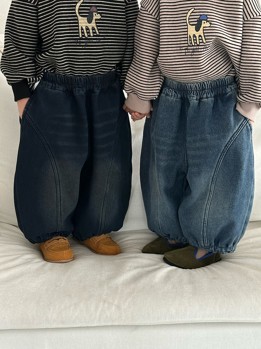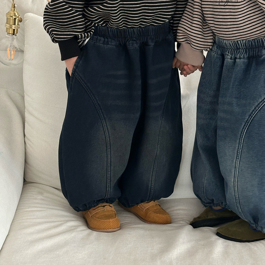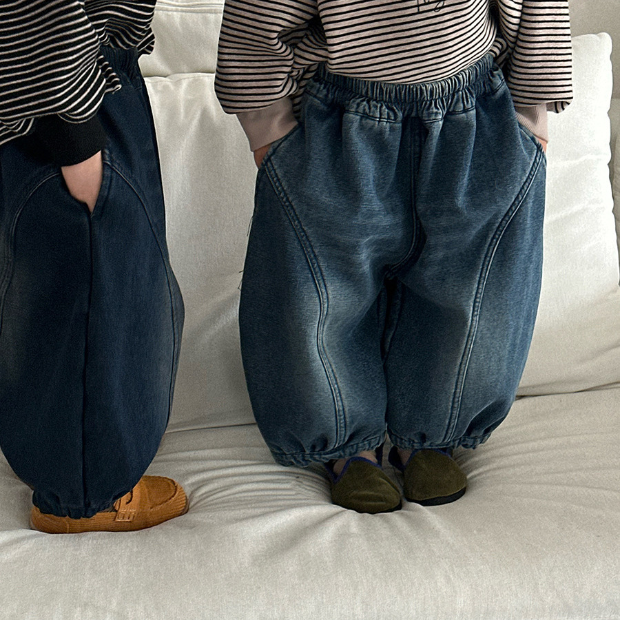25D51PA-冬季一體絨牛仔長褲|加厚燈籠褲
