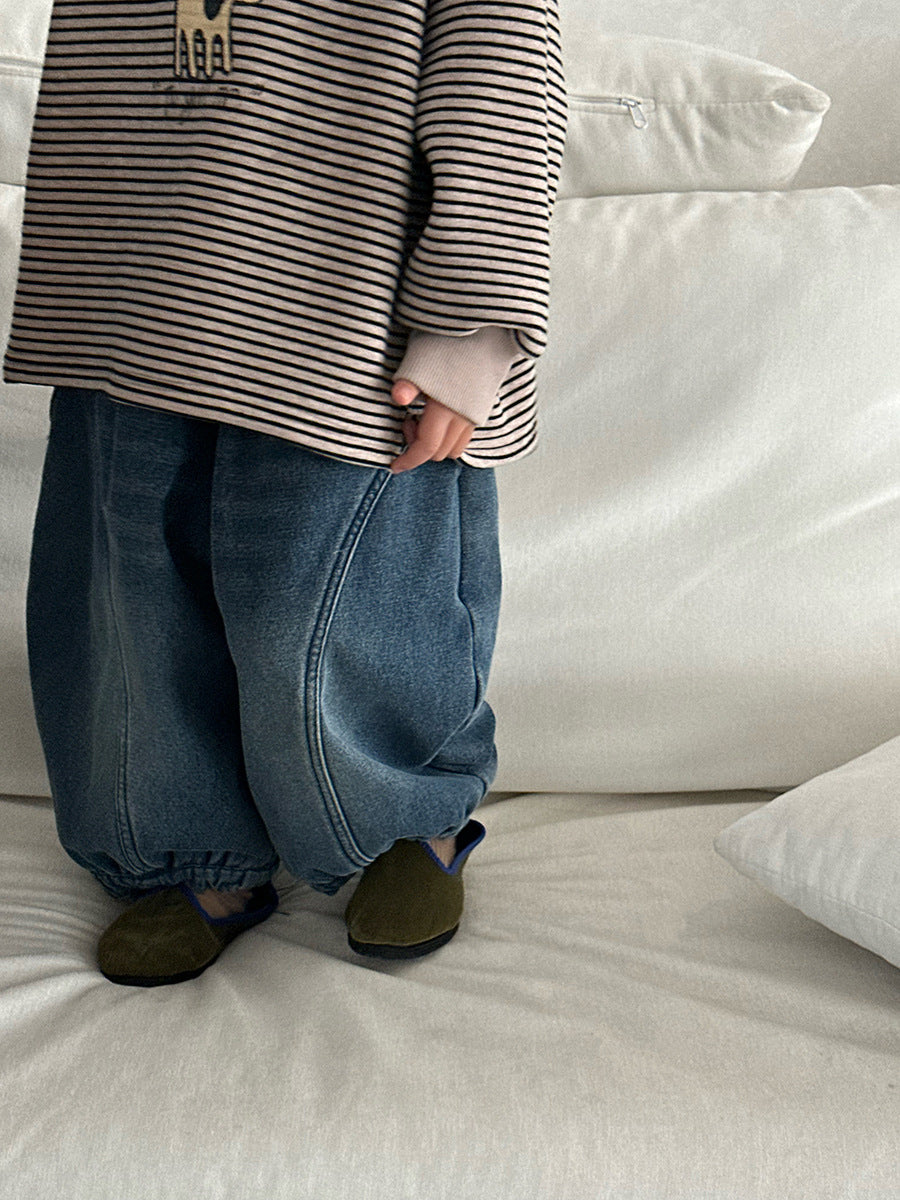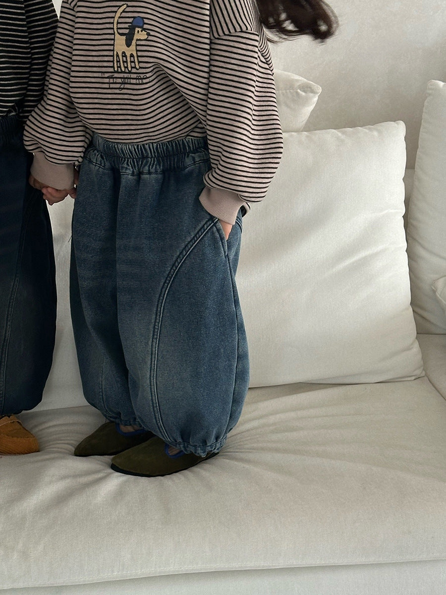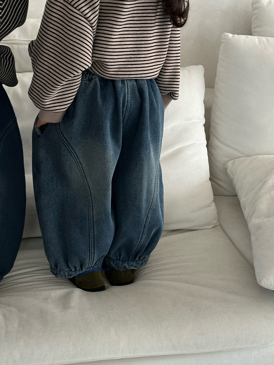 25D51PA-冬季一體絨牛仔長褲|加厚燈籠褲