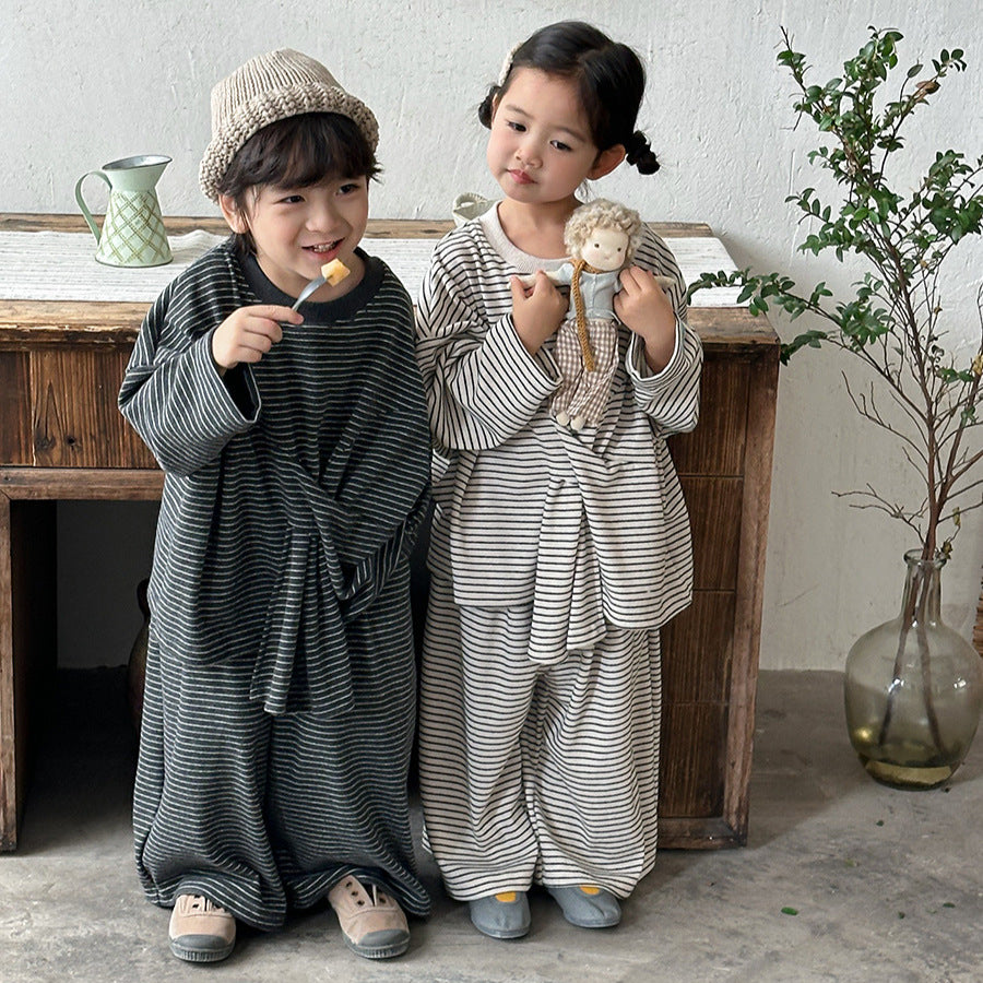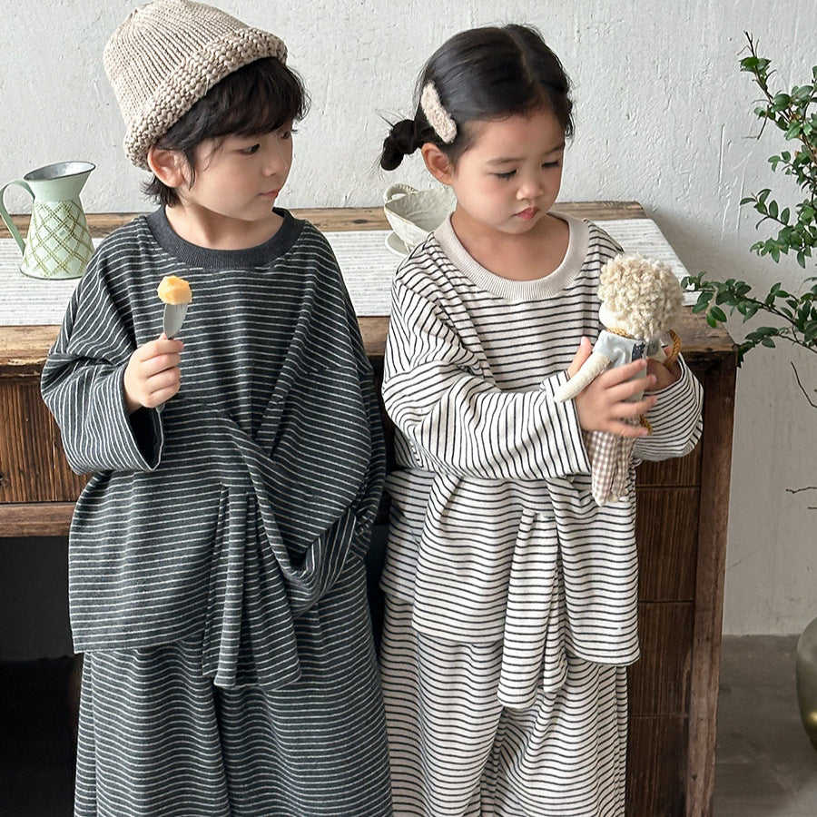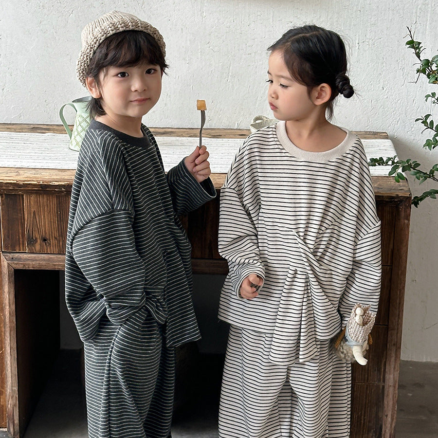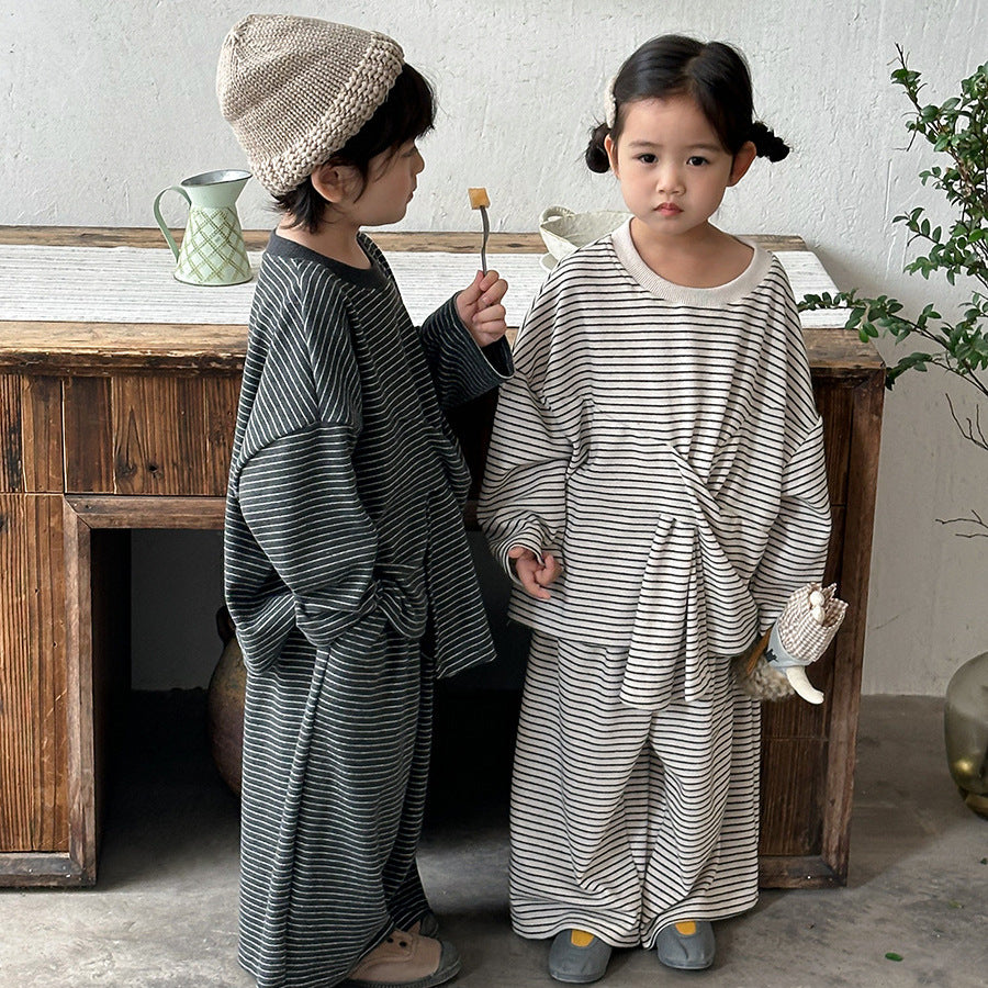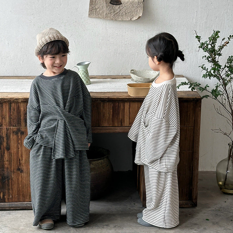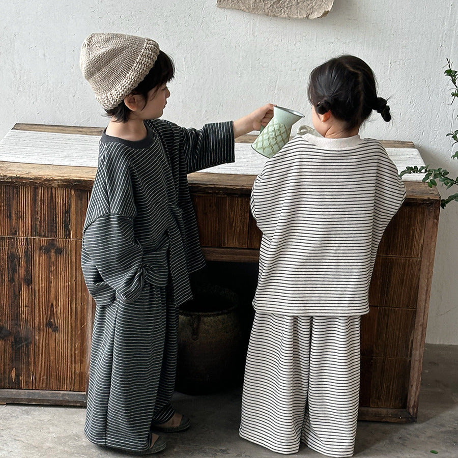 25Q14TG-秋季細條紋寬鬆上衣+長褲套