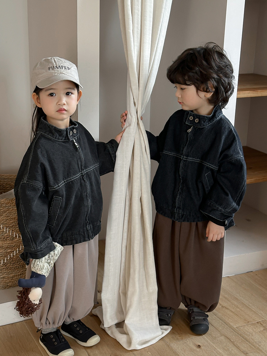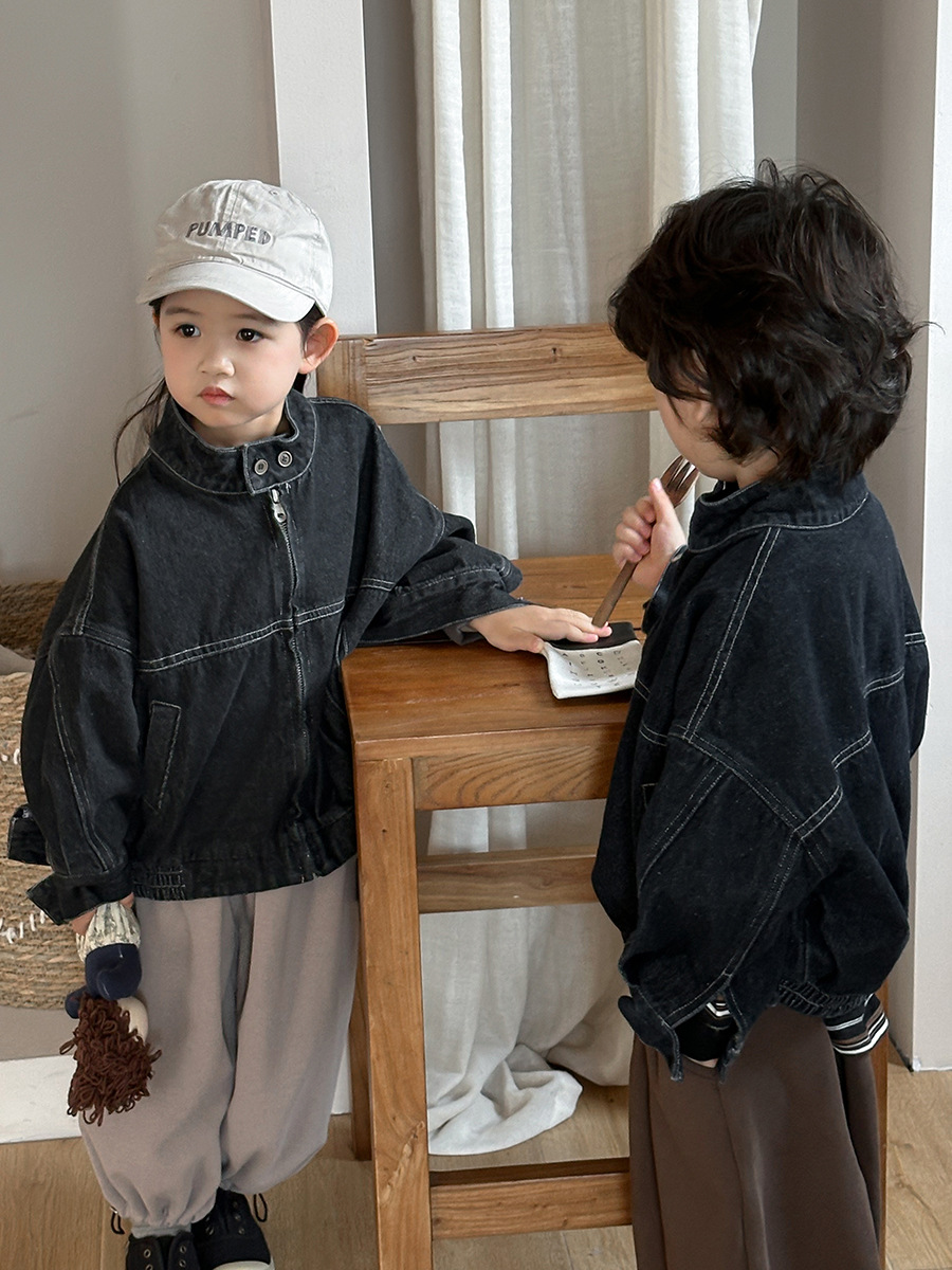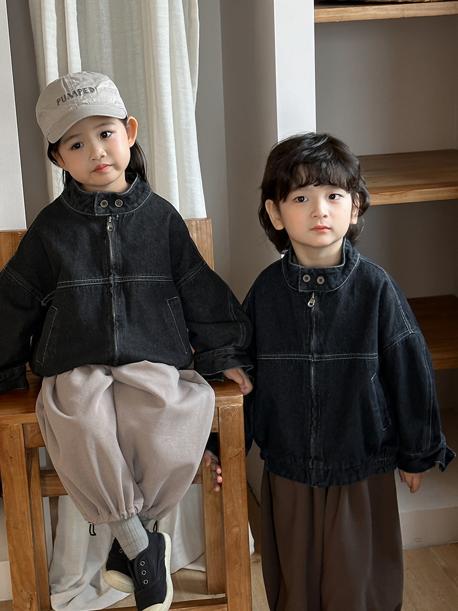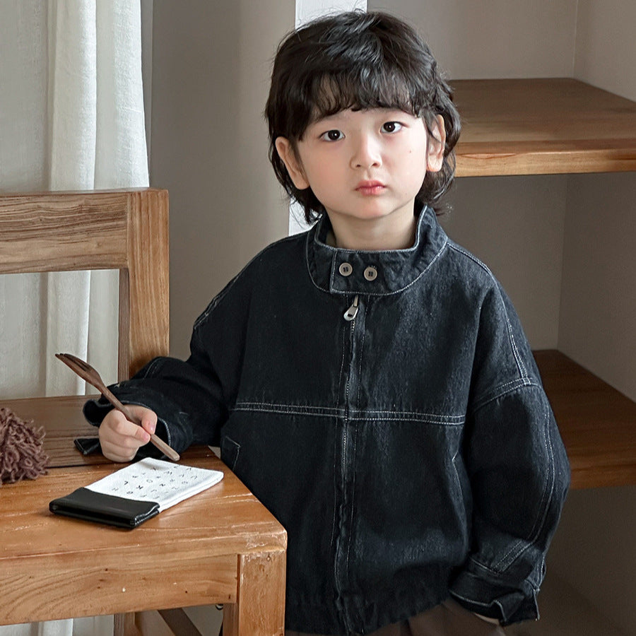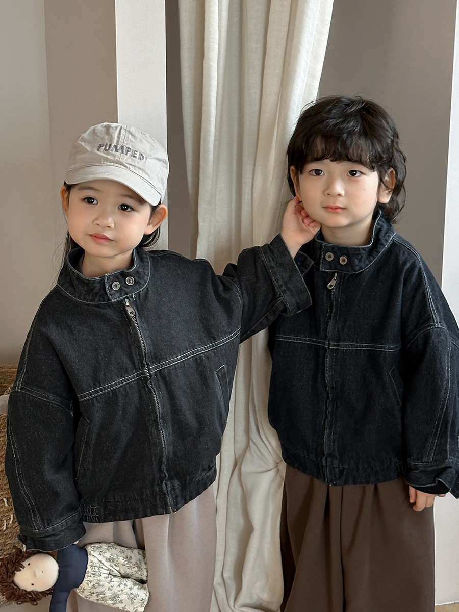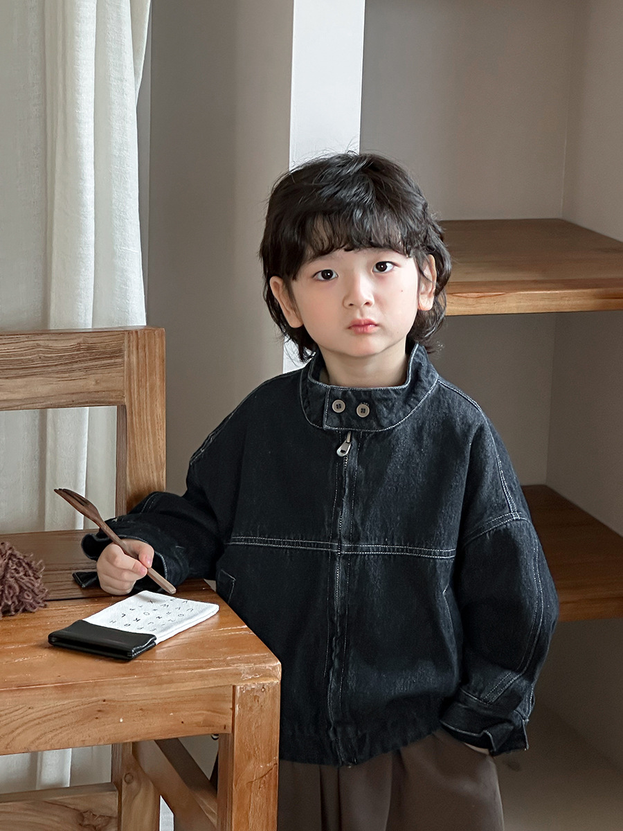 25Q33SE-秋季立領車線造型拉鍊復古牛仔外套