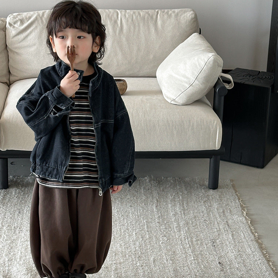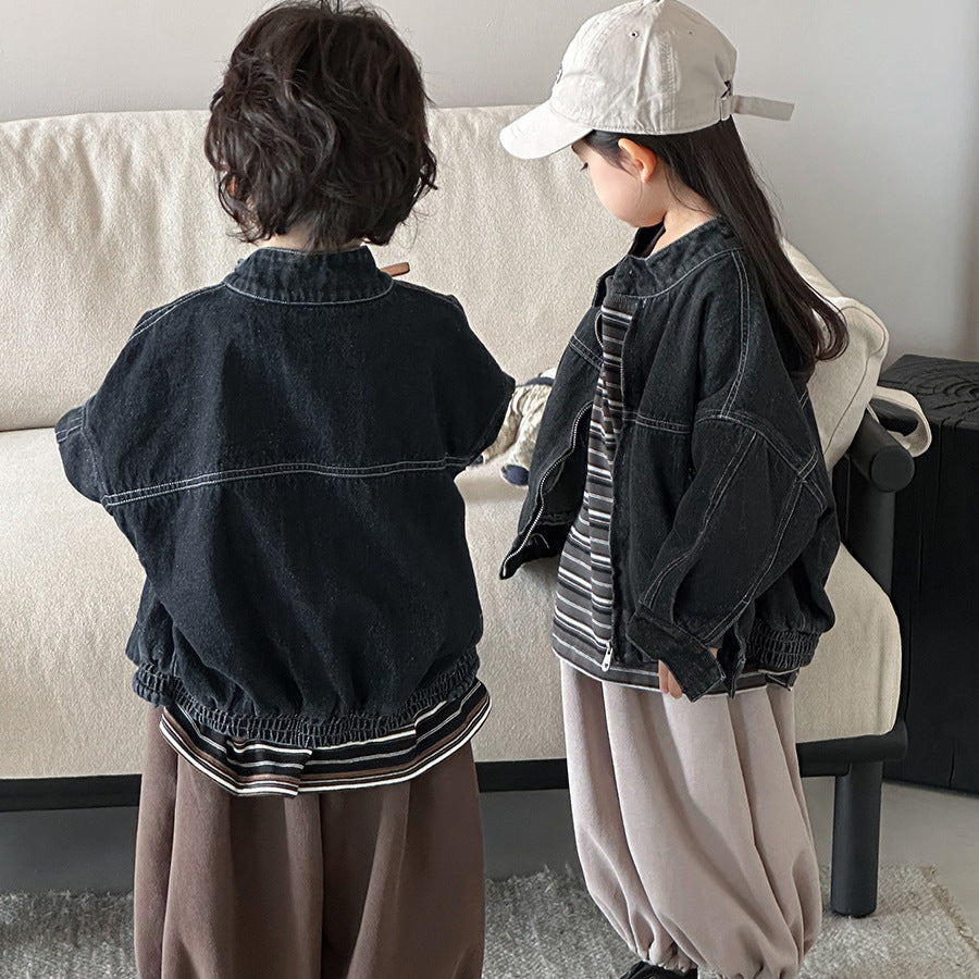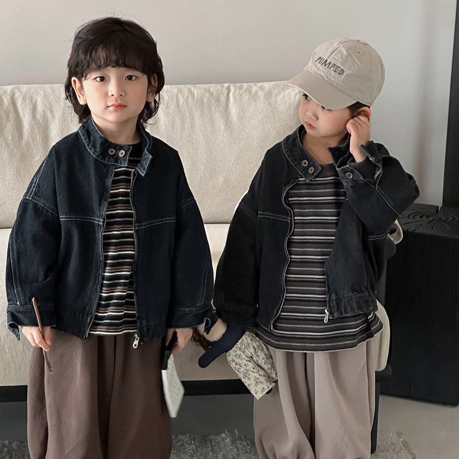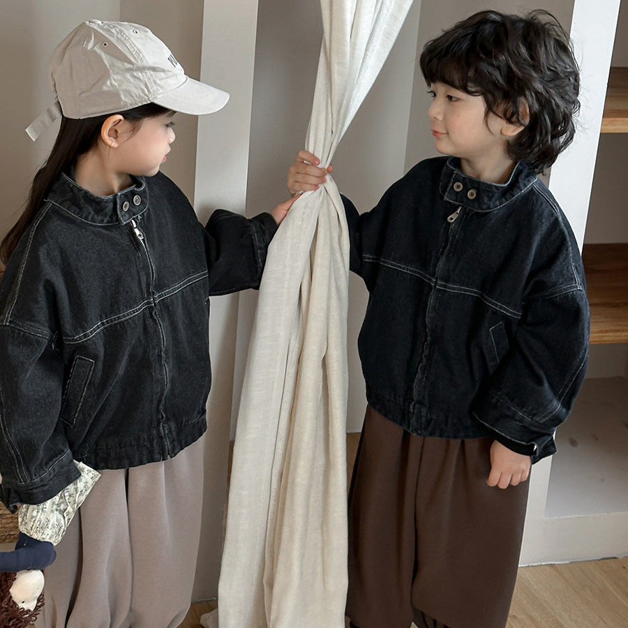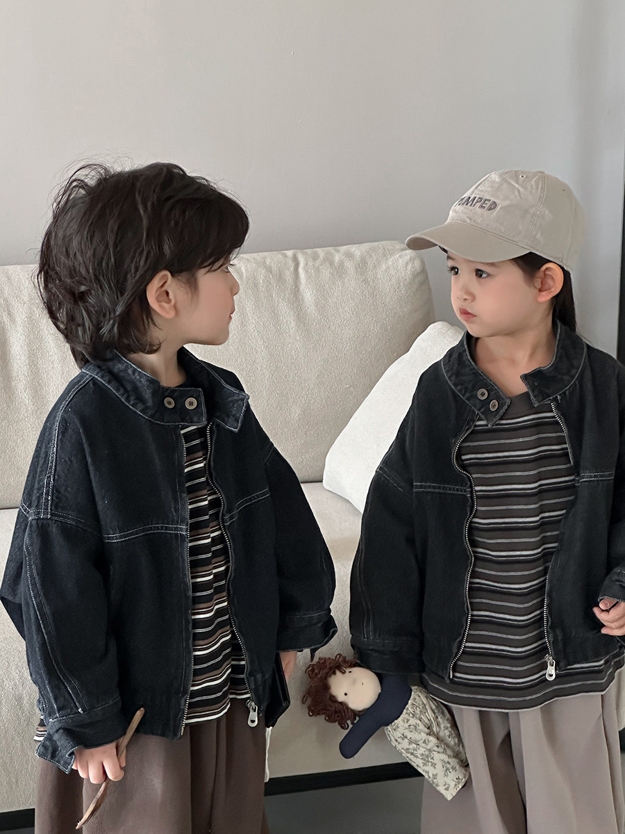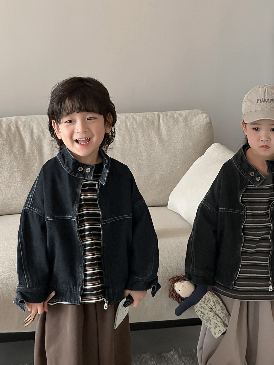 25Q33SE-秋季立領車線造型拉鍊復古牛仔外套