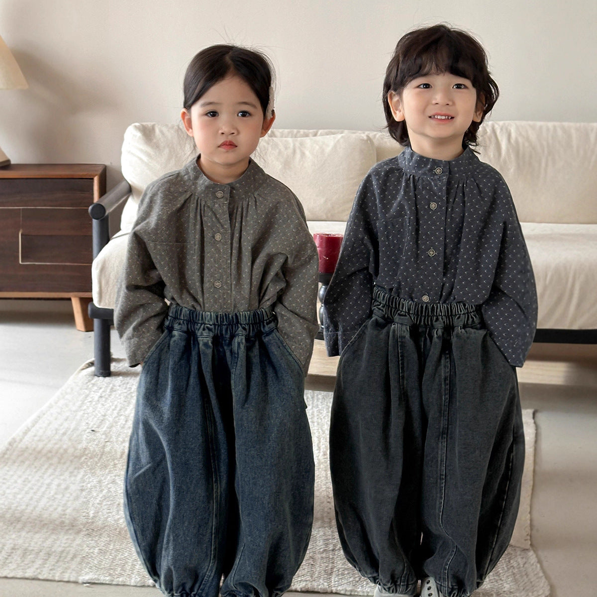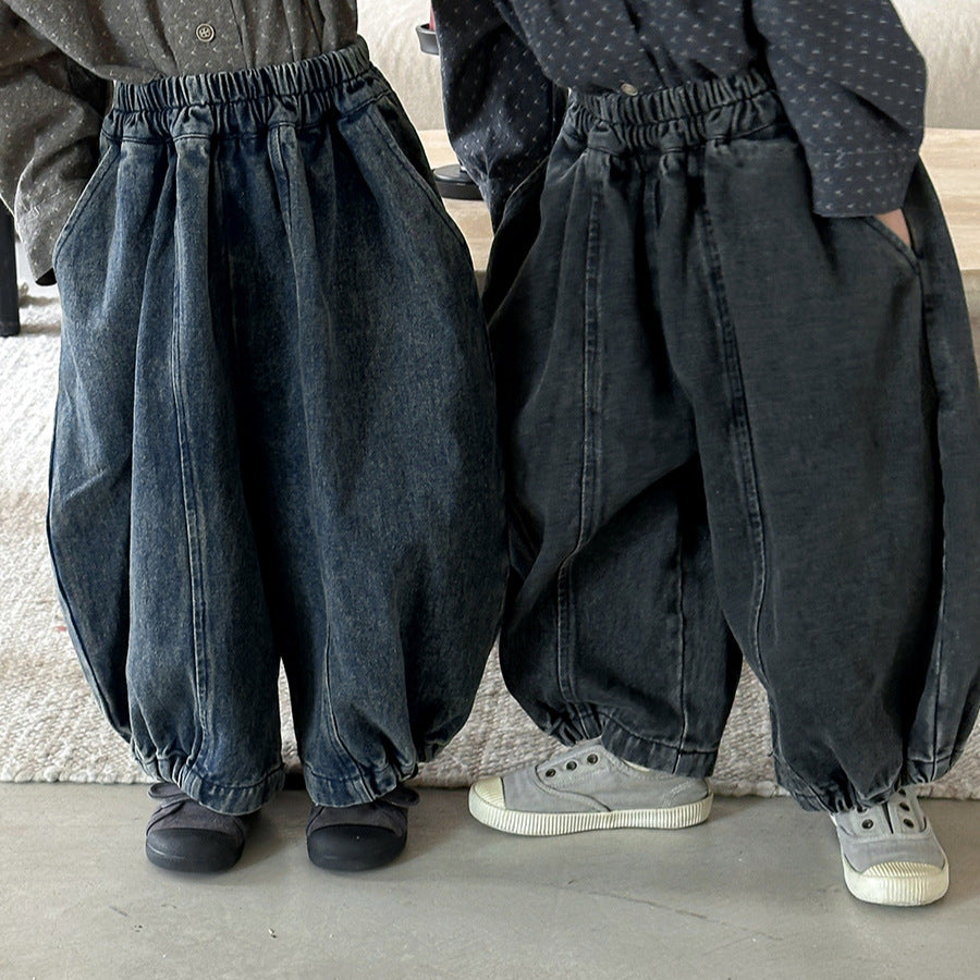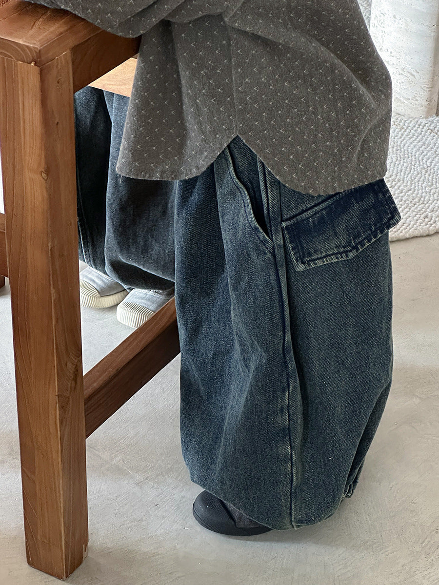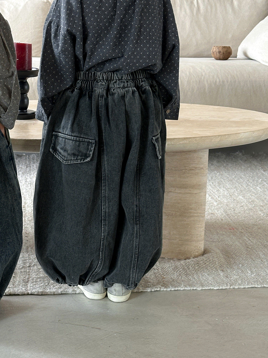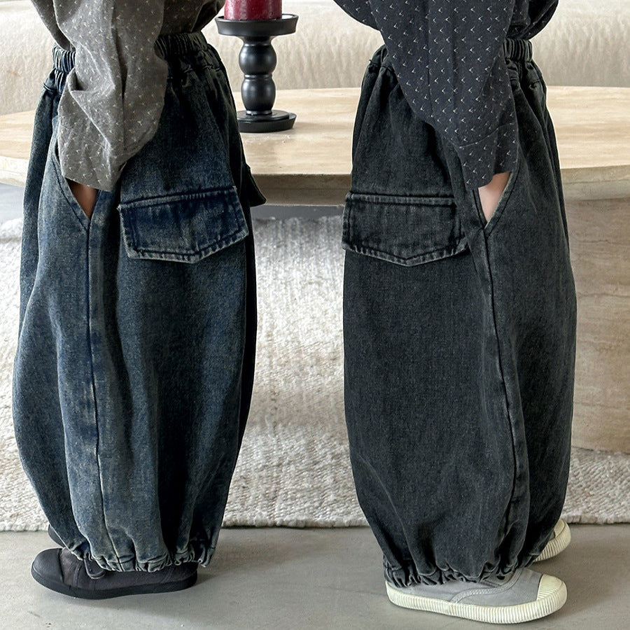 25Q36PA-秋季後袋蓋拼接寬鬆燈籠牛仔褲