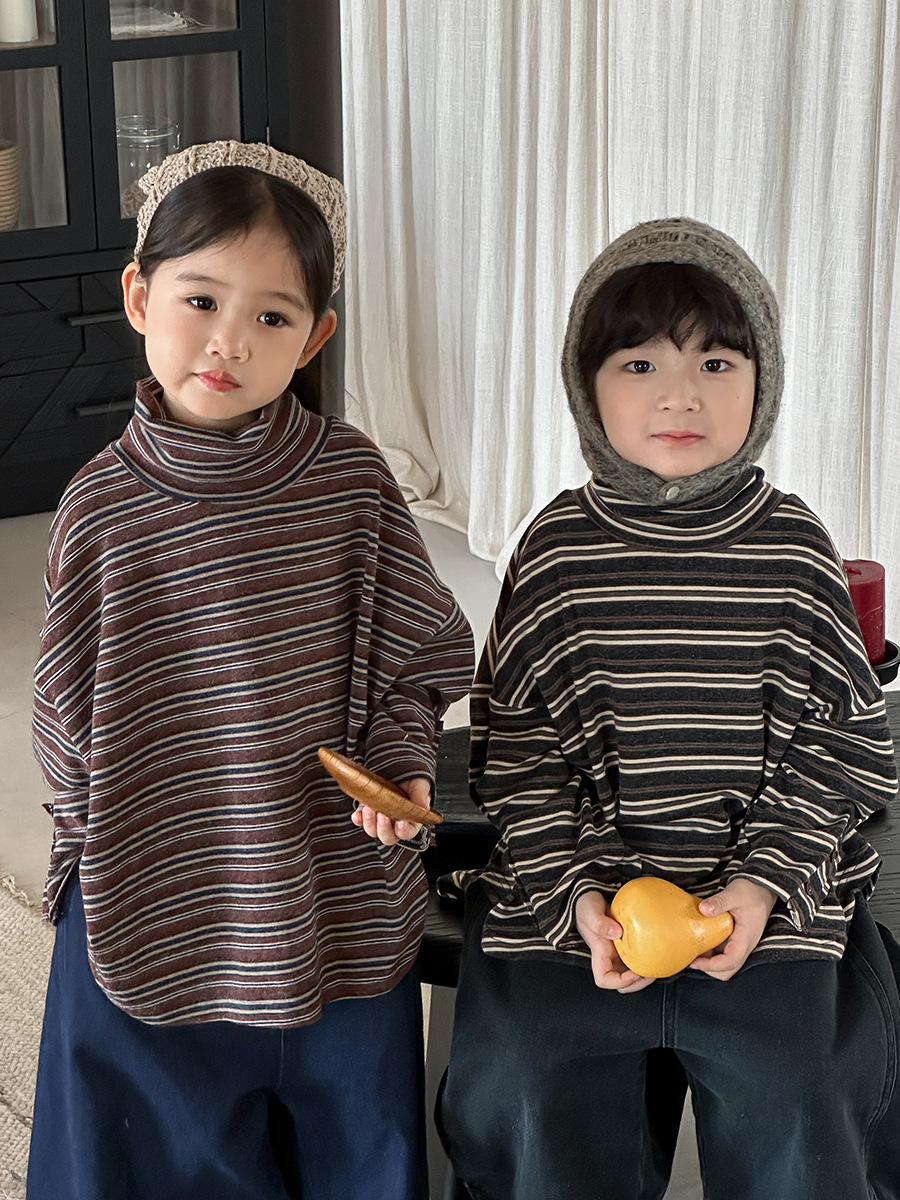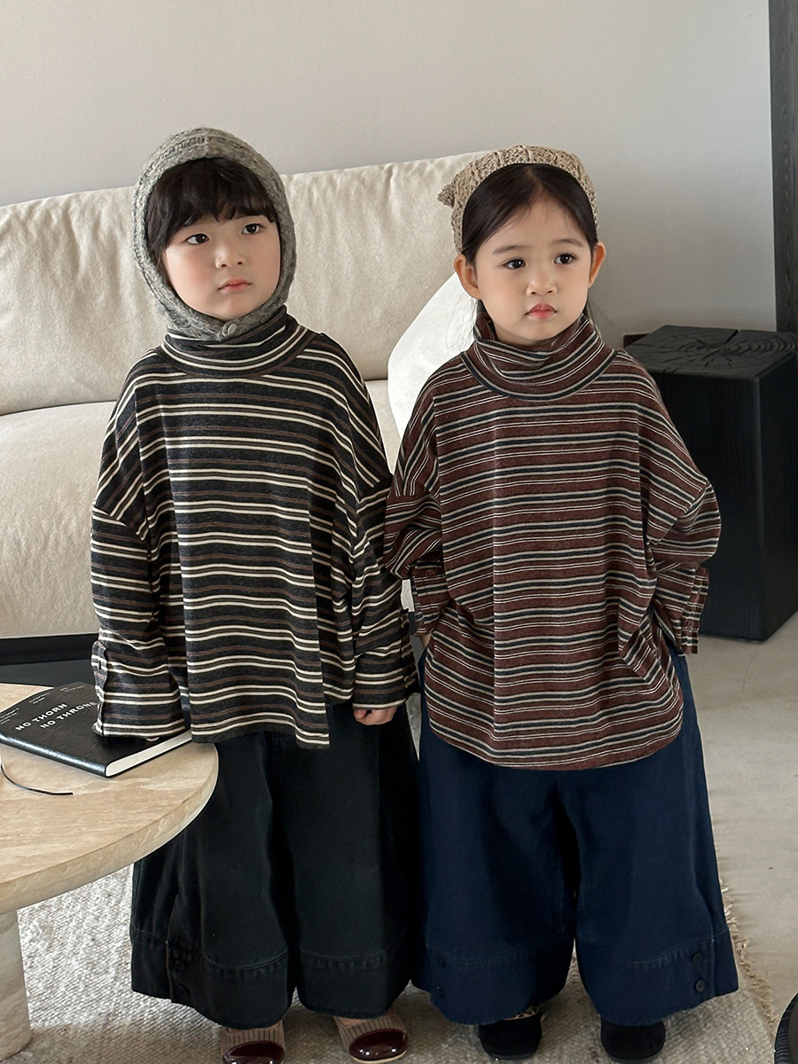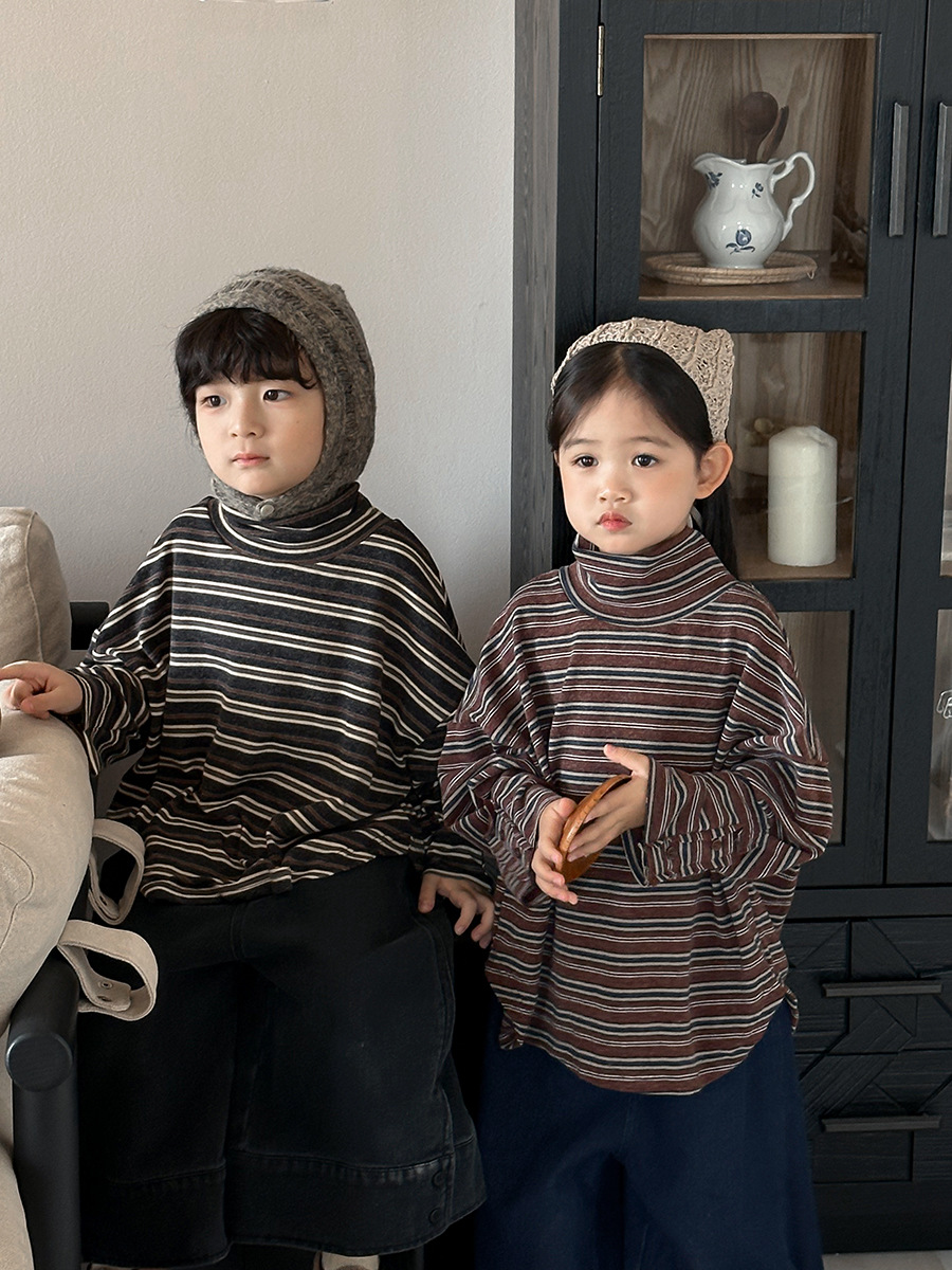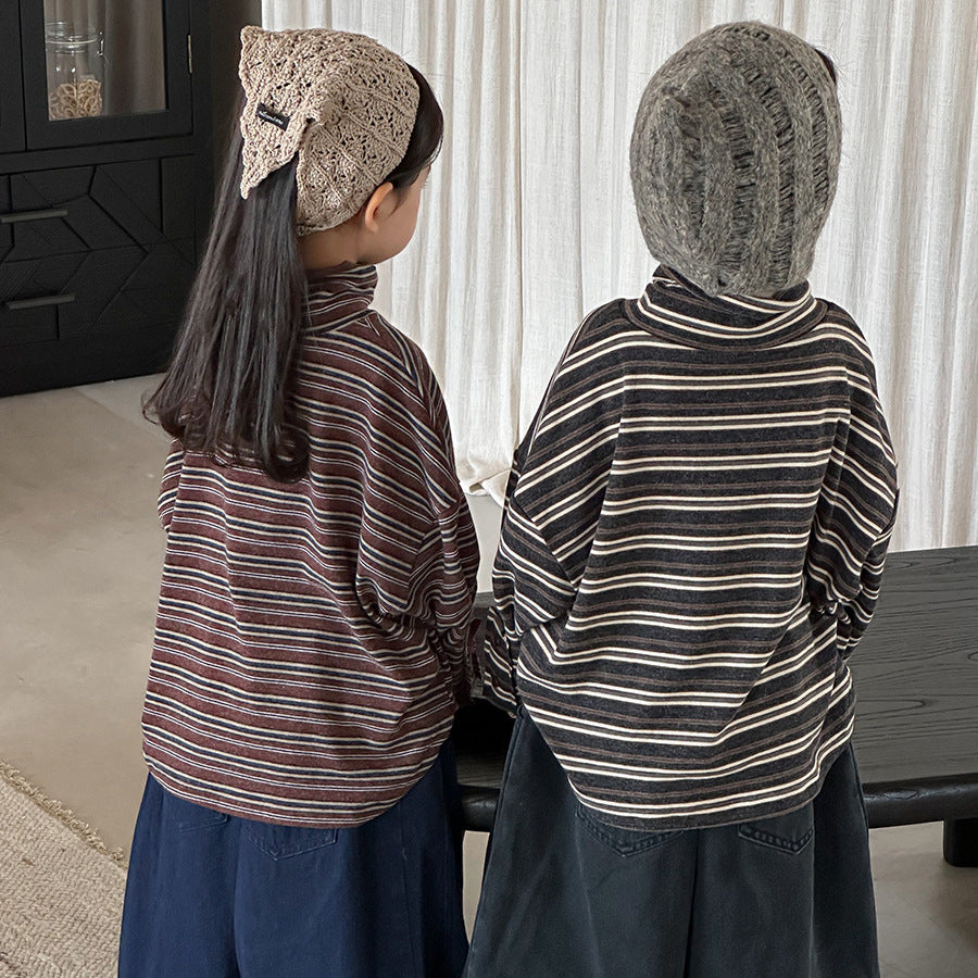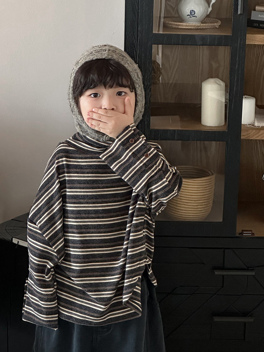 25Q38SE-秋冬半高領條紋落肩休閒上衣