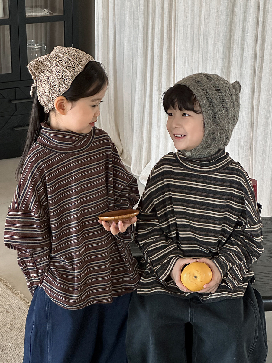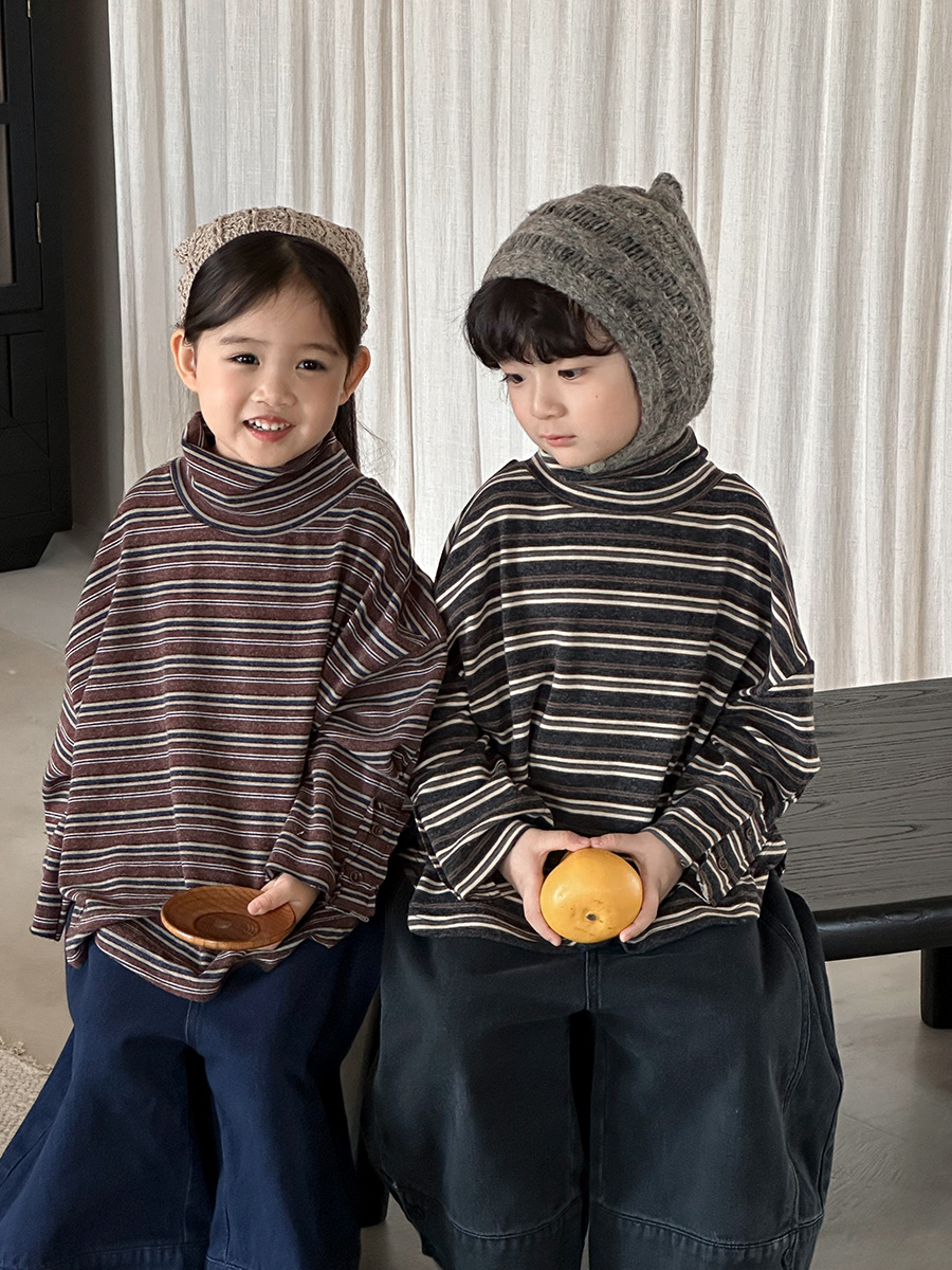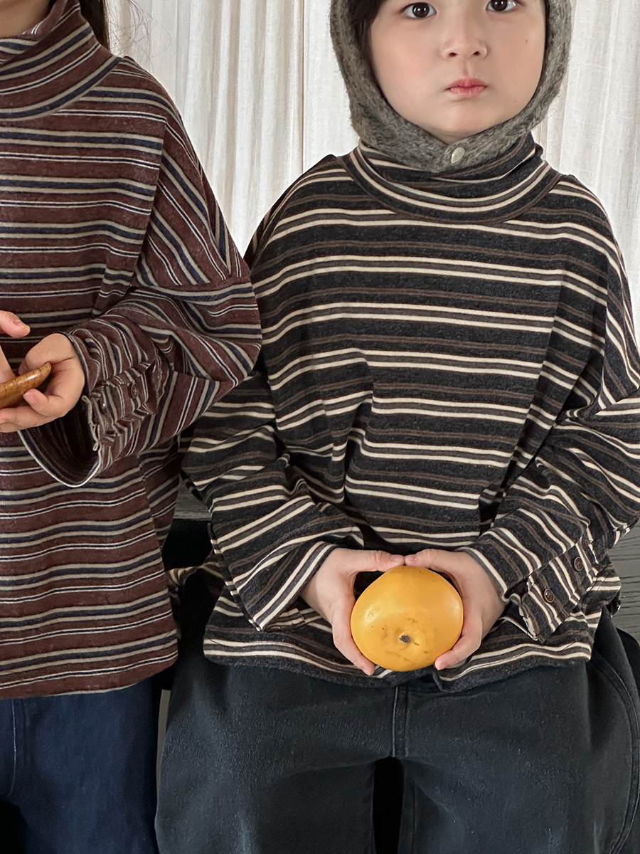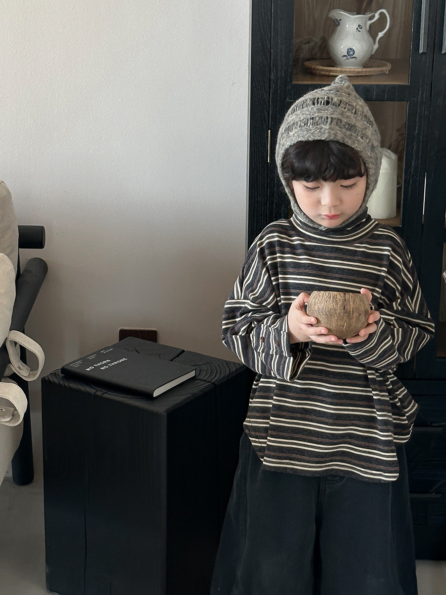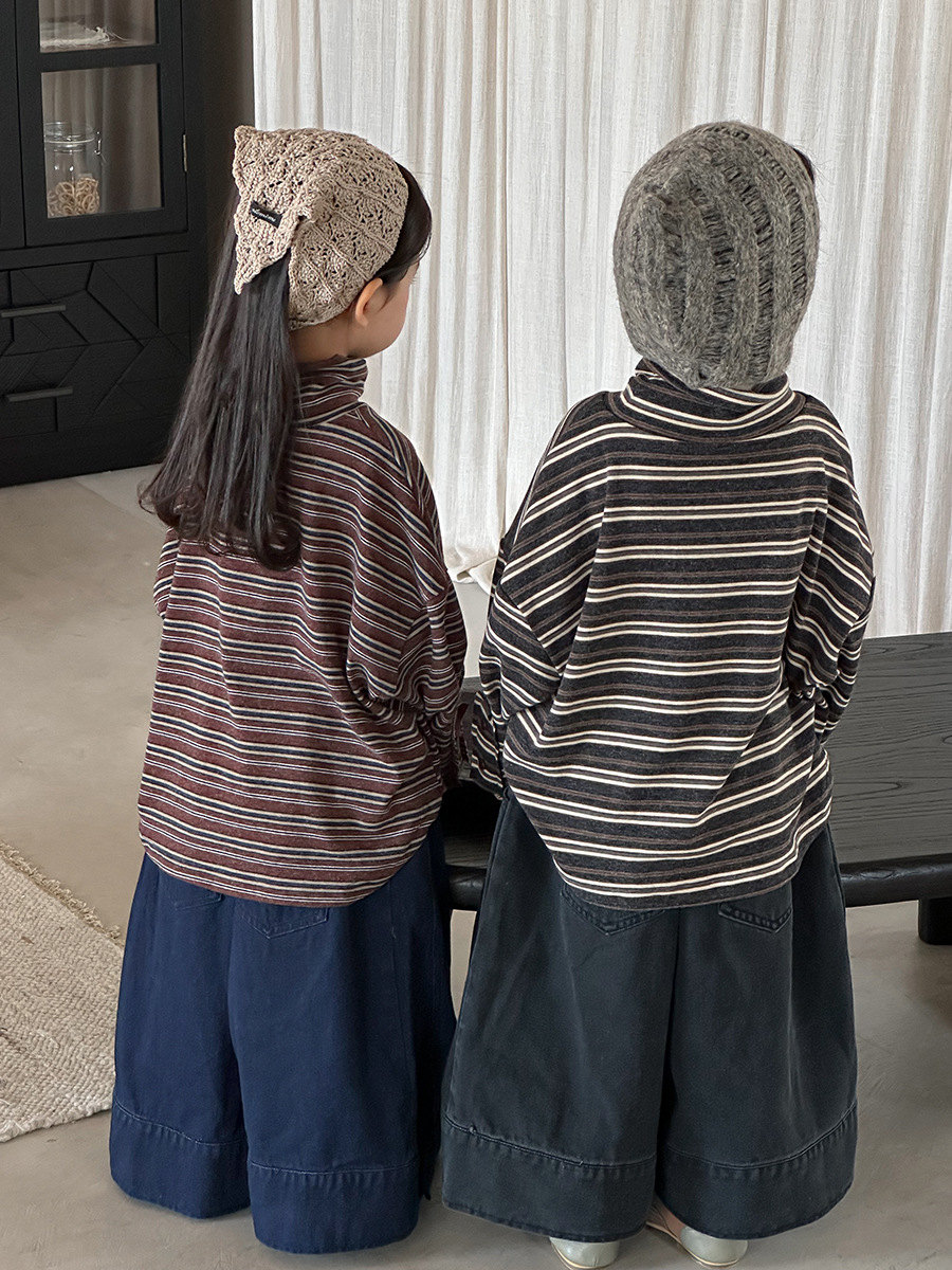 25Q38SE-秋冬半高領條紋落肩休閒上衣