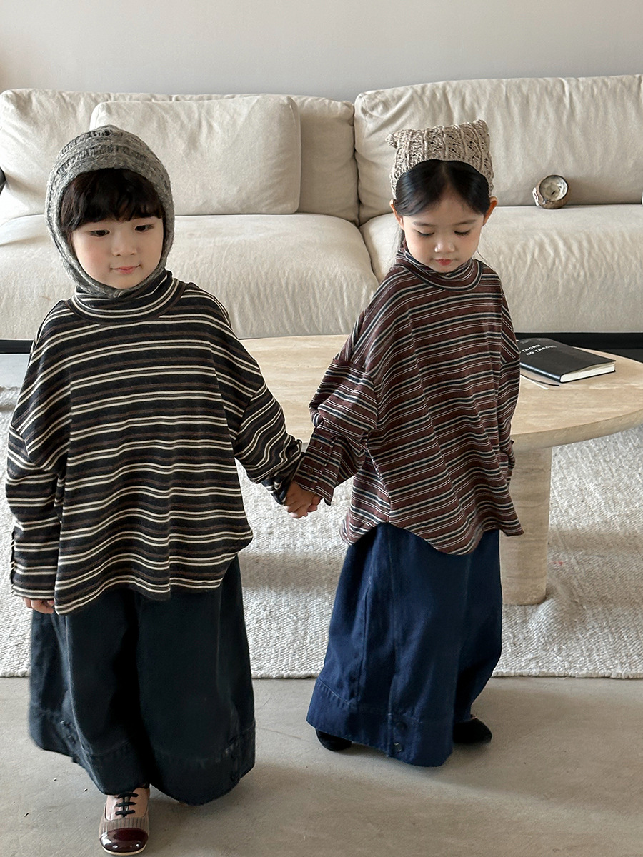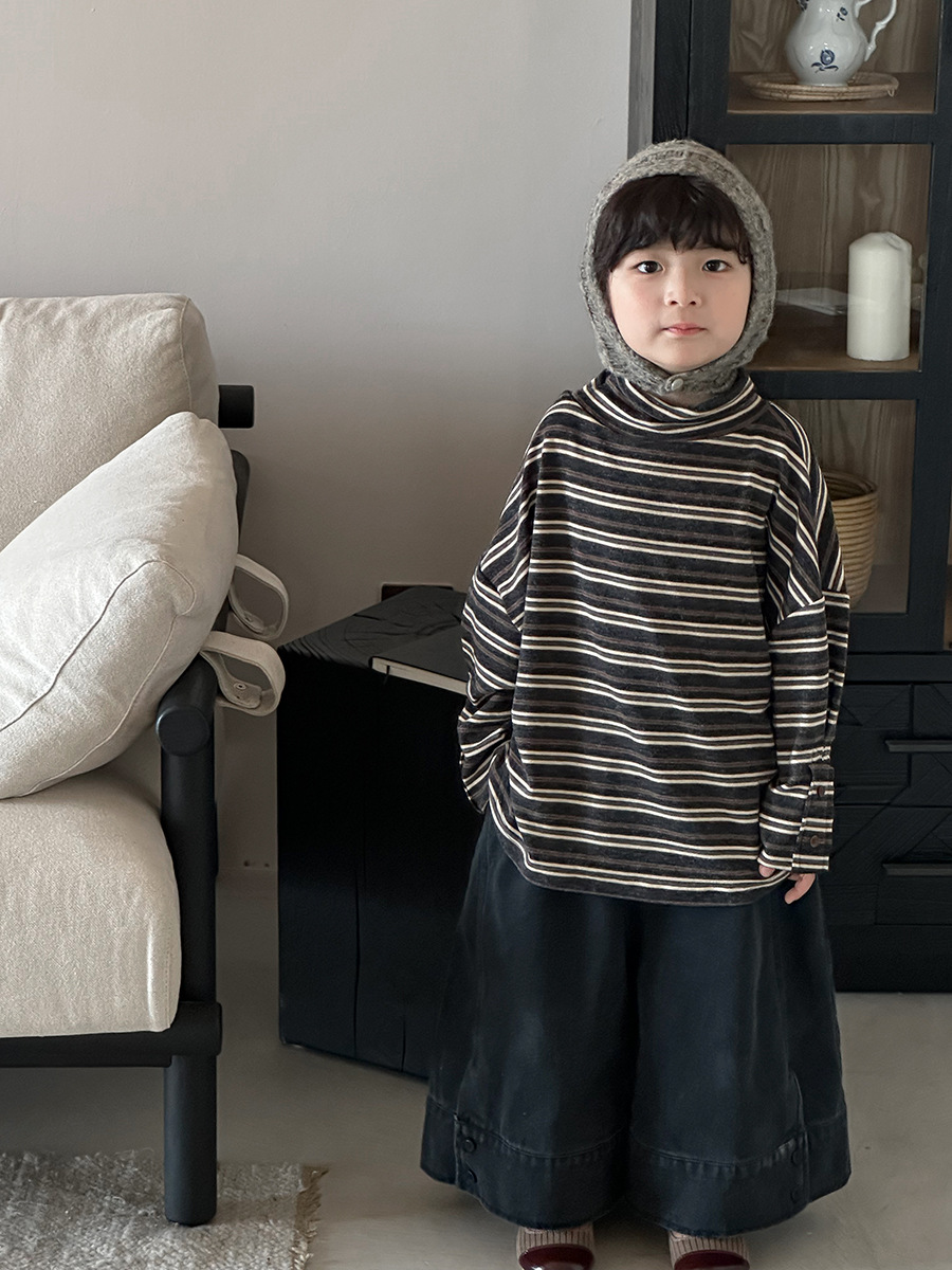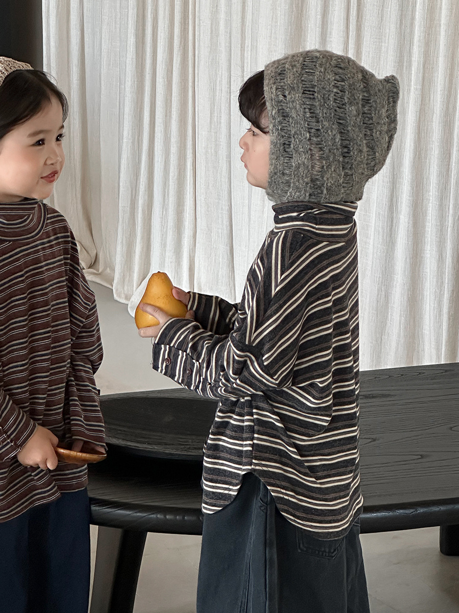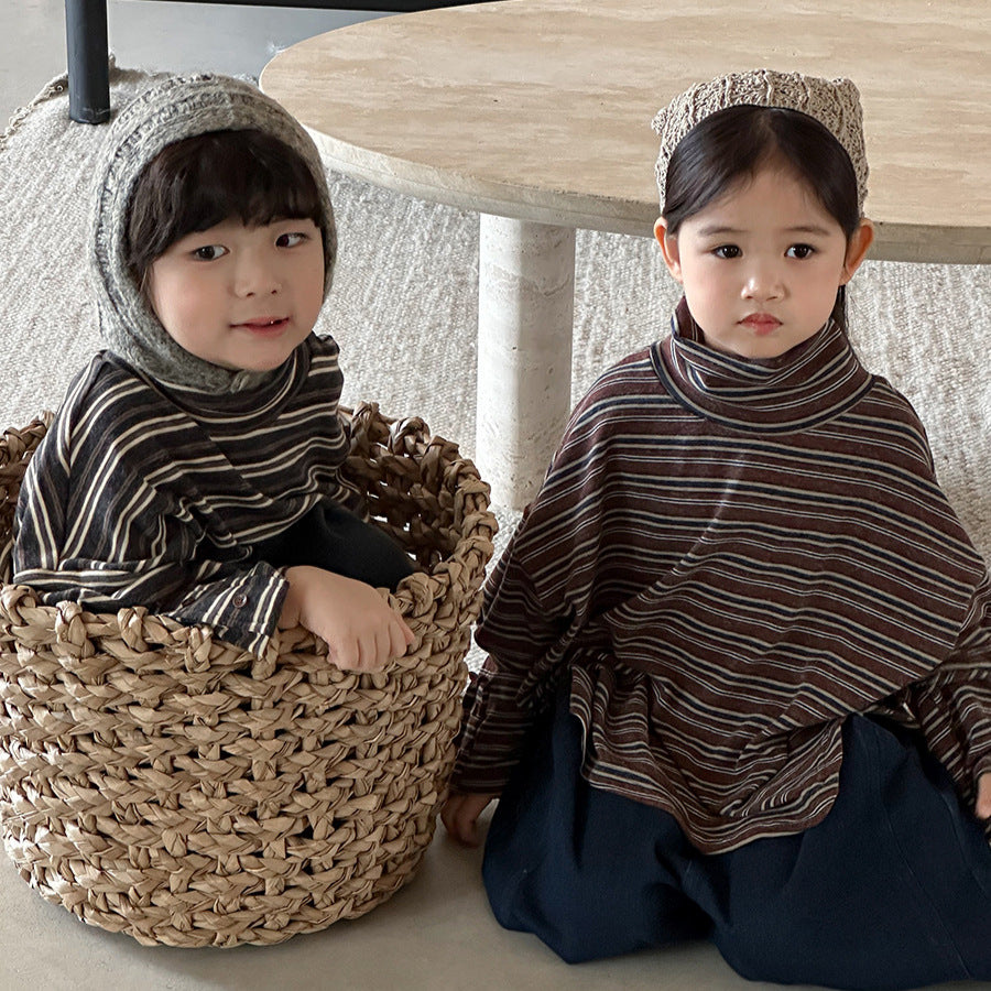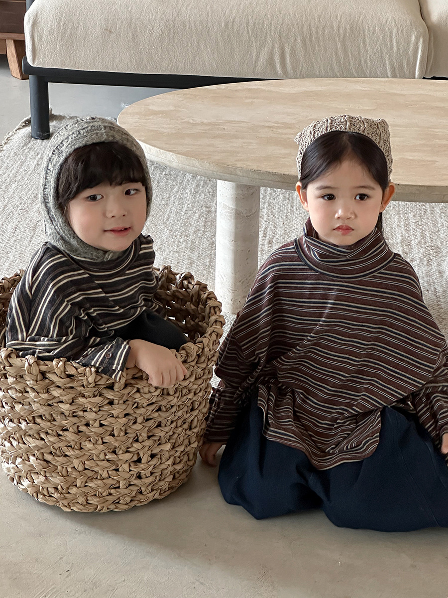 25Q38SE-秋冬半高領條紋落肩休閒上衣
