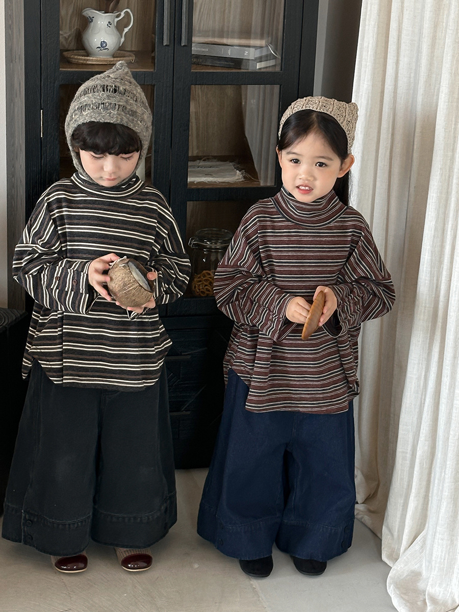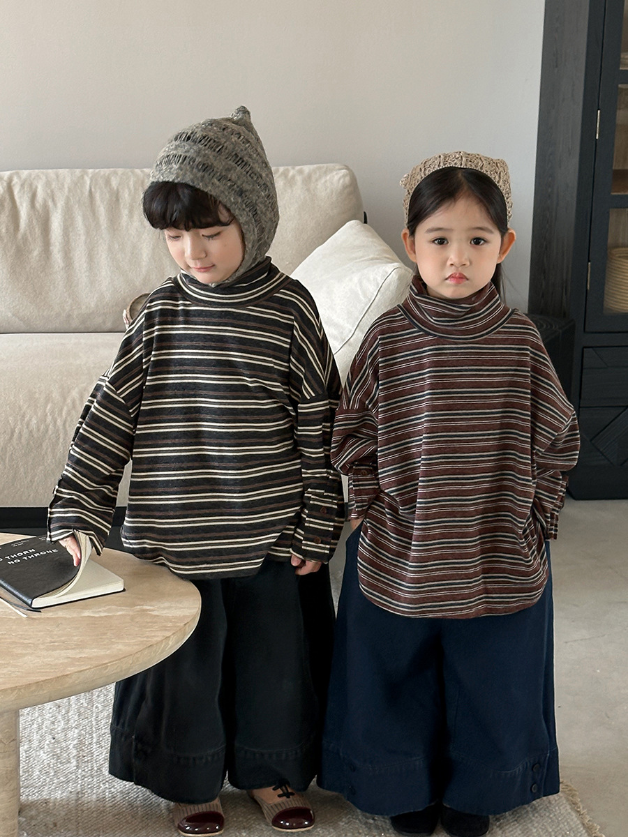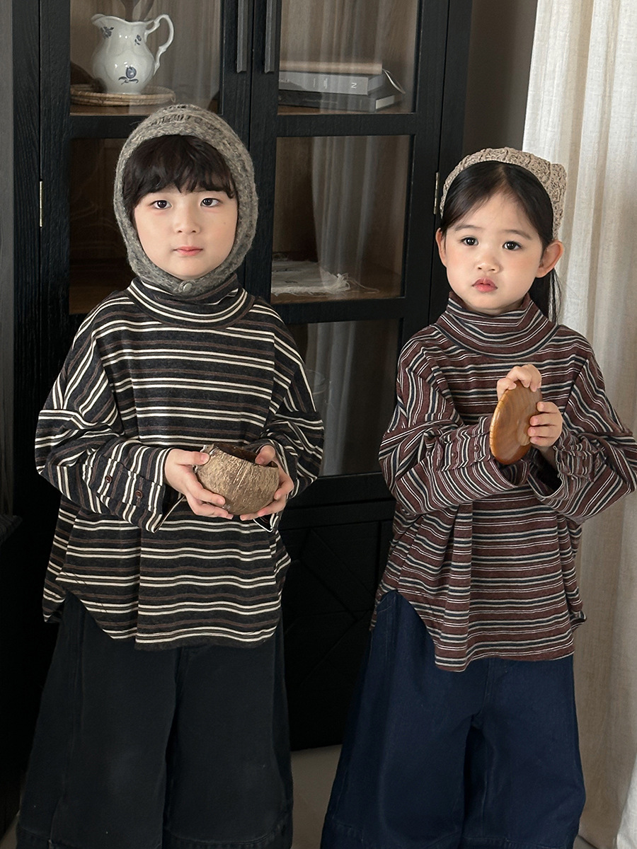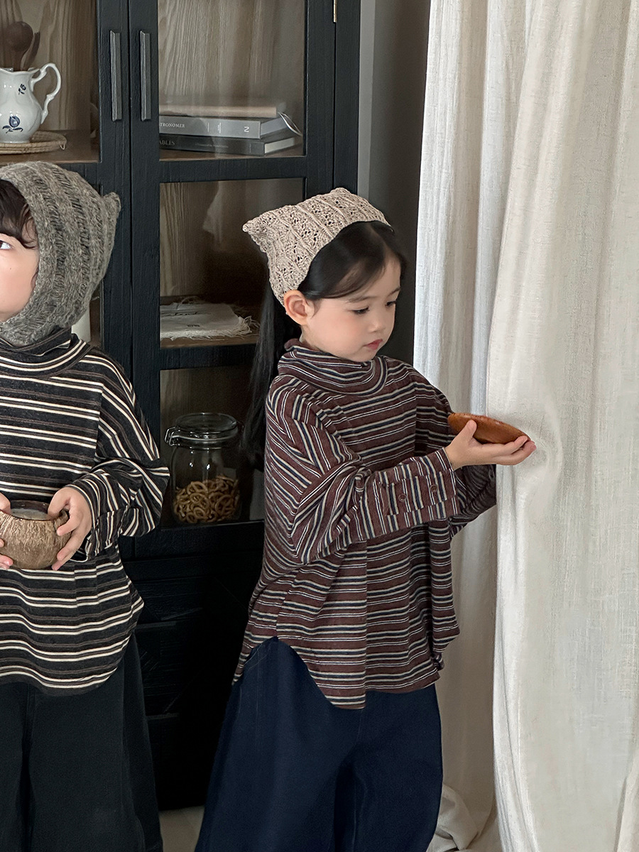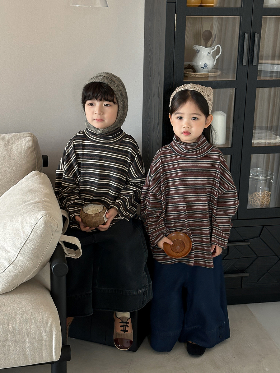 25Q38SE-秋冬半高領條紋落肩休閒上衣