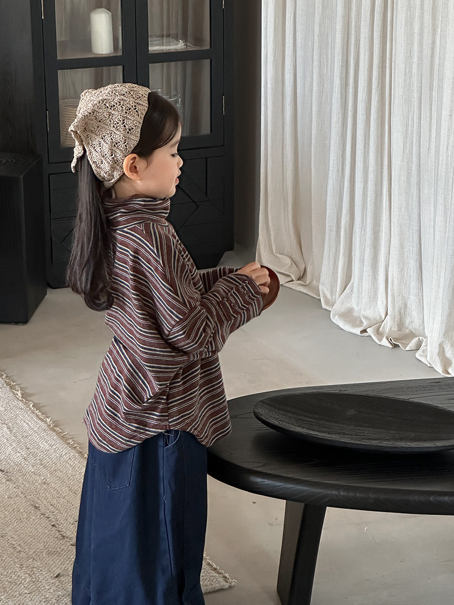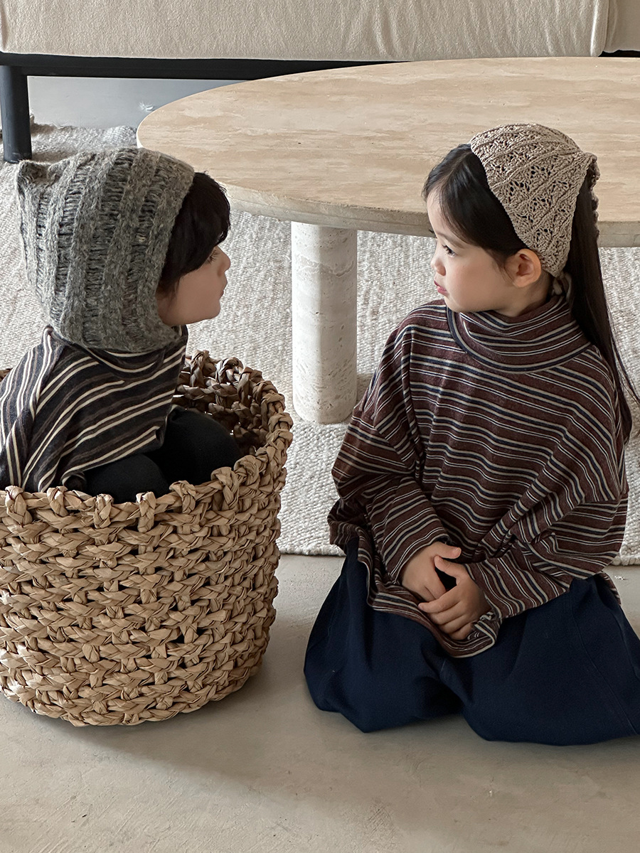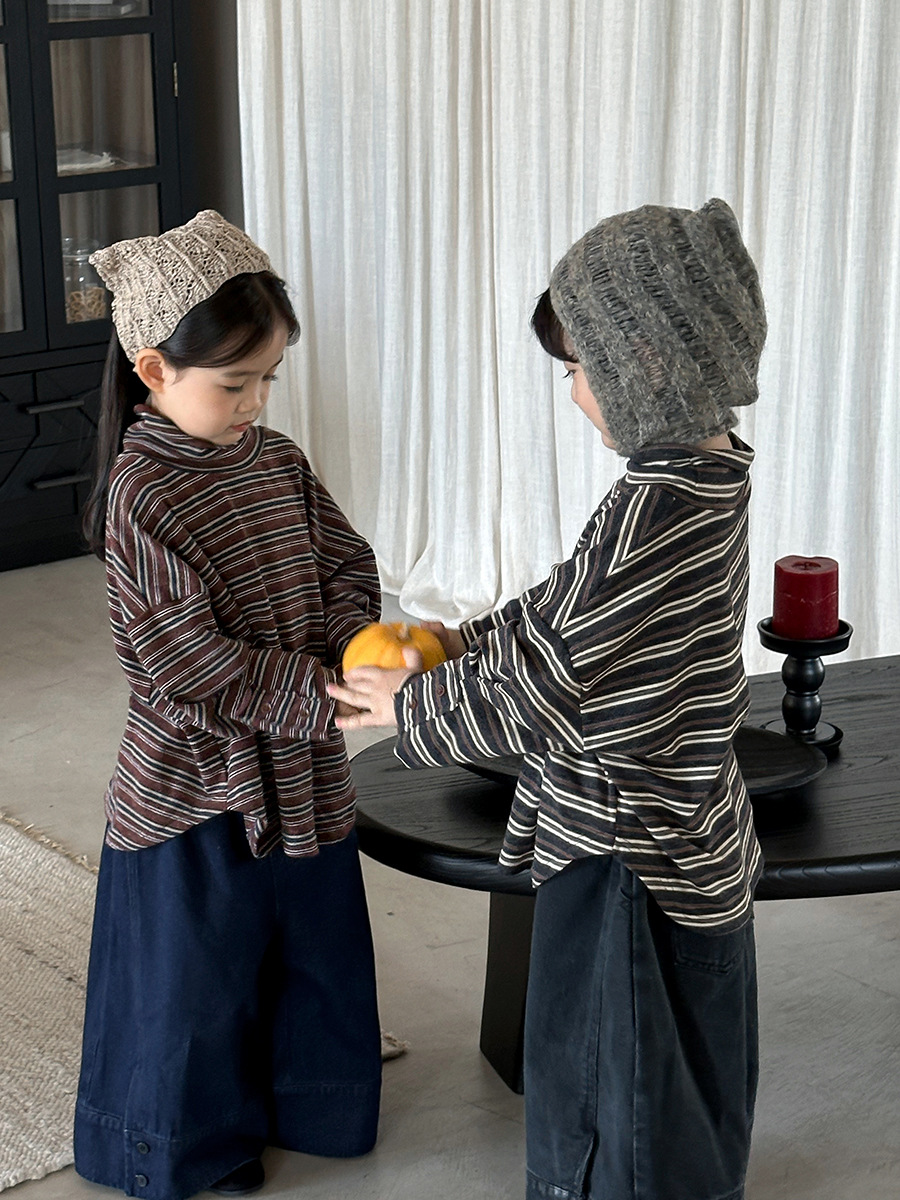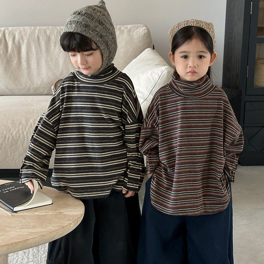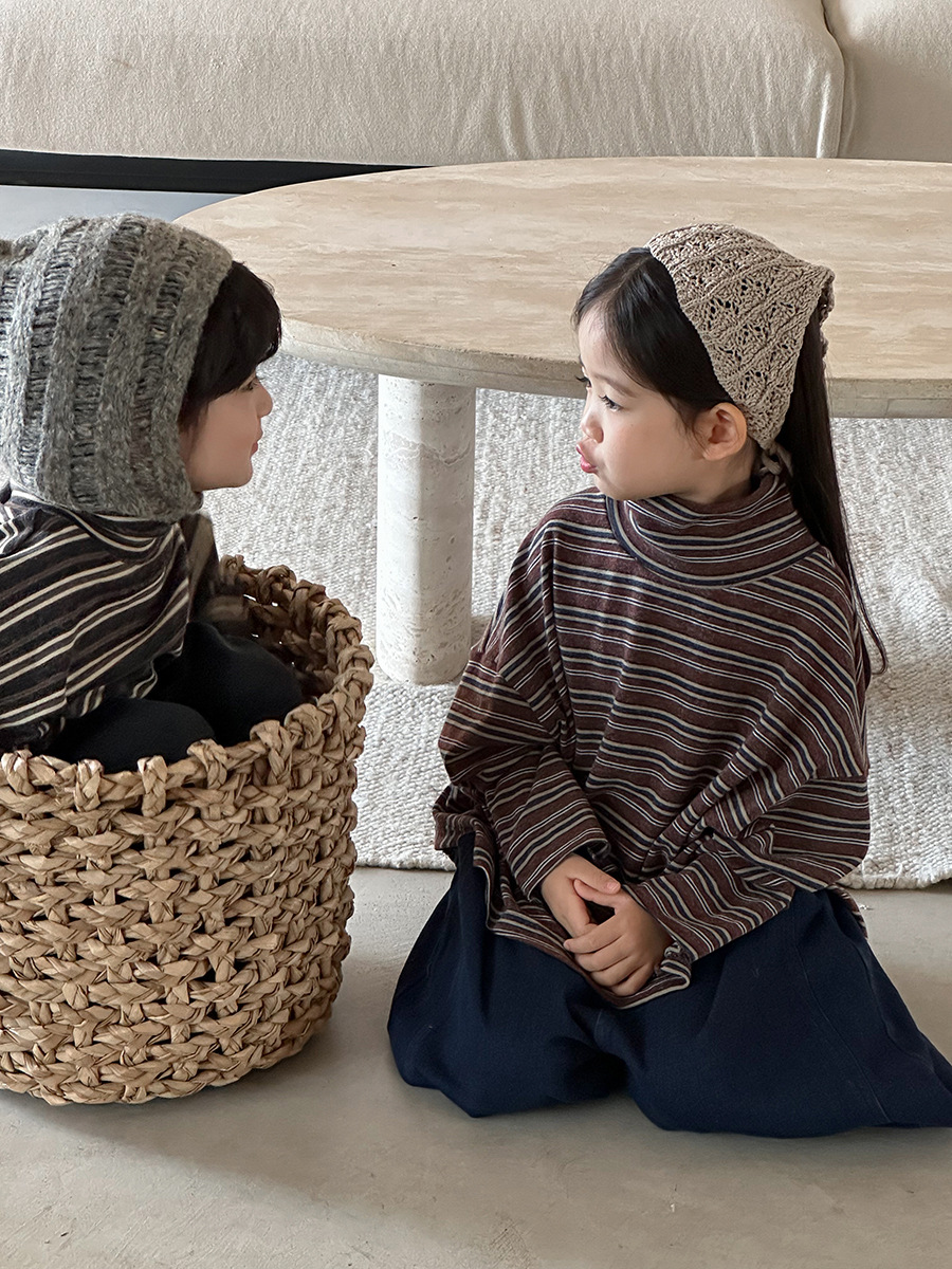 25Q38SE-秋冬半高領條紋落肩休閒上衣