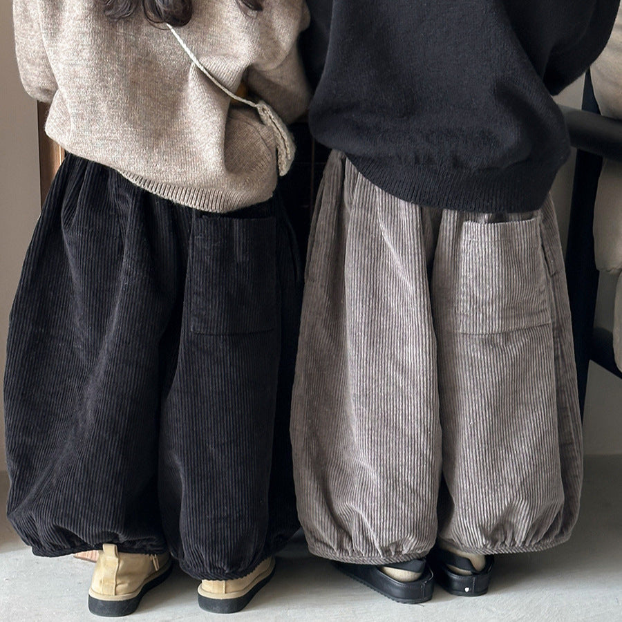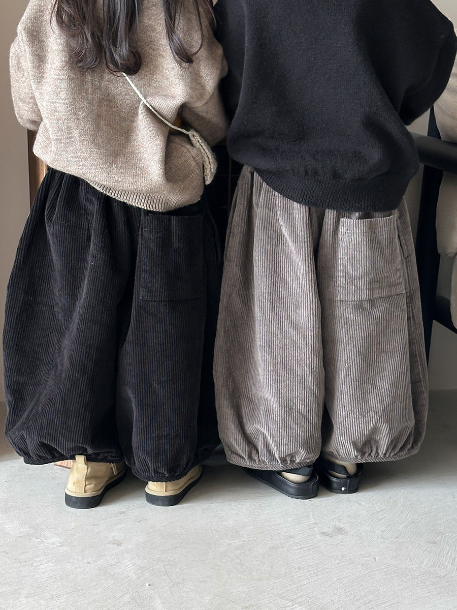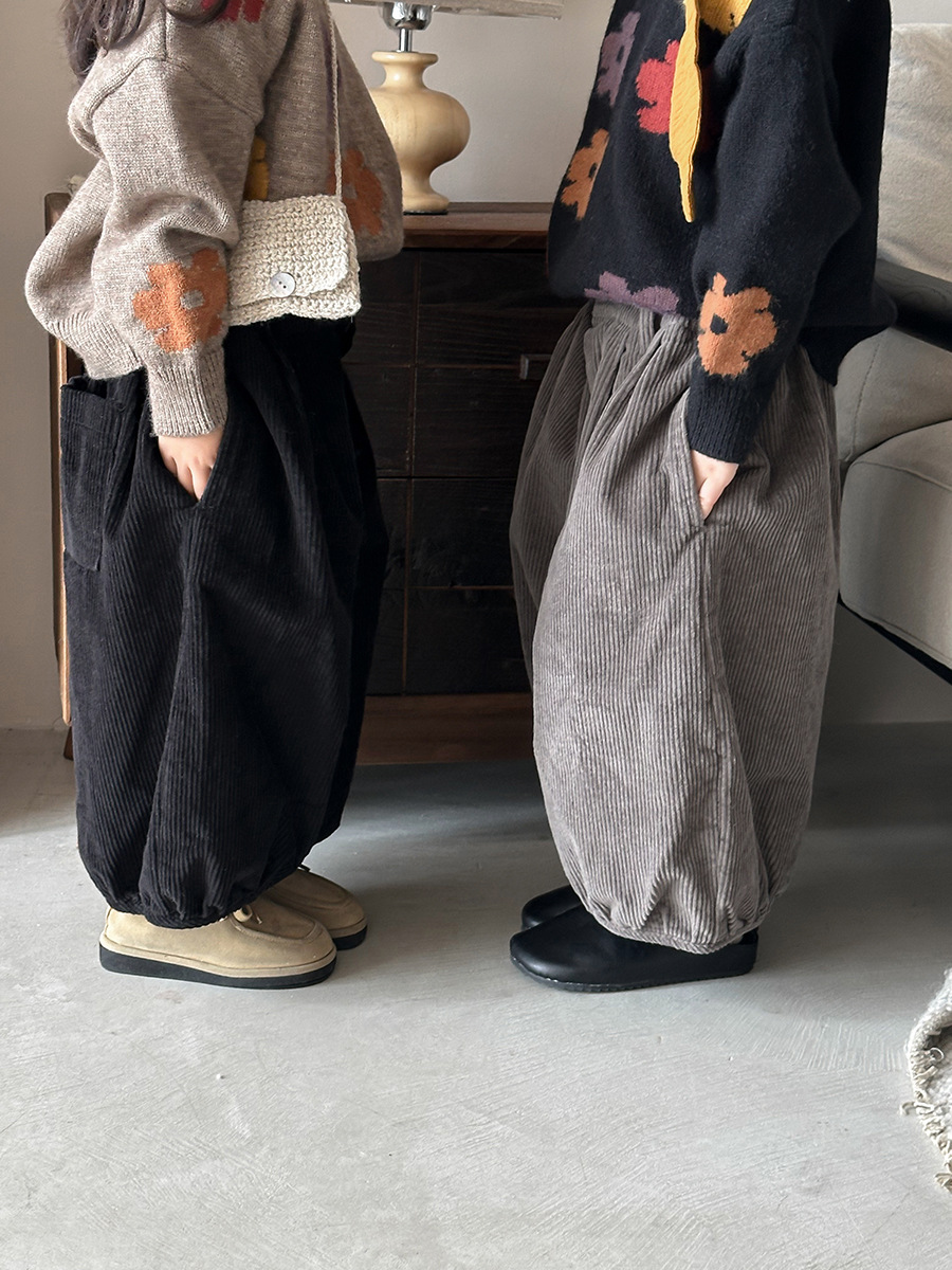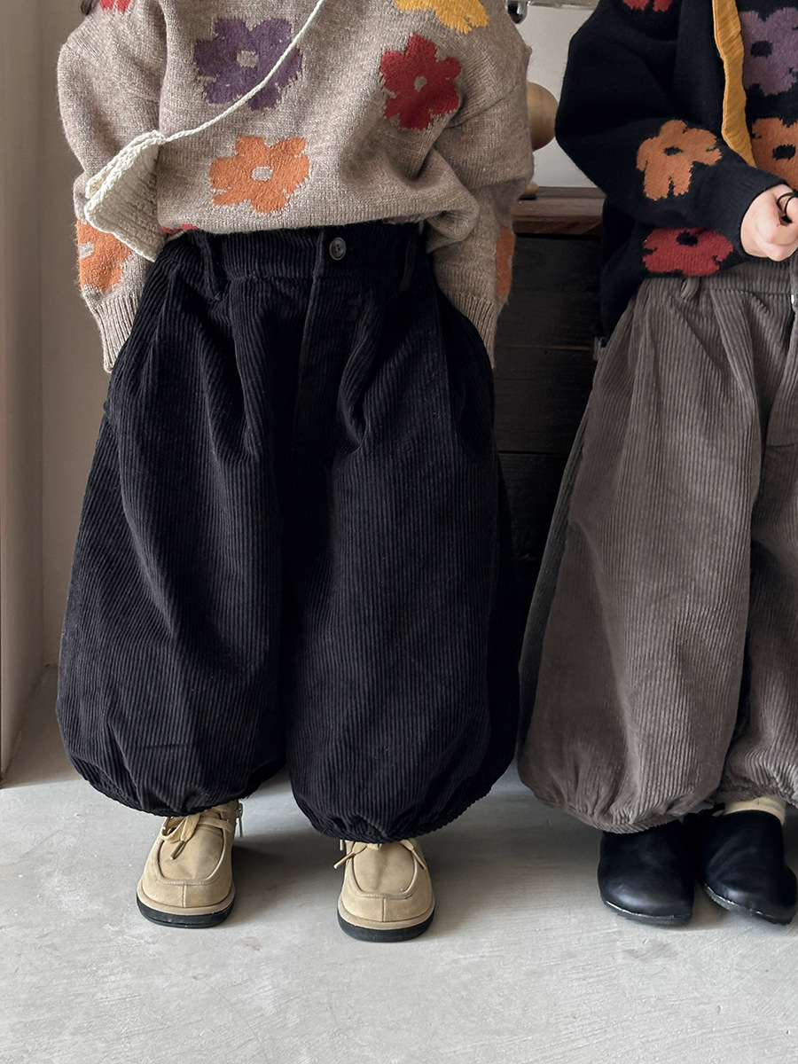 25Q44PA-春季森系簡約燈芯絨燈籠寬褲