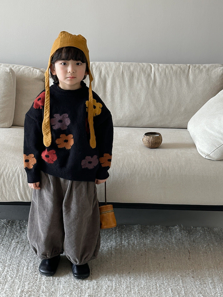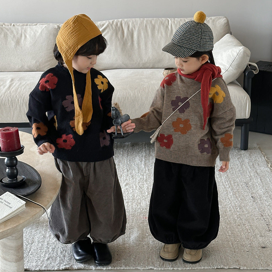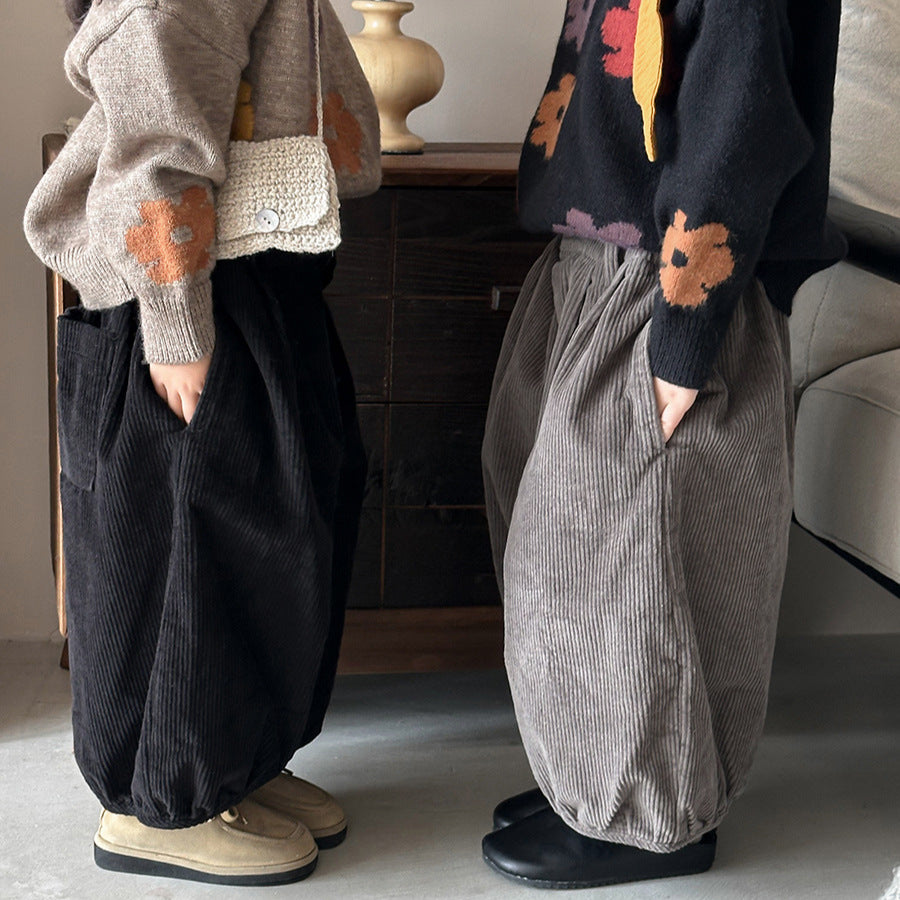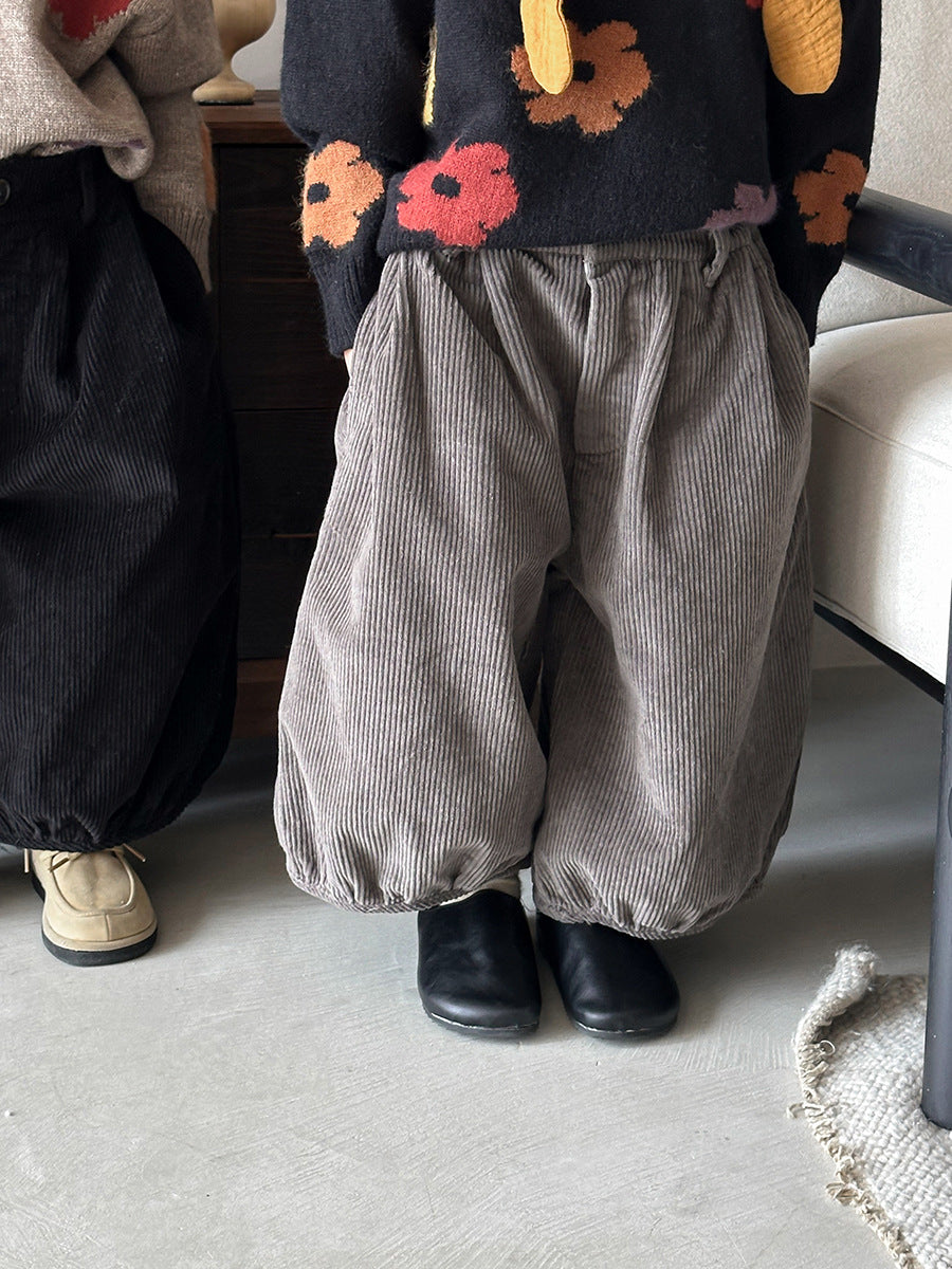 25Q44PA-春季森系簡約燈芯絨燈籠寬褲