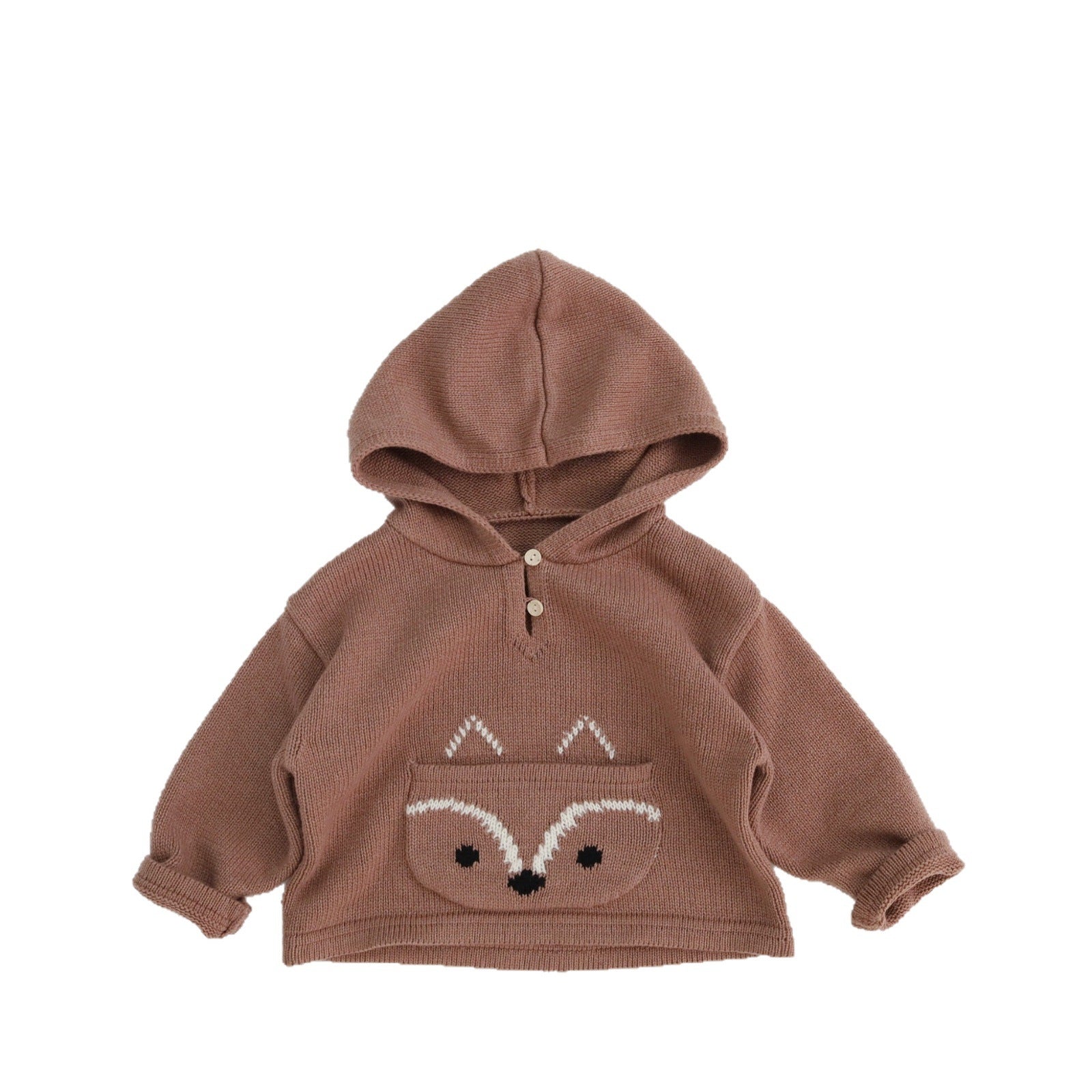 25T70SE-秋冬韓版雙釦狐狸口袋針織連帽上衣