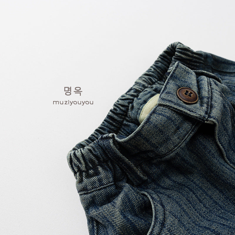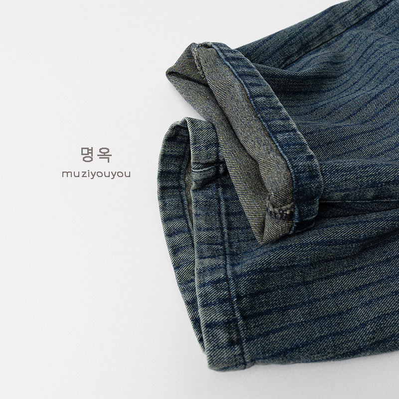 26019PA-春秋直條紋牛仔休閒長褲