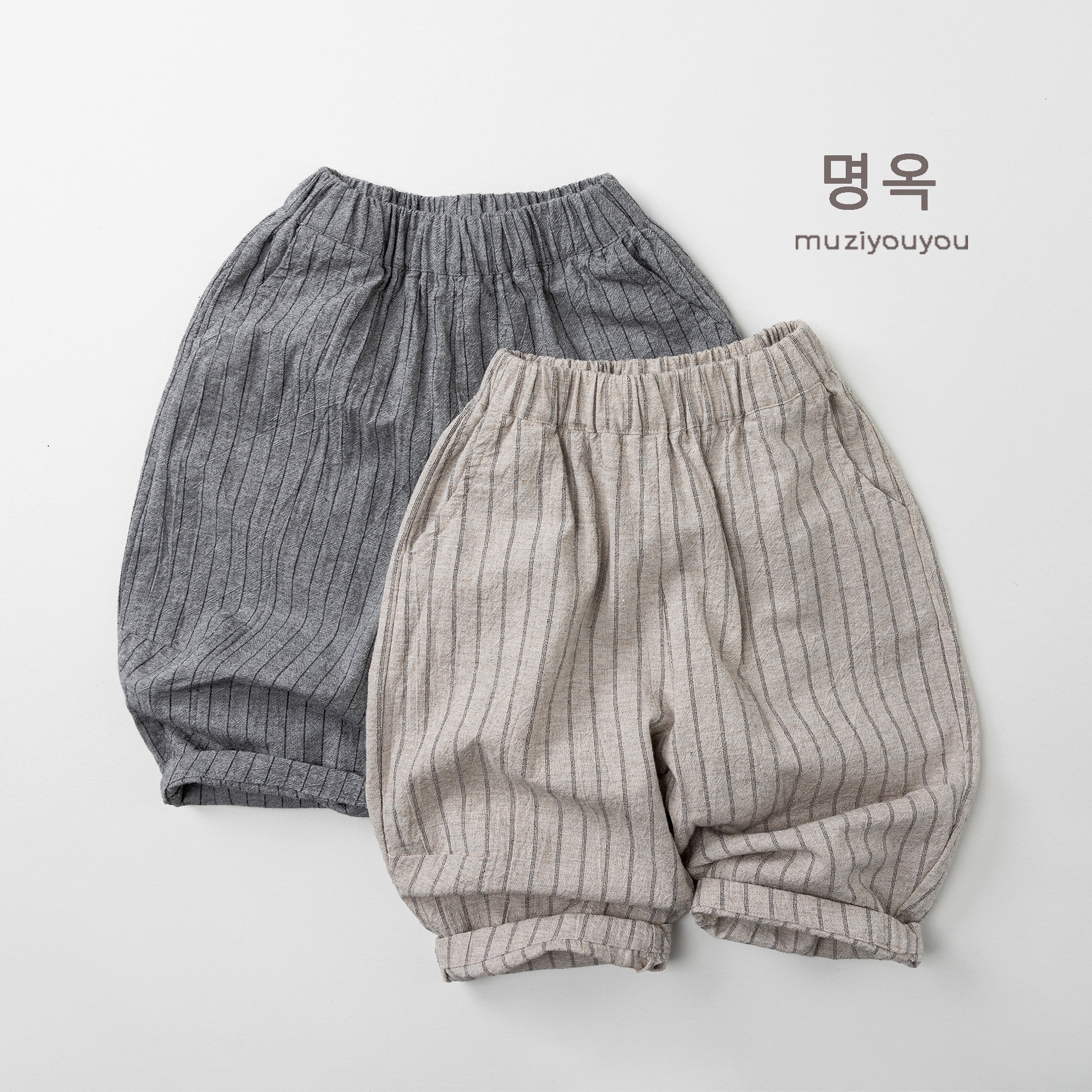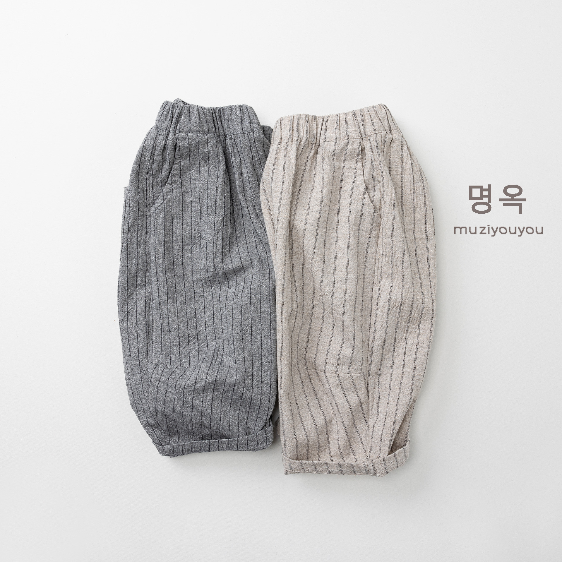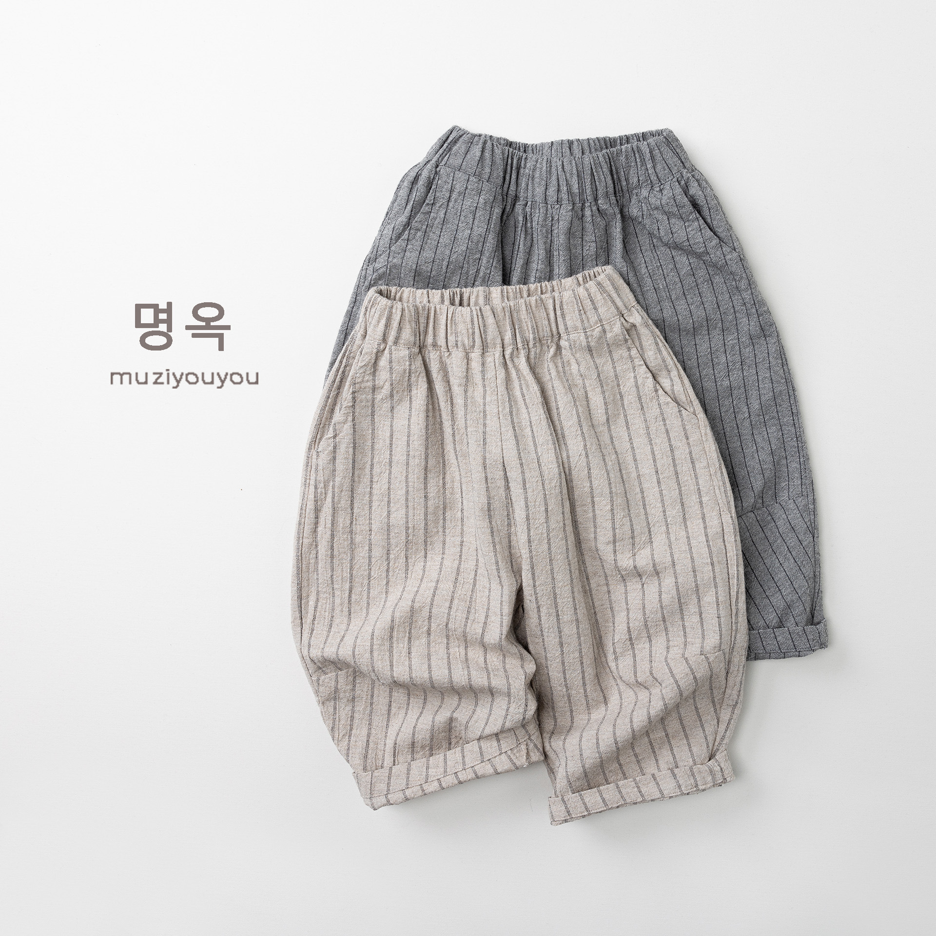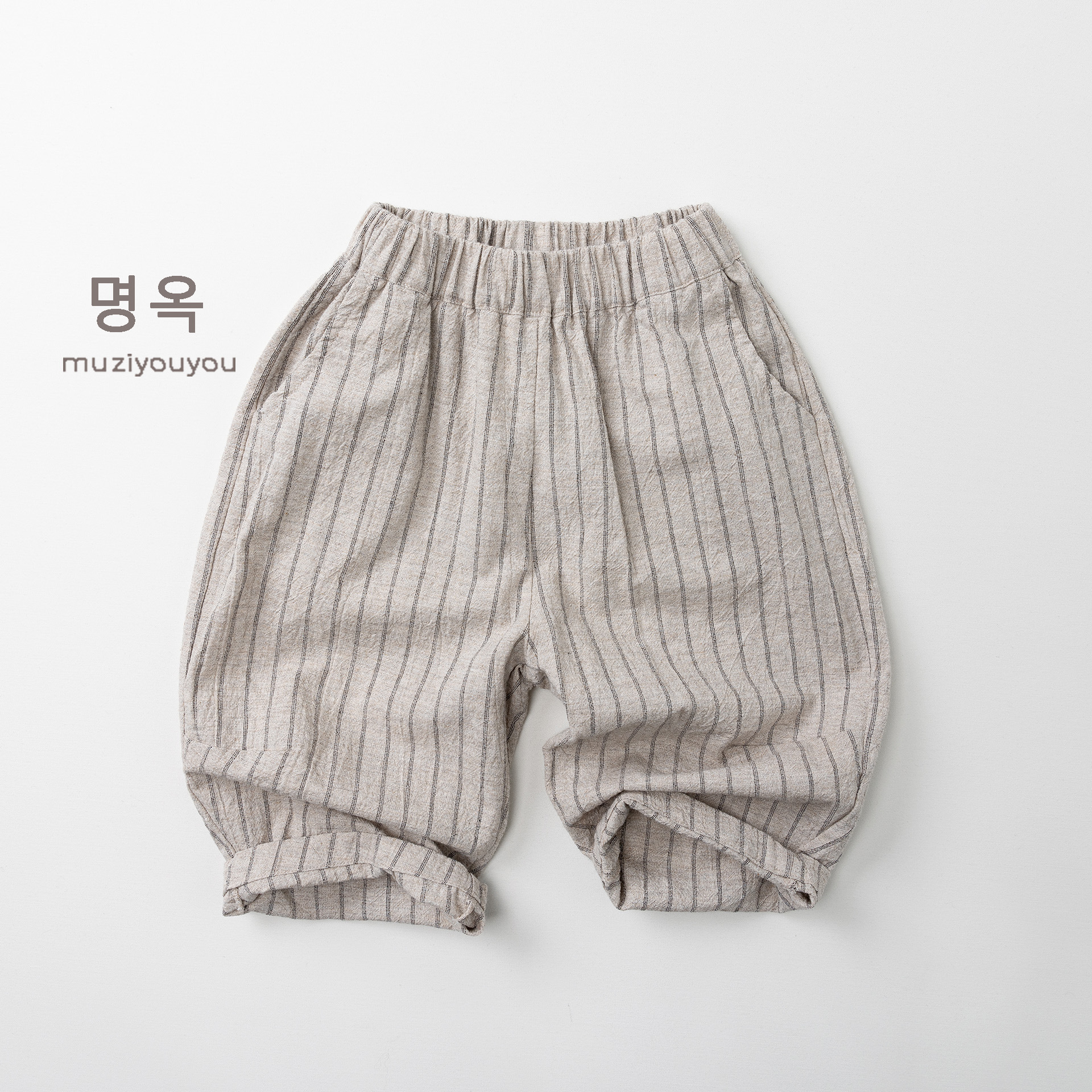26063PA-春夏|棉麻條紋|透氣長褲