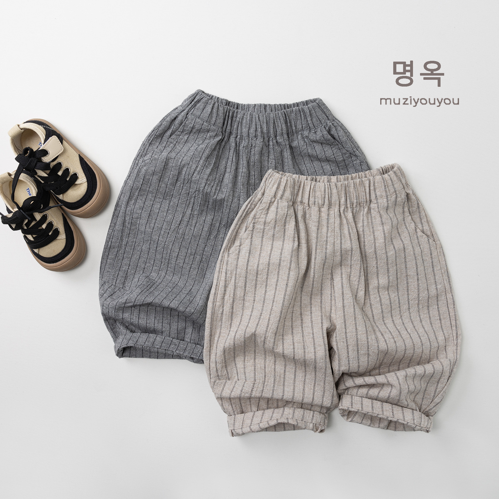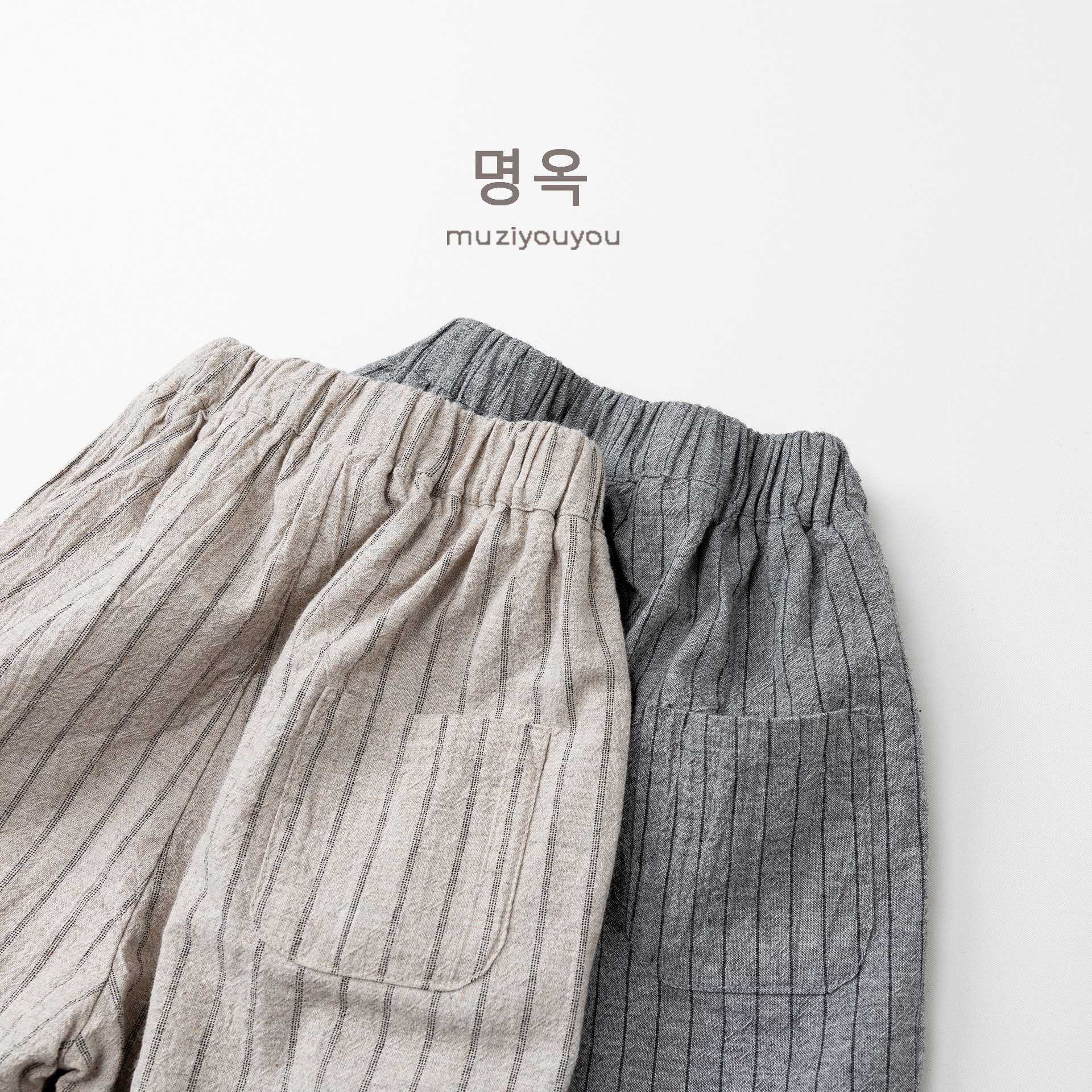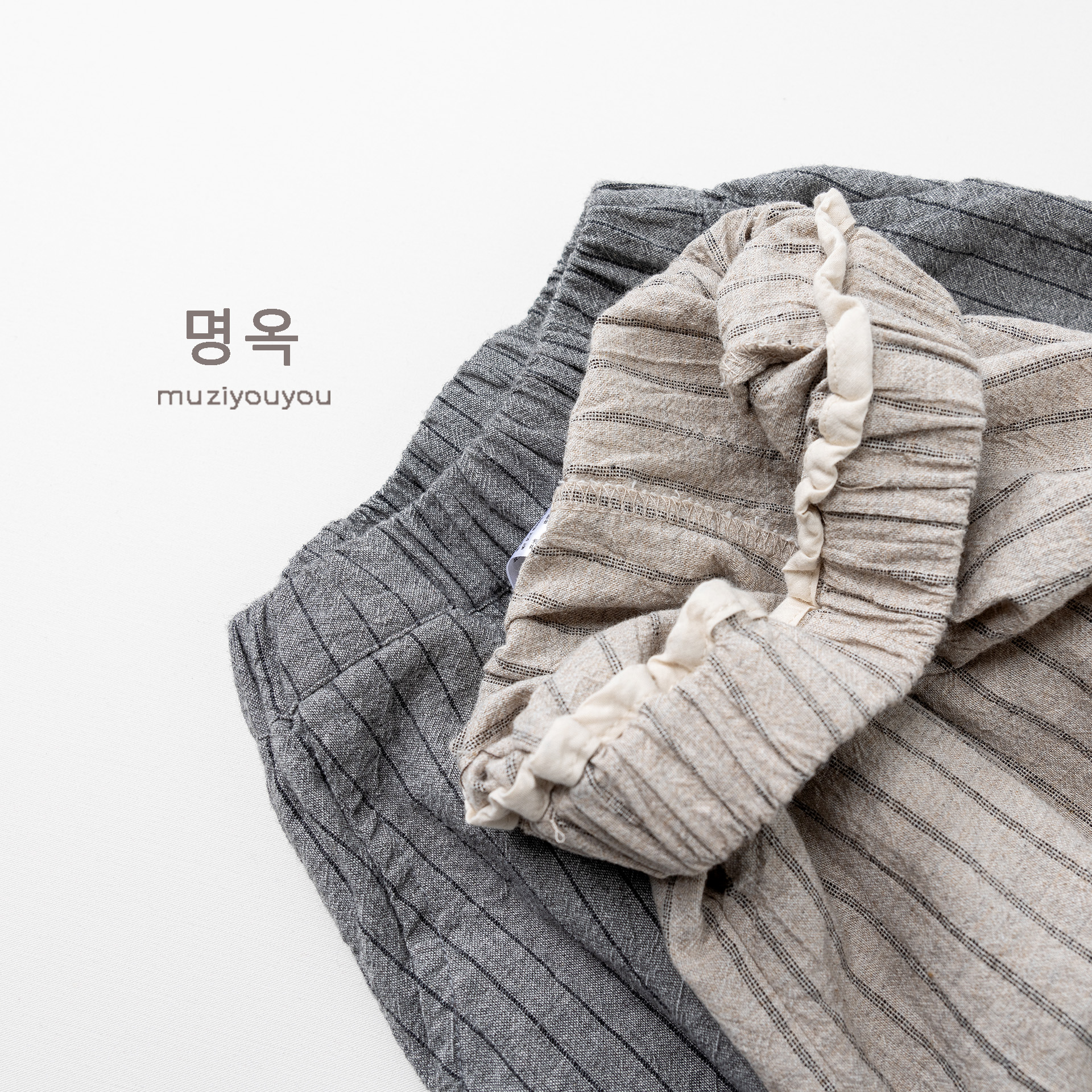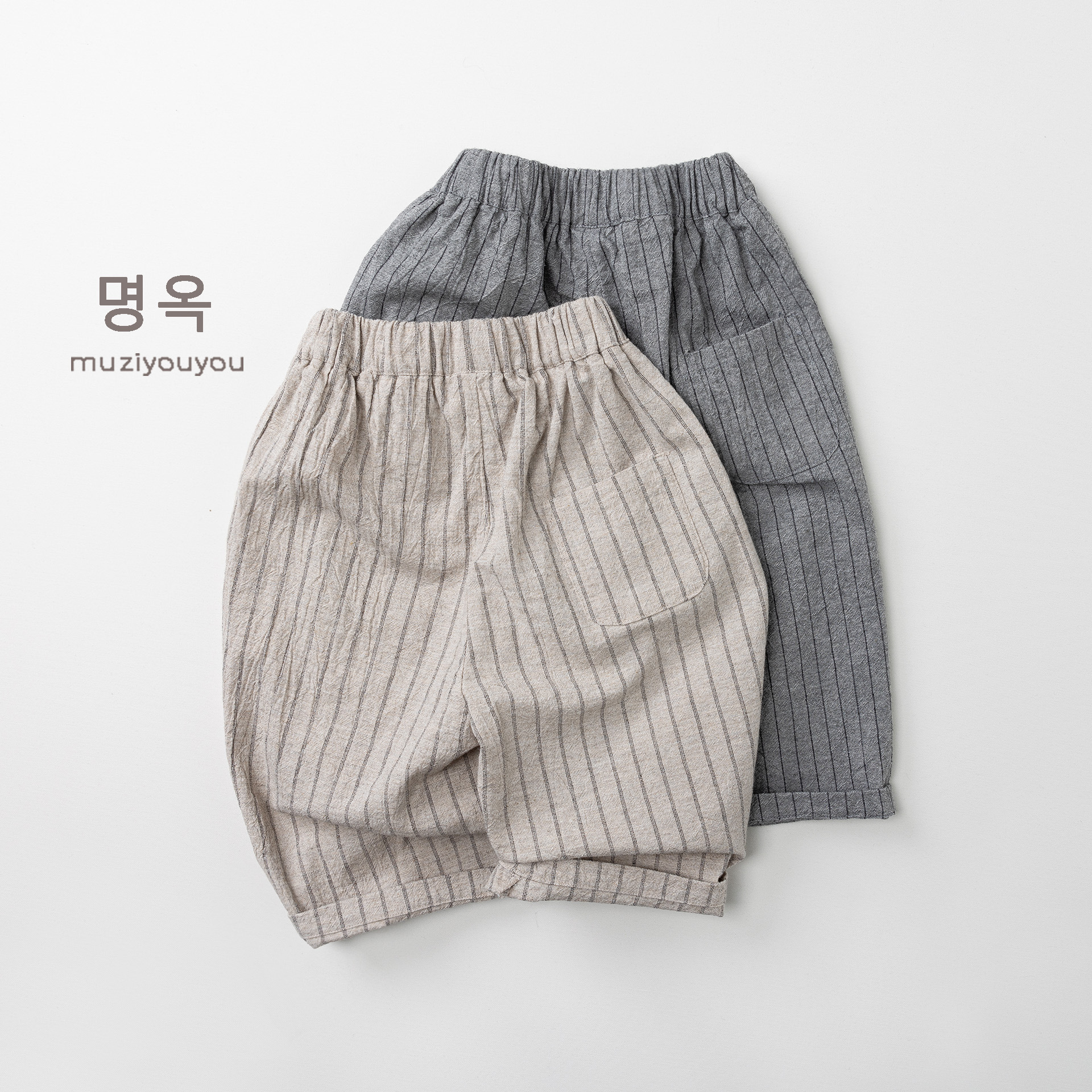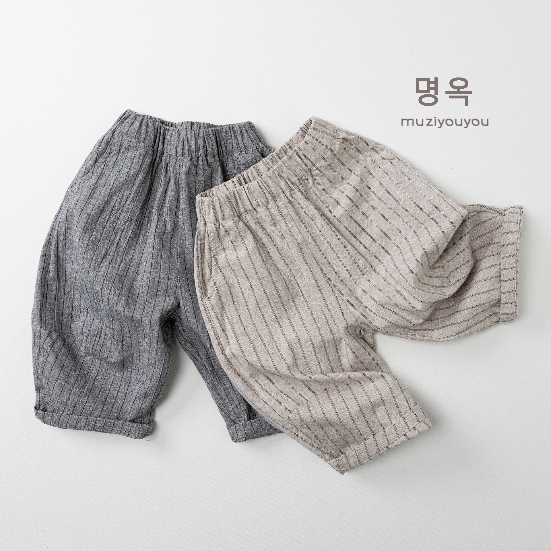 26063PA-春夏|棉麻條紋|透氣長褲