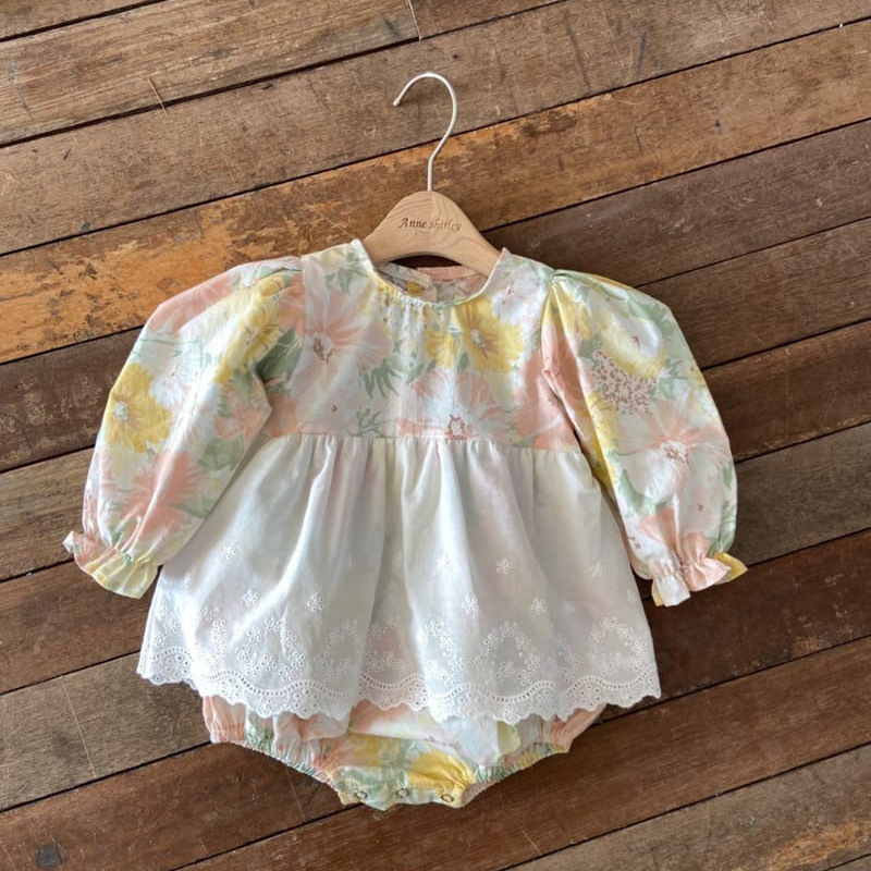 3064LS-嬰童小花小花泡泡袖爬服春季韓版童裝嬰兒春裝女寶寶連體包屁哈衣
