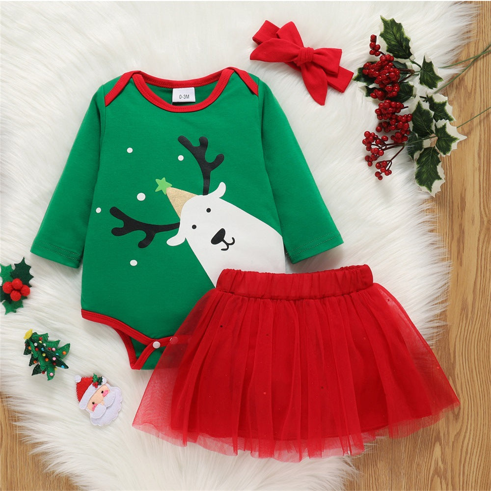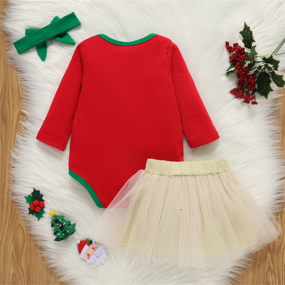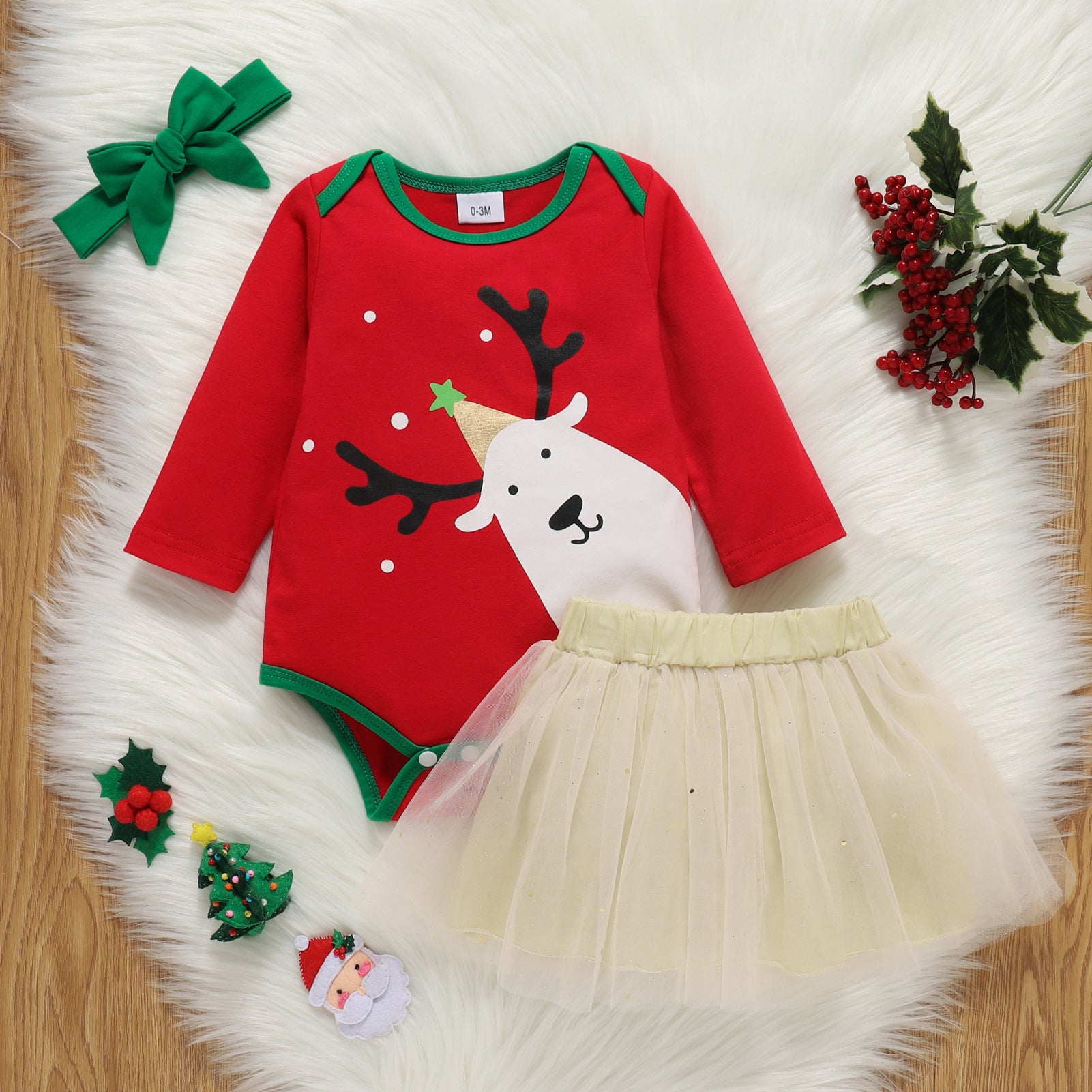 33685TG-秋冬歐美聖誕麋鹿包屁+網紗裙+蝴蝶結頭飾三件套
