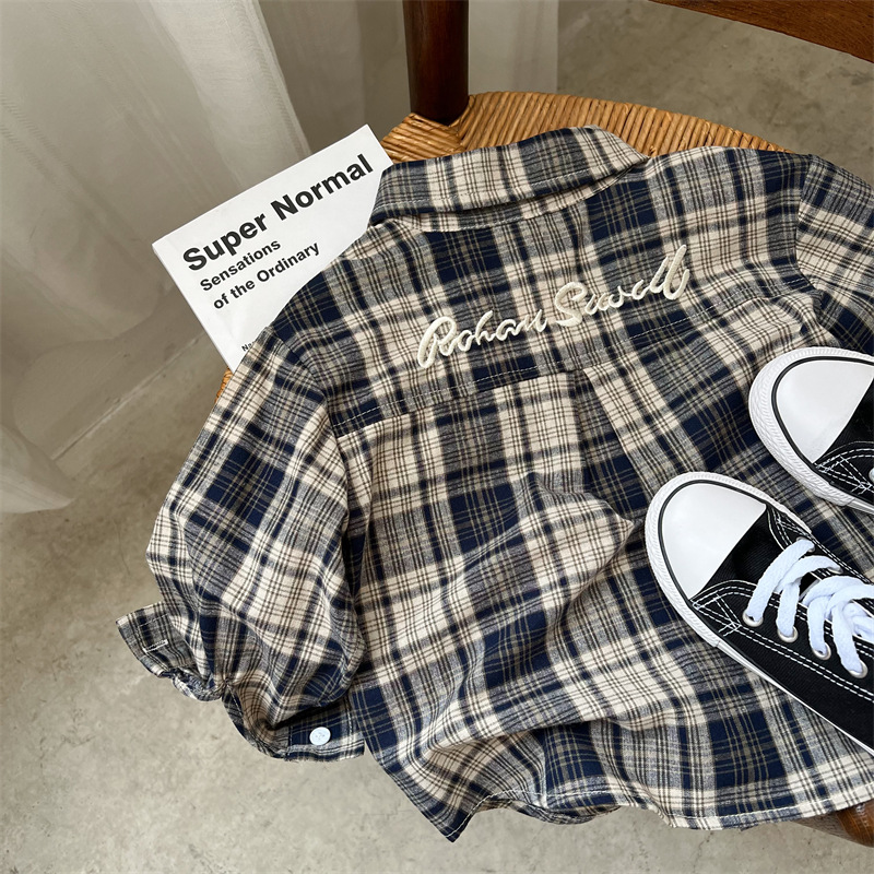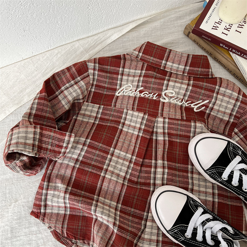 33829SE-秋季兒童刺繡格紋襯衫