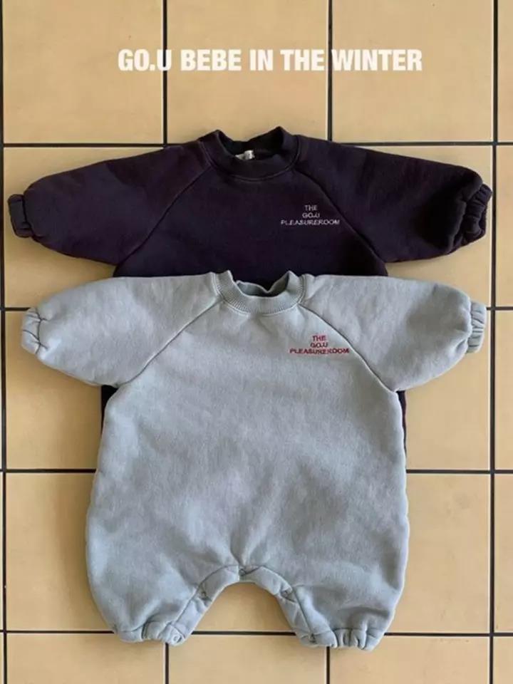 3749LS-冬裝韓版加絨字母印花長袖爬服