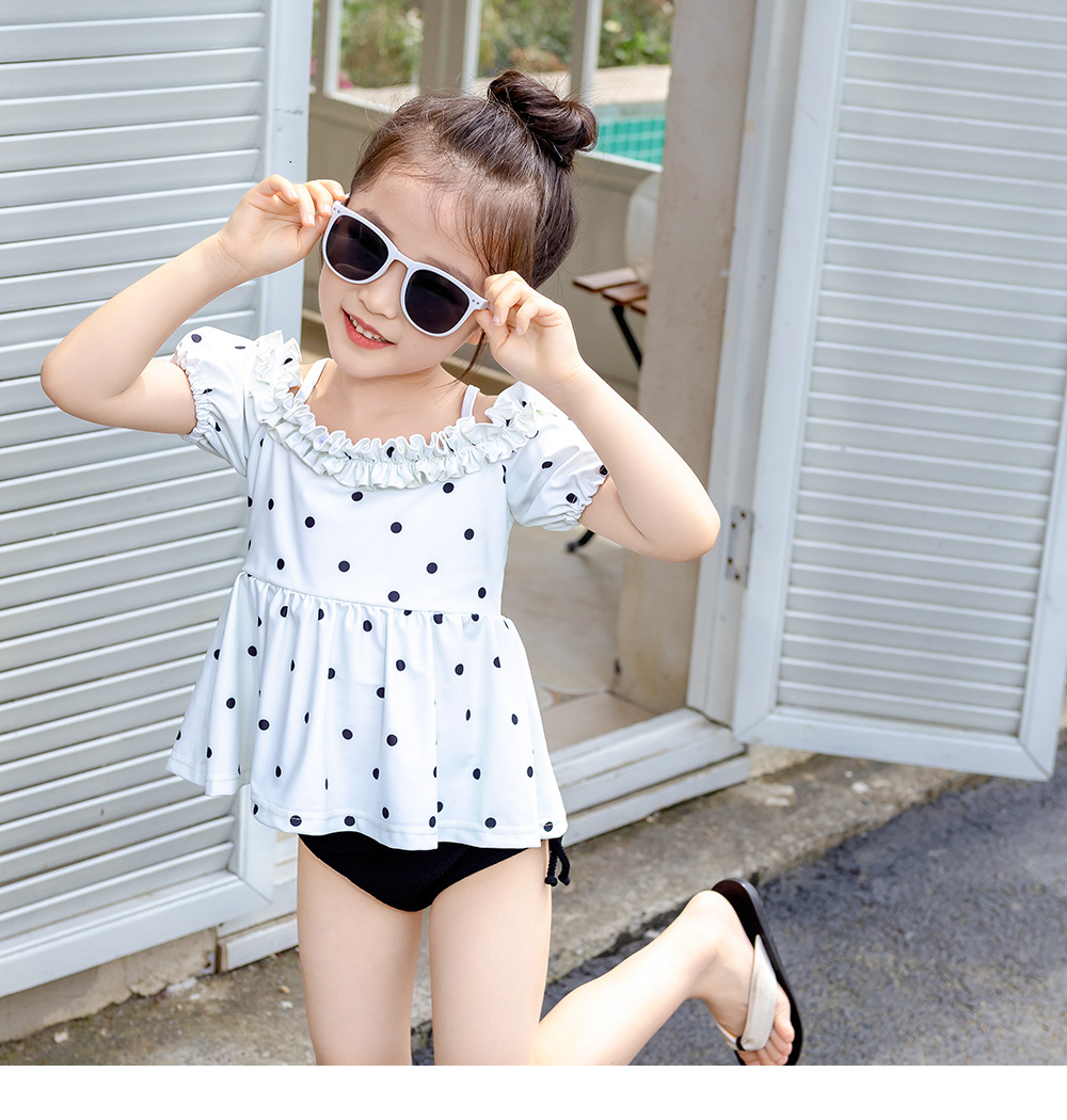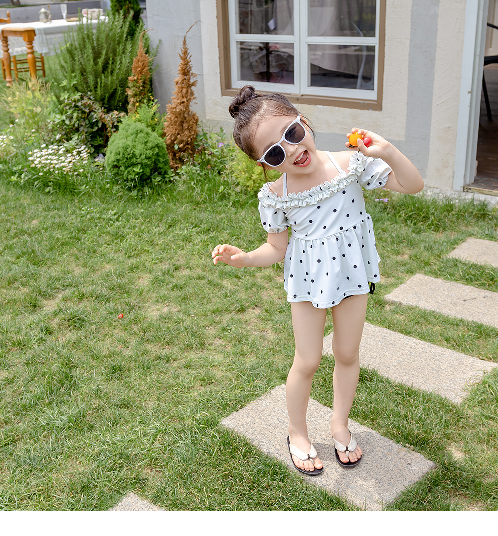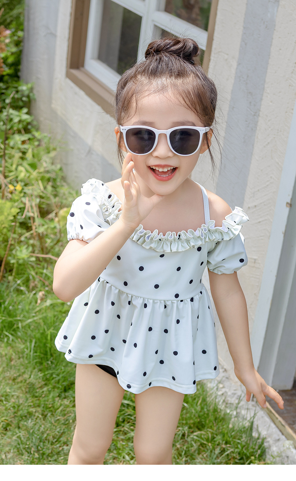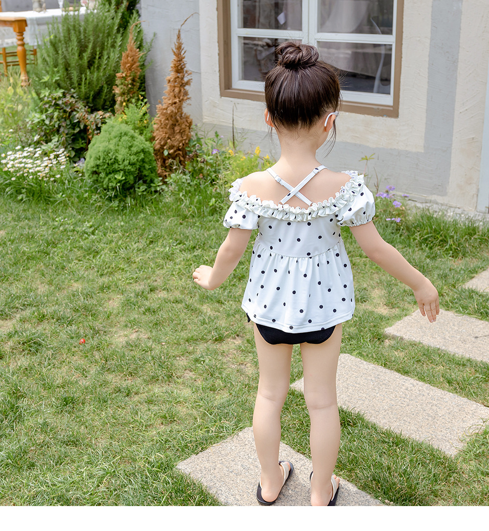 4287LS-夏季速乾女童一字肩分體泳衣+泳帽