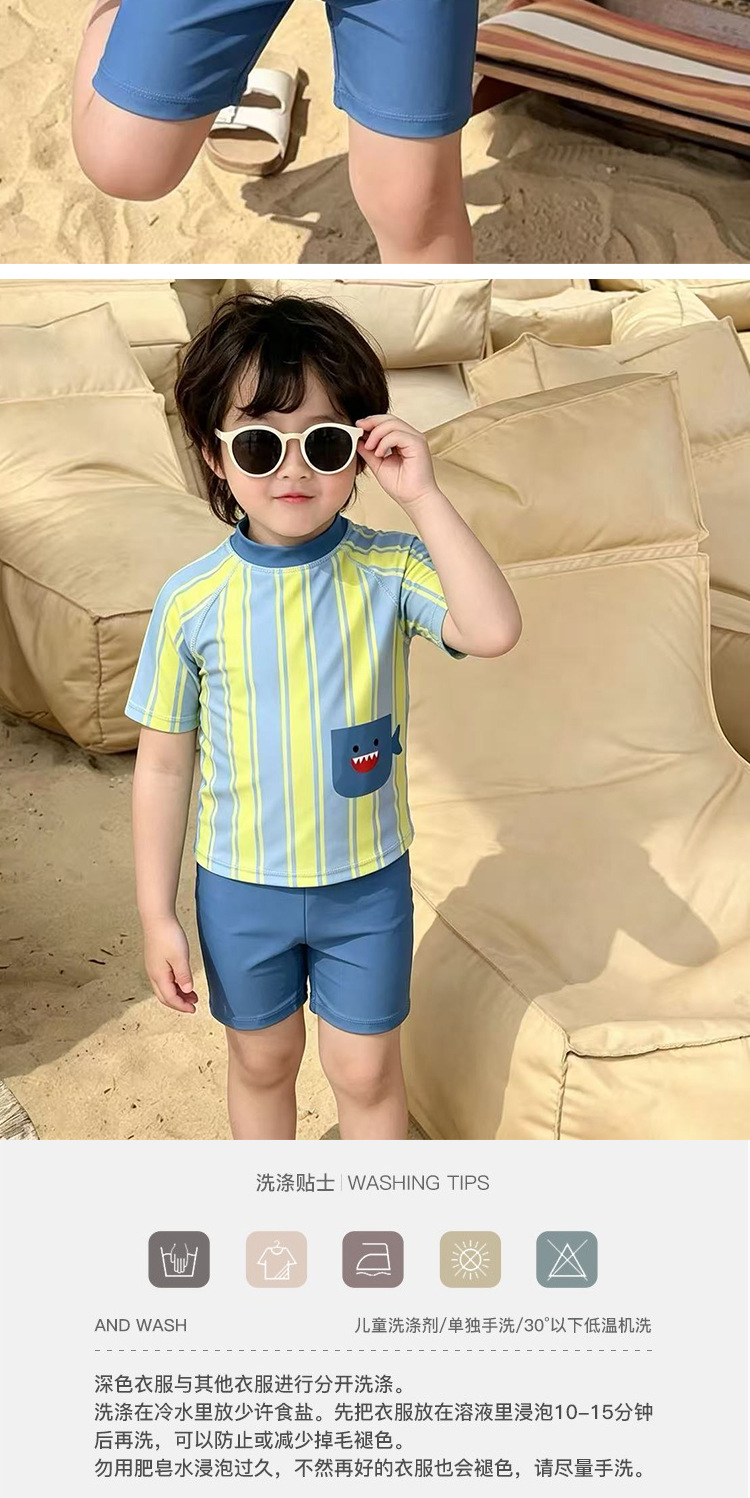43003TG-夏季|卡通鯊魚|分體泳衣泳褲套裝
