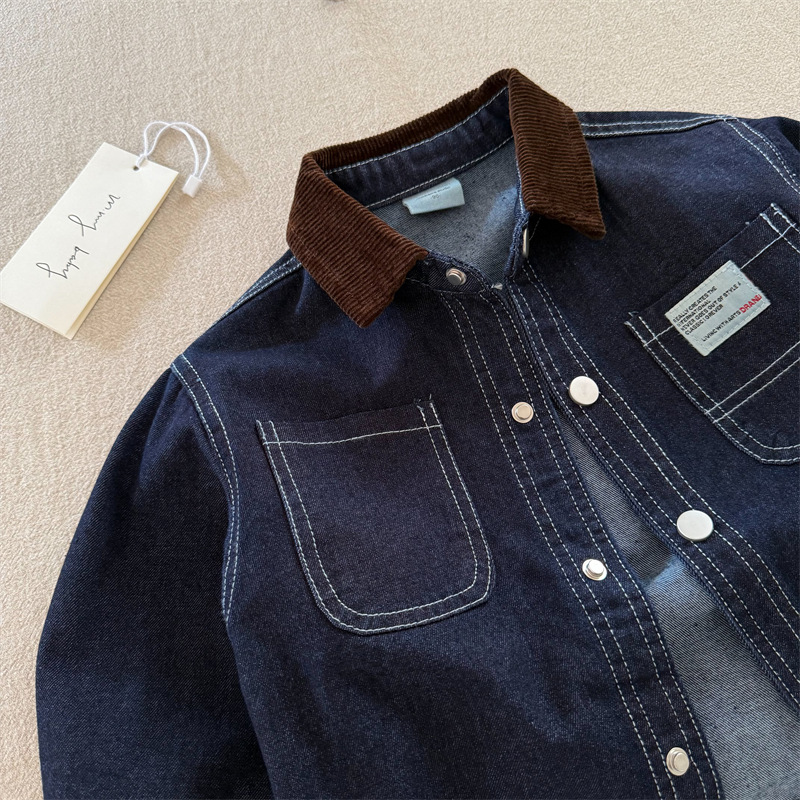 50103SE-秋季男女童百搭拼接牛仔襯衫外套