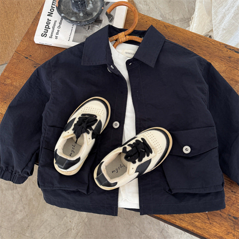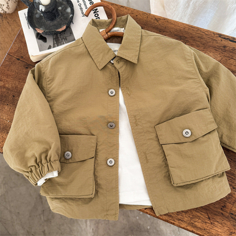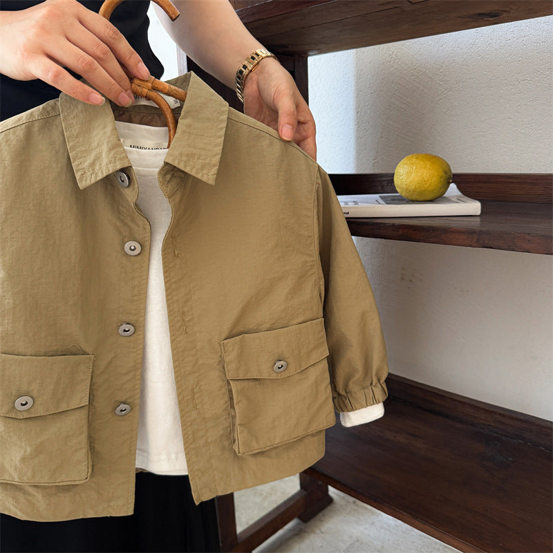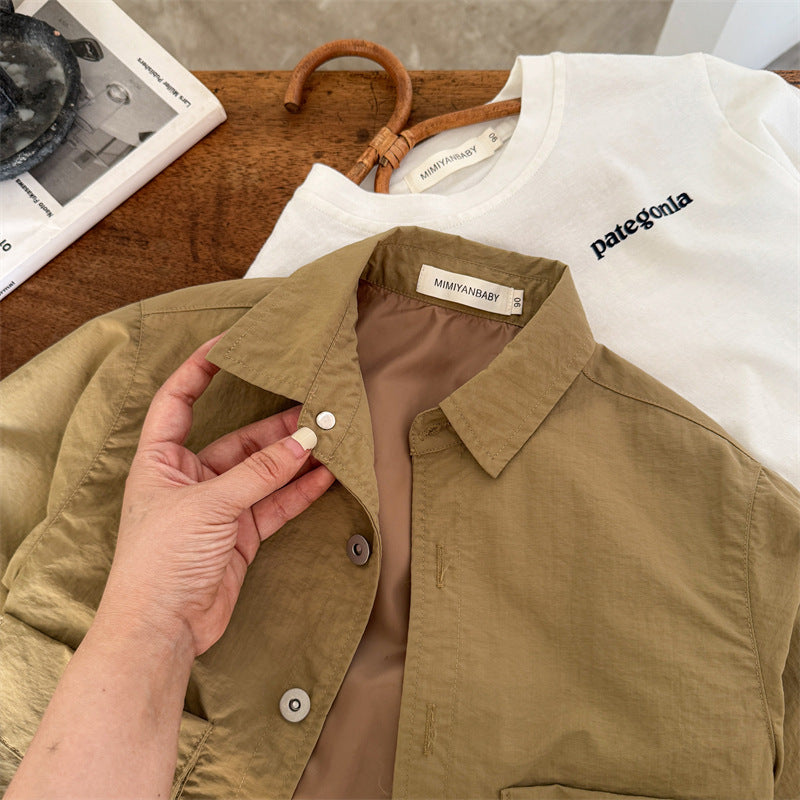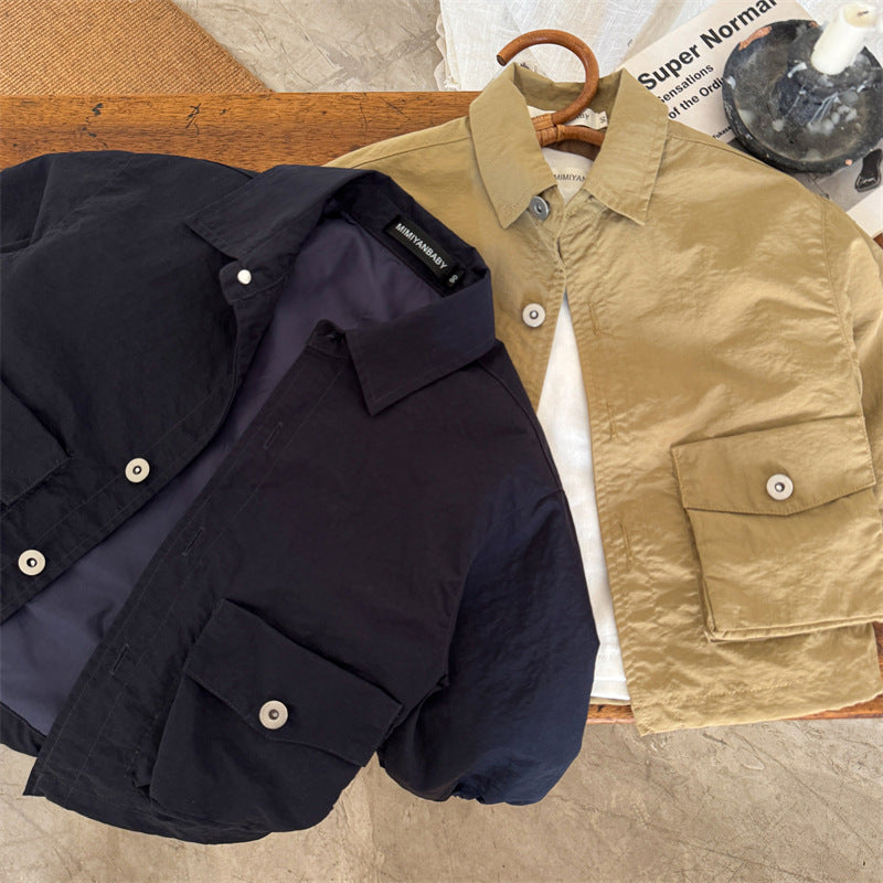 50152SE-秋季兒童翻領素色襯衫外套