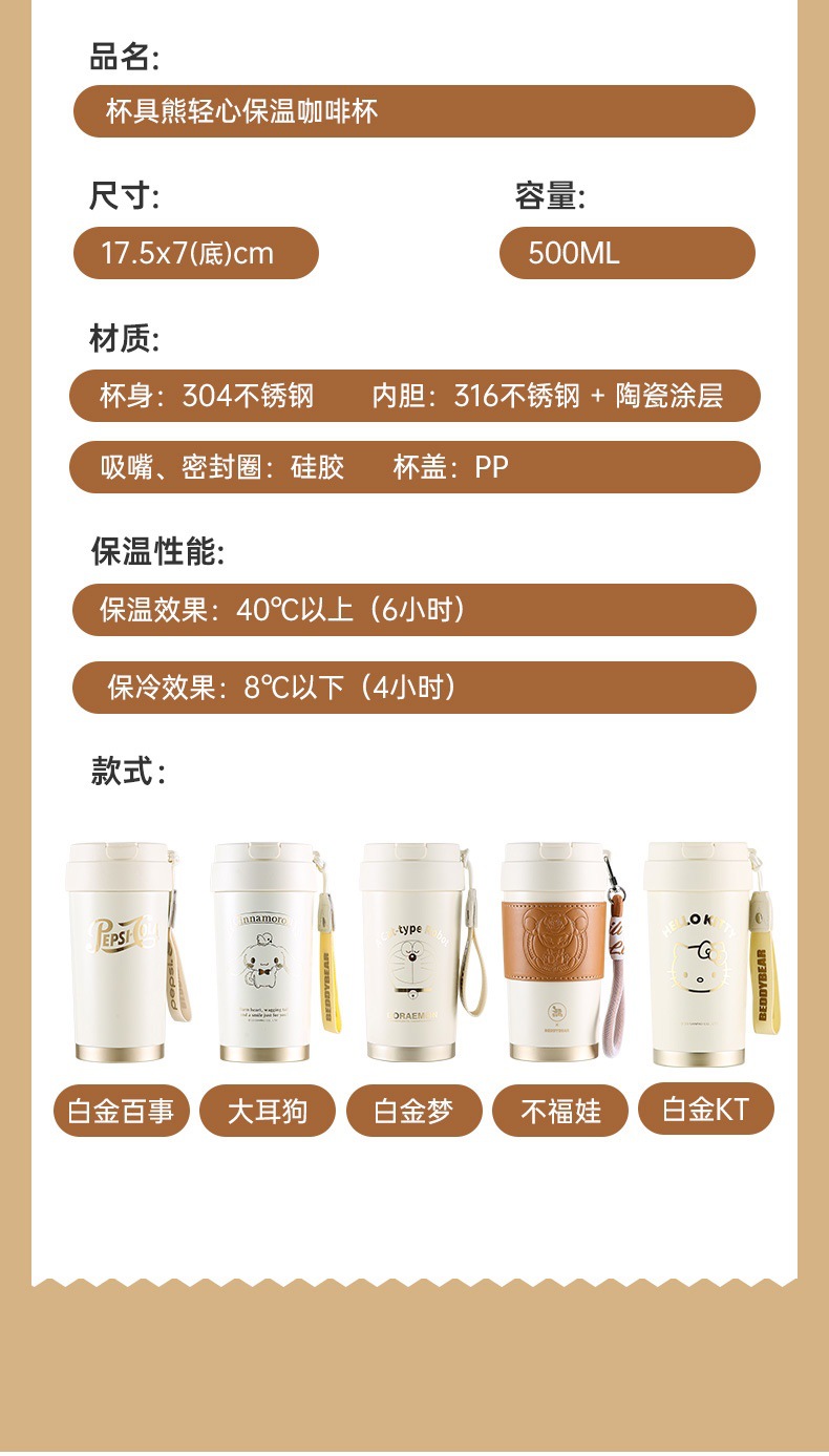 白金咖啡杯500ml-哆啦