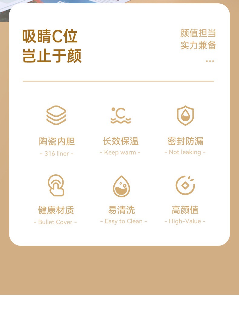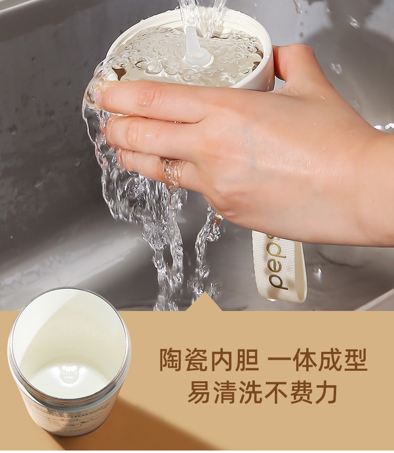 50501AC-杯具熊陶瓷內膽帶吸管保溫杯