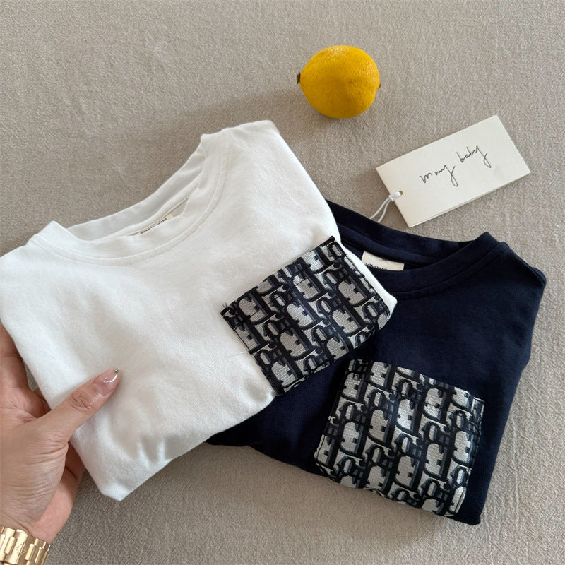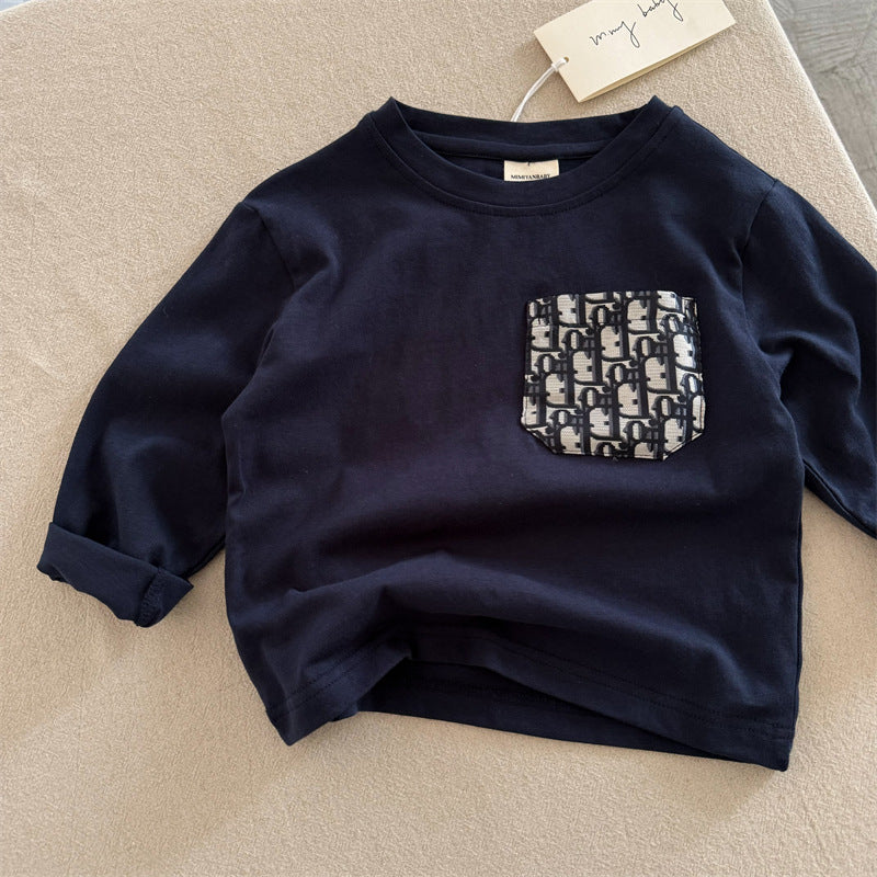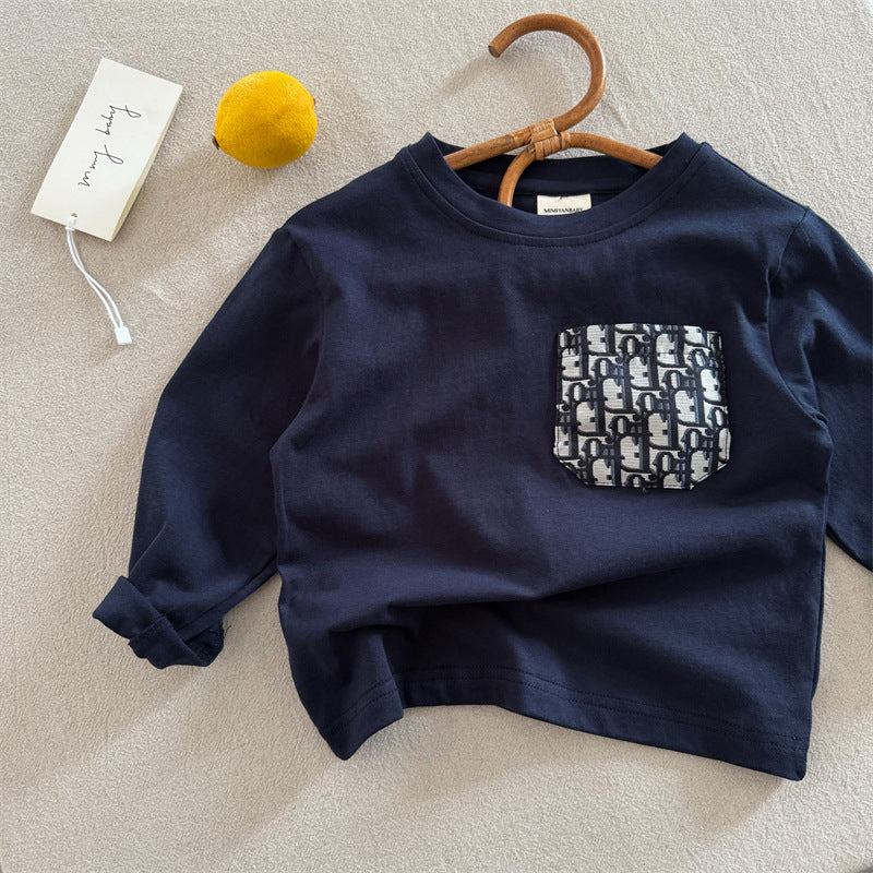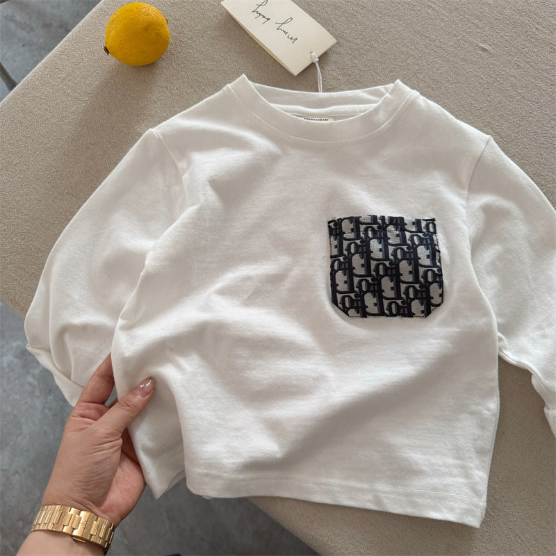 51070SE-秋季字母口袋薄長袖上衣T恤