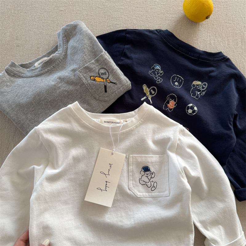 51211SE-秋季男女童卡通口袋圓領長袖上衣