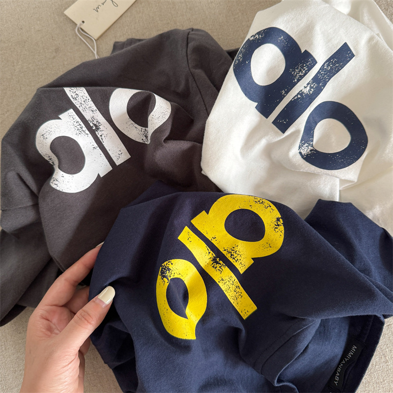 51291SE-秋季男女童印花字母長袖圓領上衣