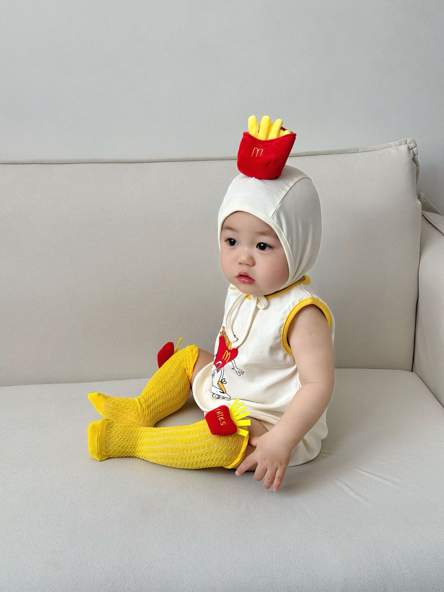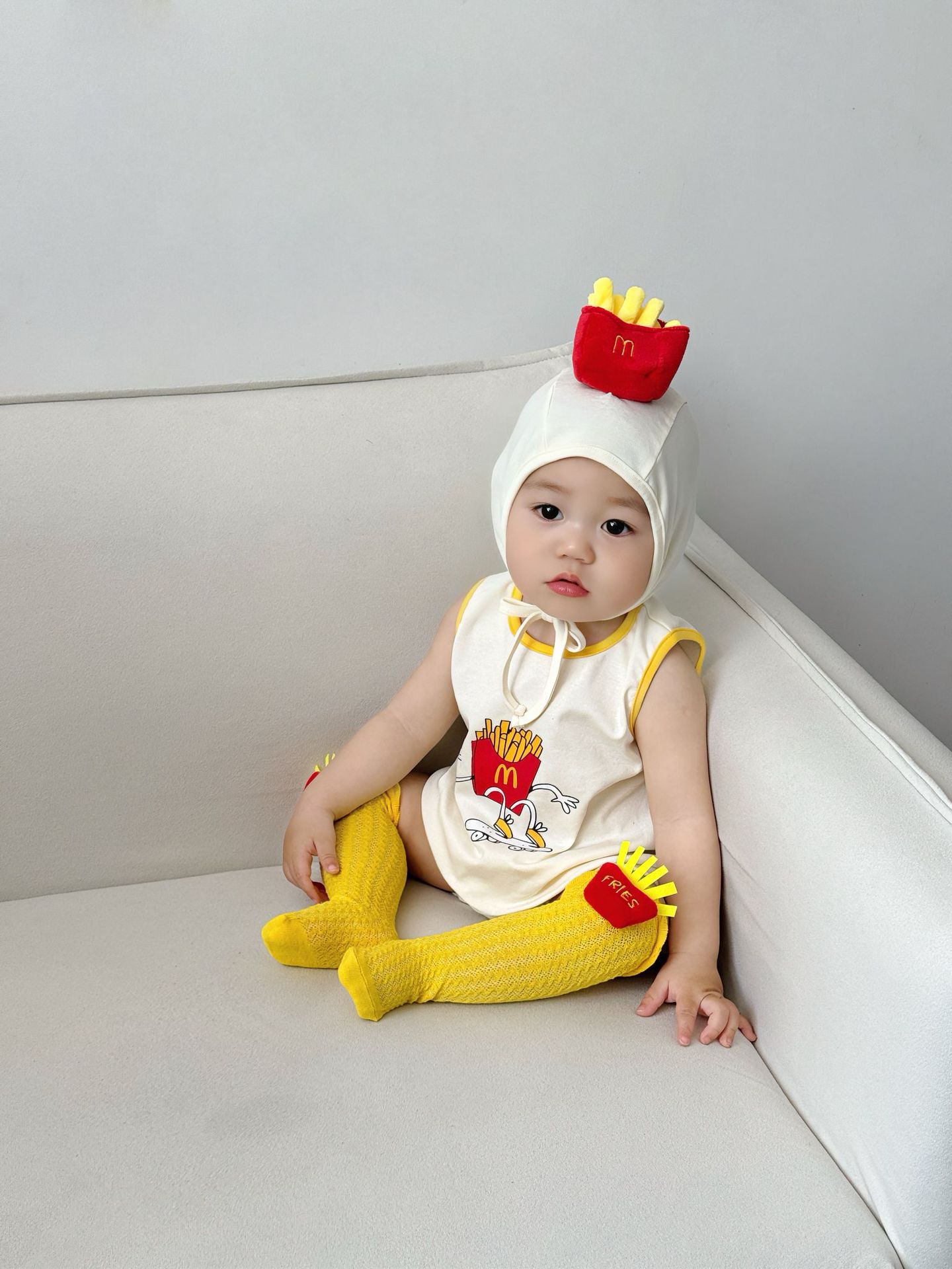 51403LS-夏季韓版薯款造型寶寶包屁衣+襪子+帽