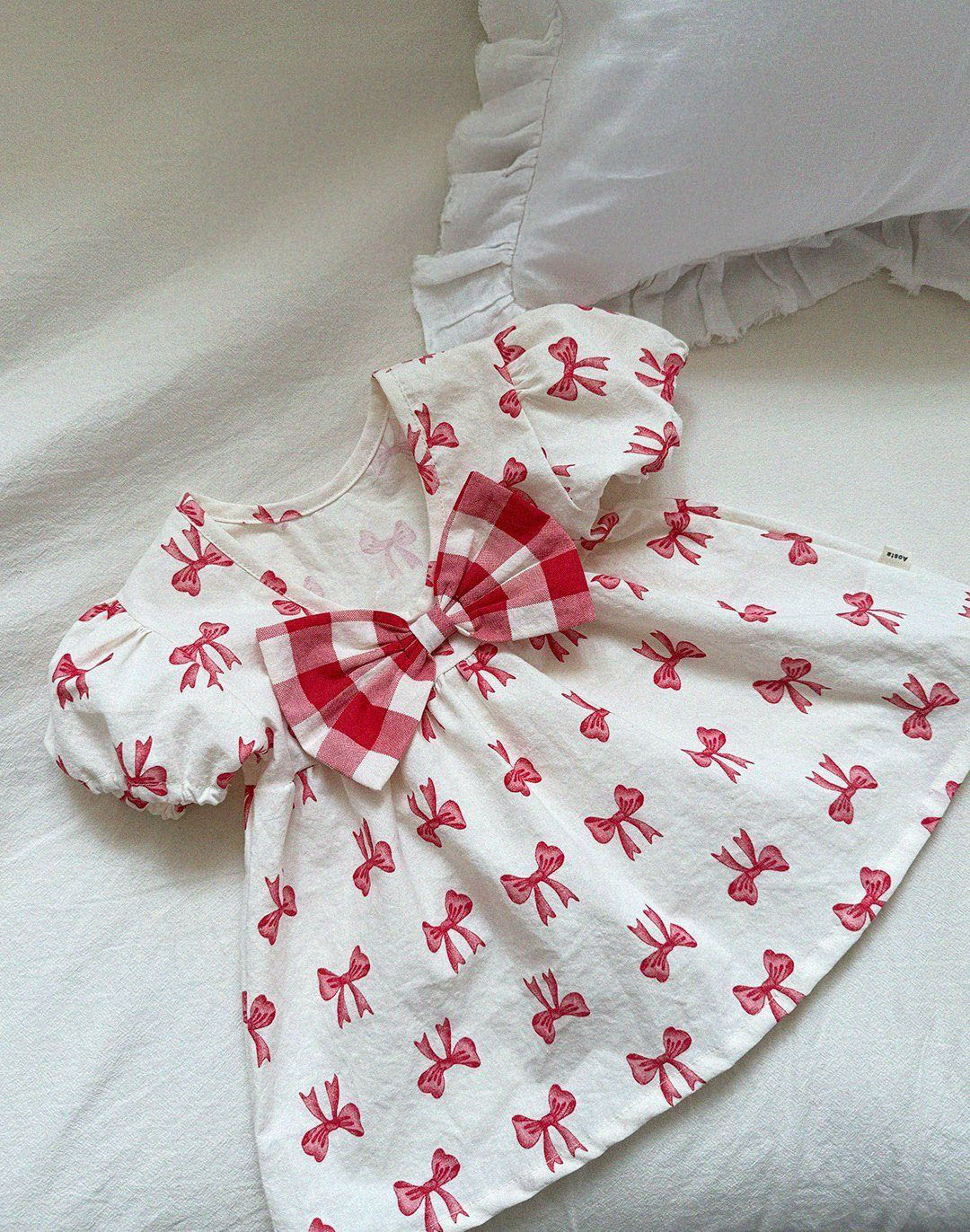 25四色連身裙(紅色蝴蝶結) / 100公分