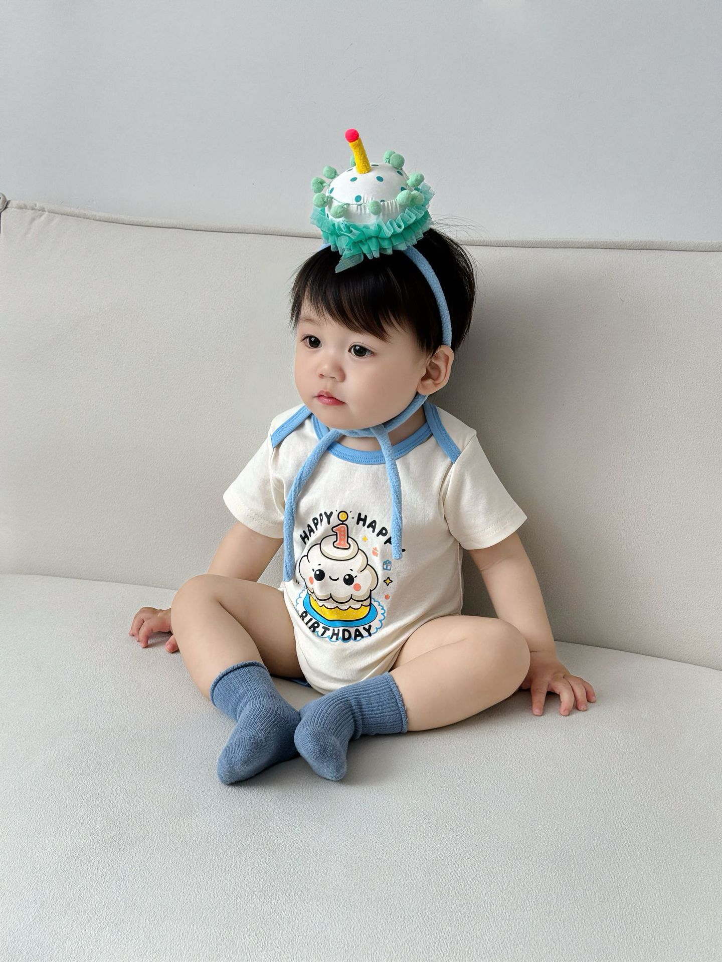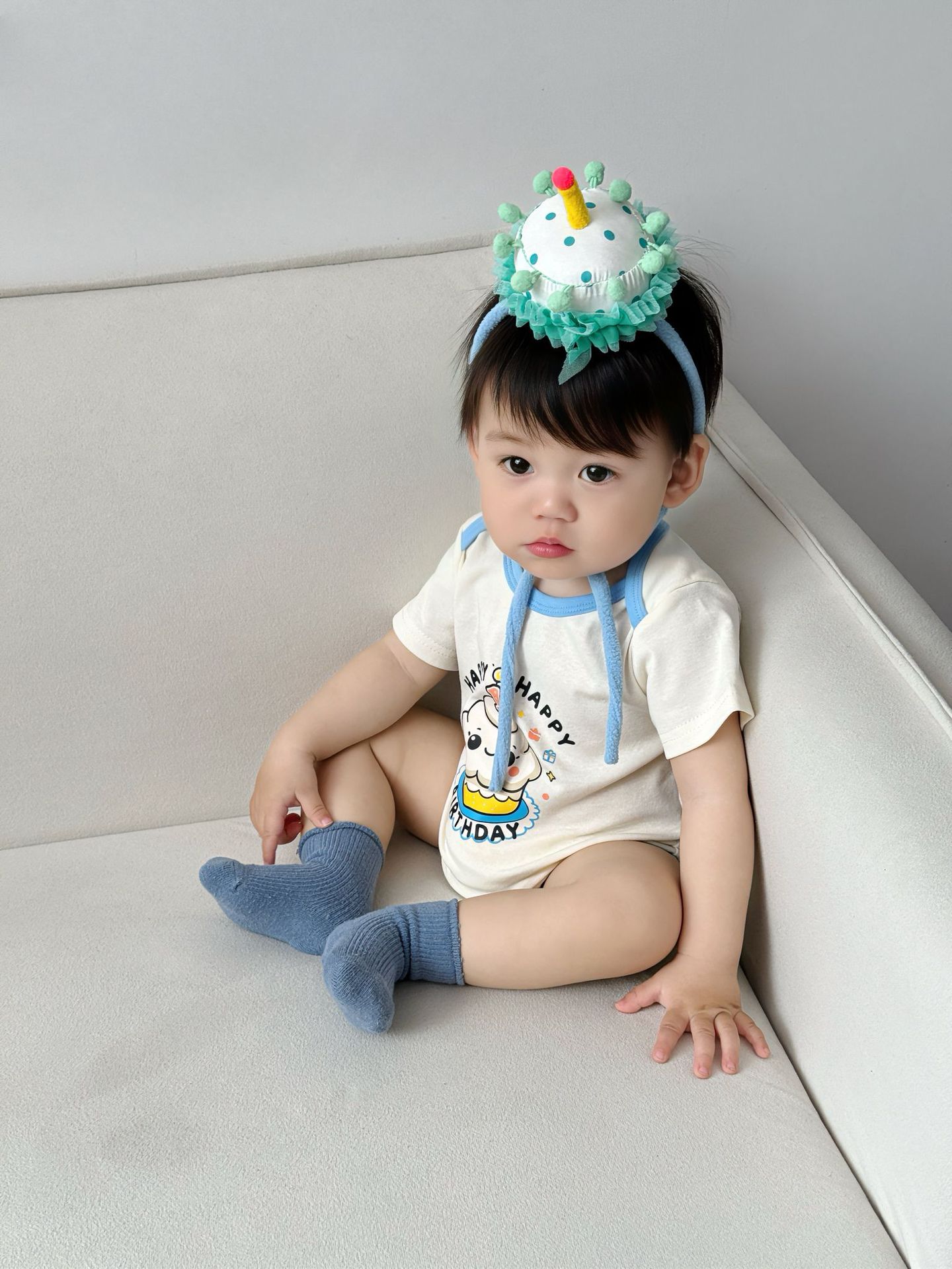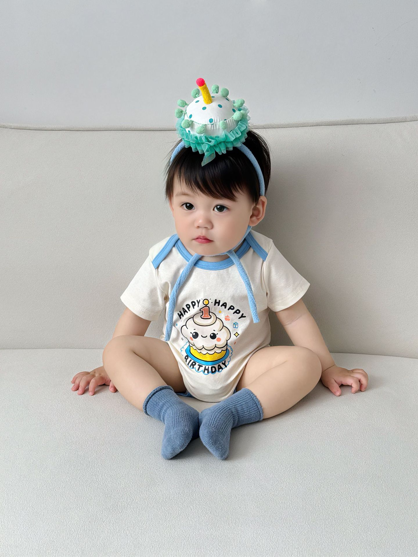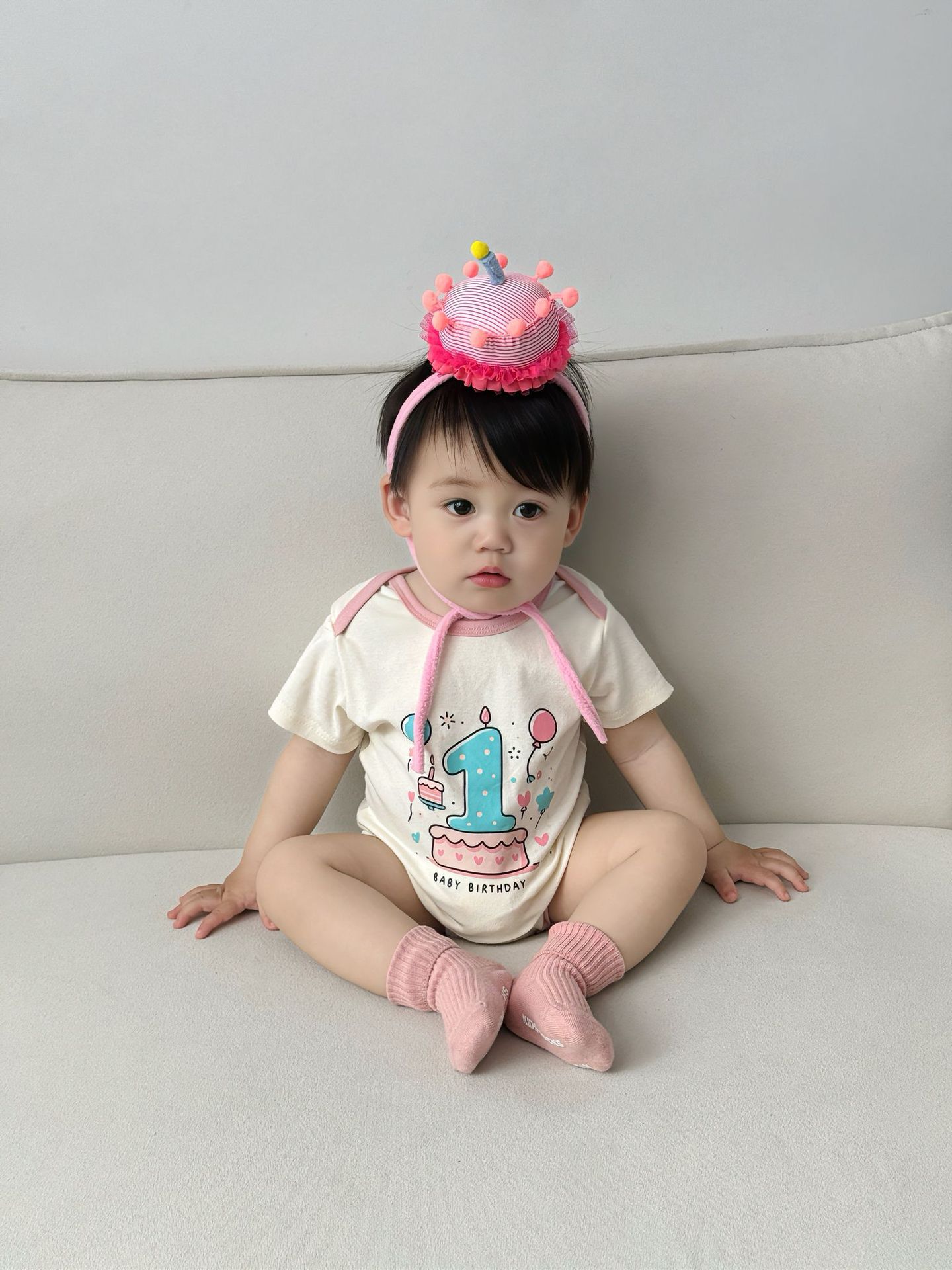 51407LS-夏季韓版短袖生日主題包屁衣+帽