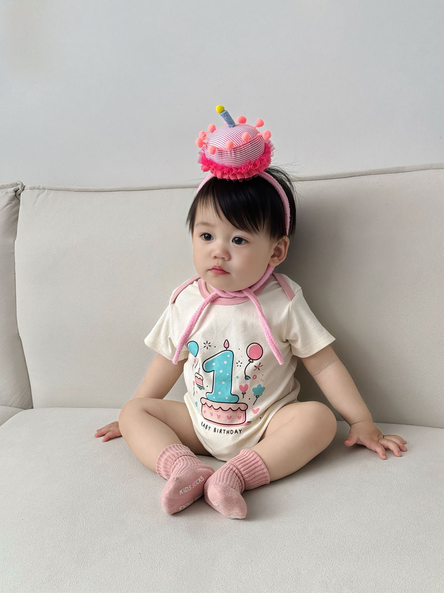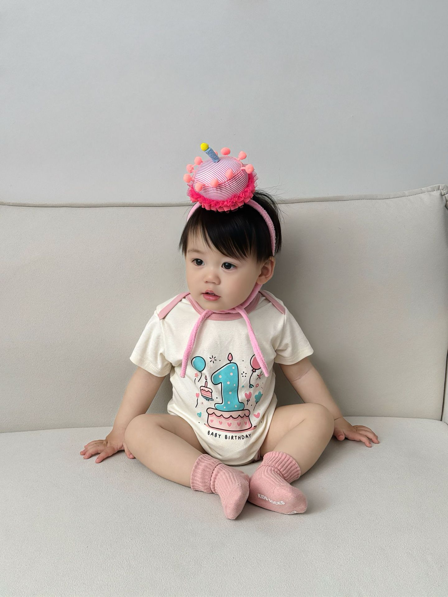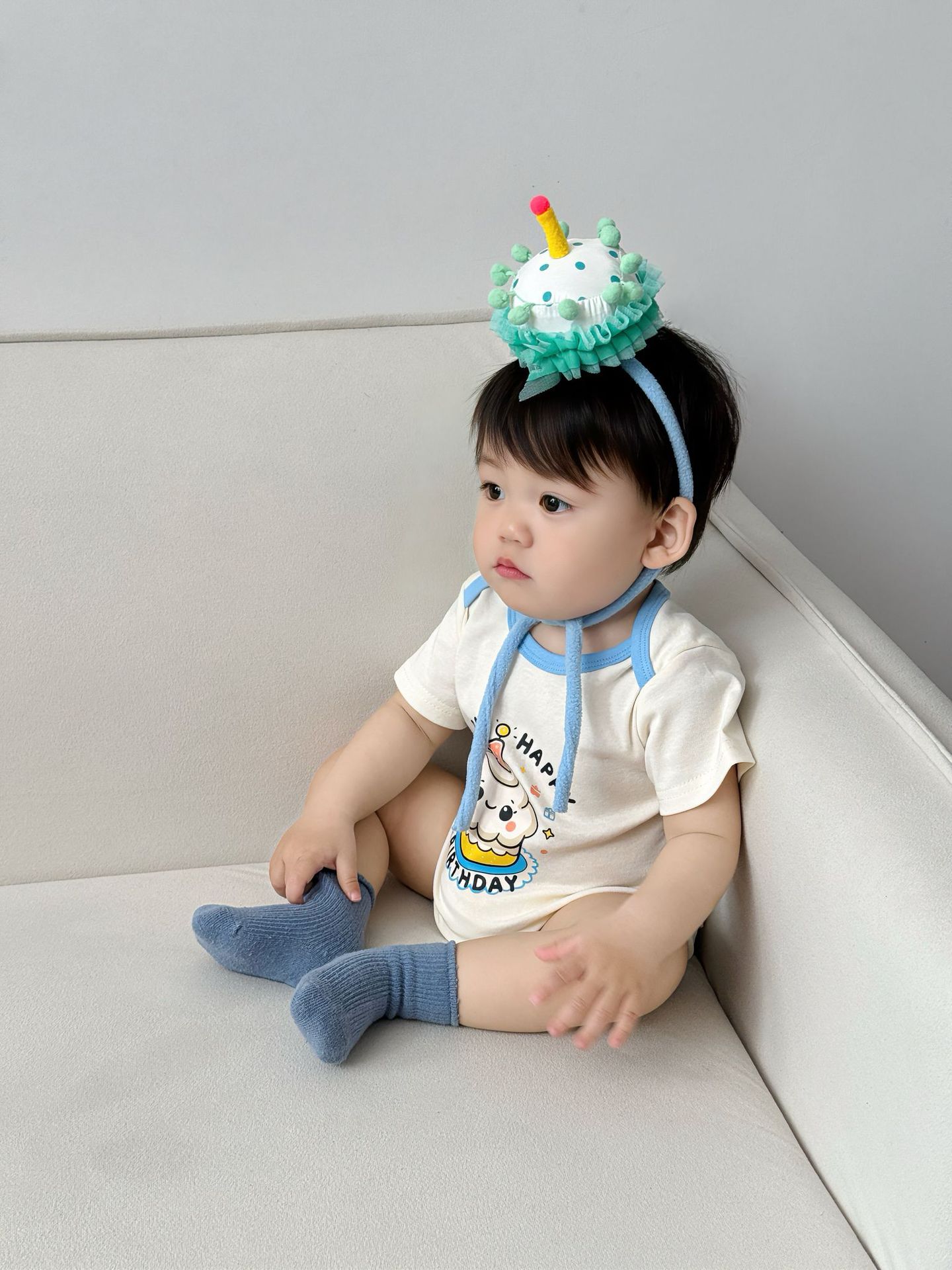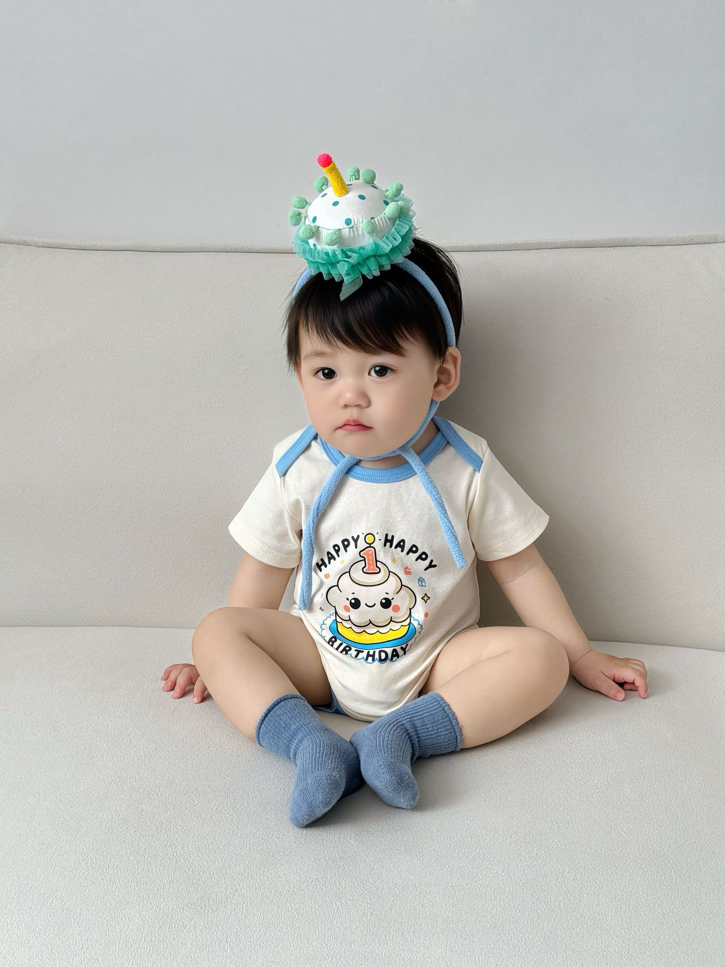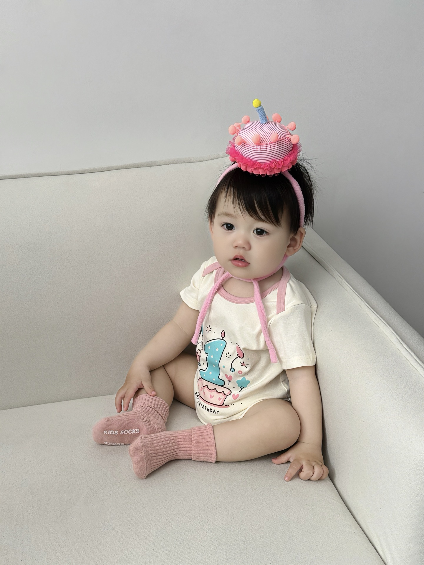 51407LS-夏季韓版短袖生日主題包屁衣+帽