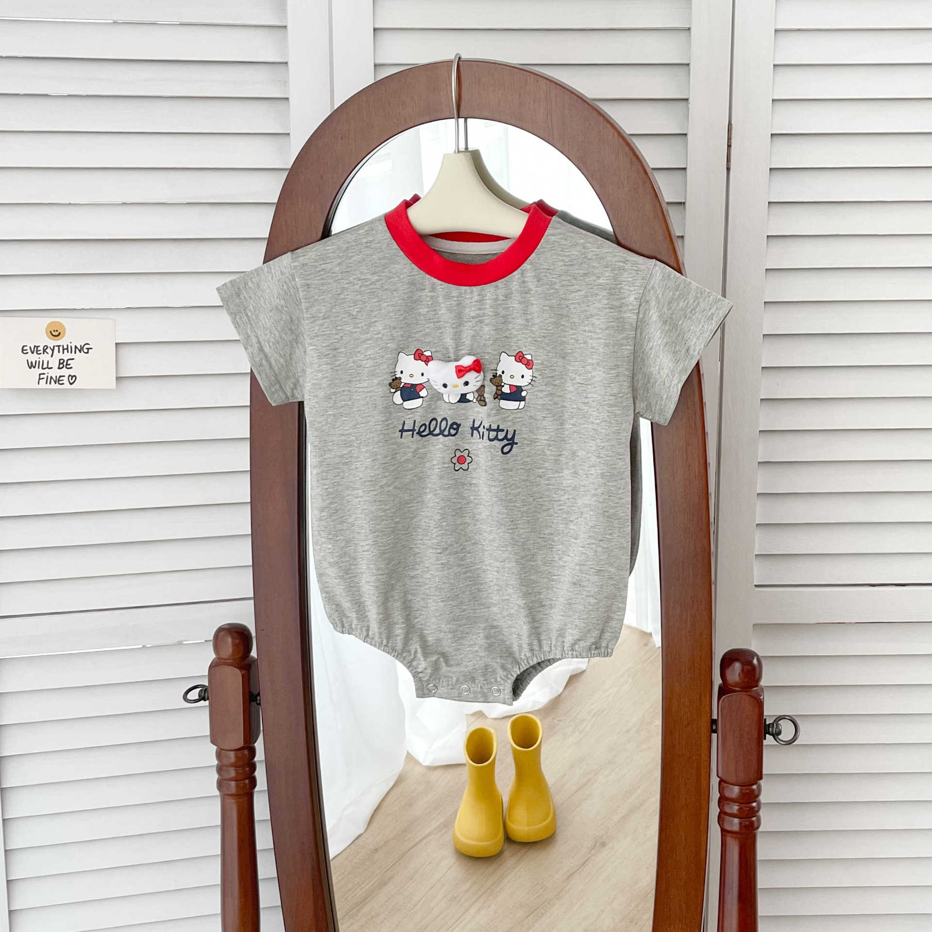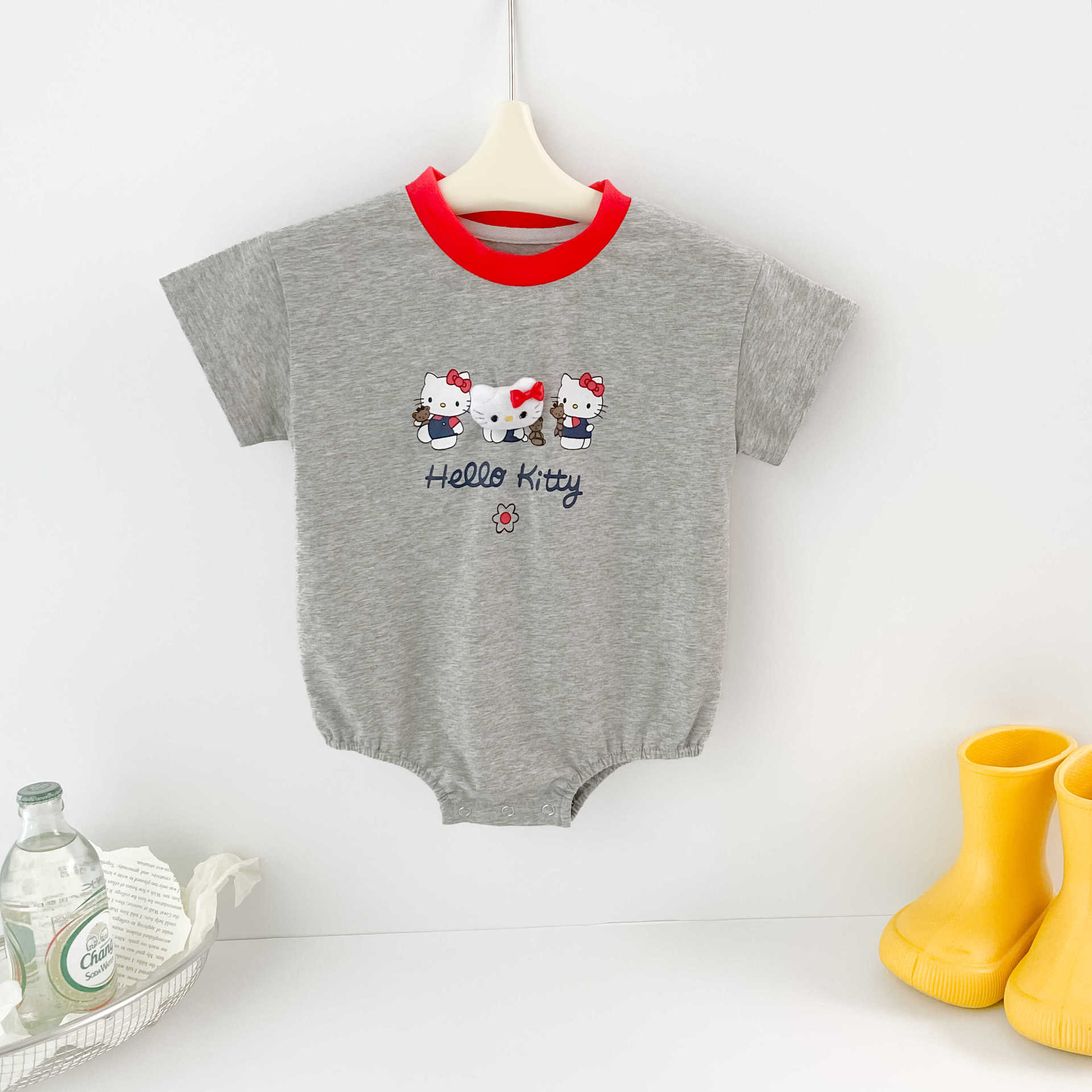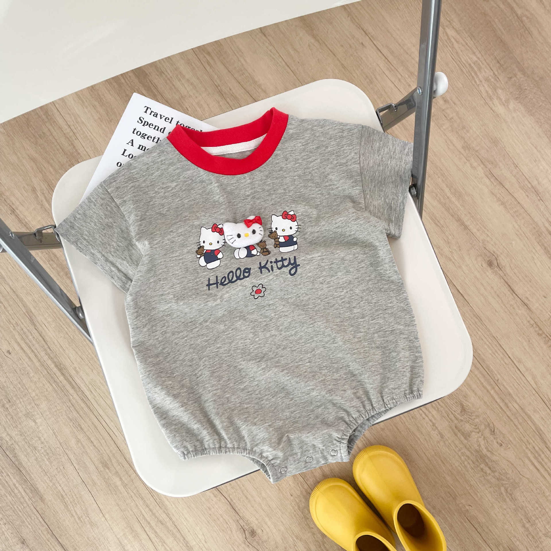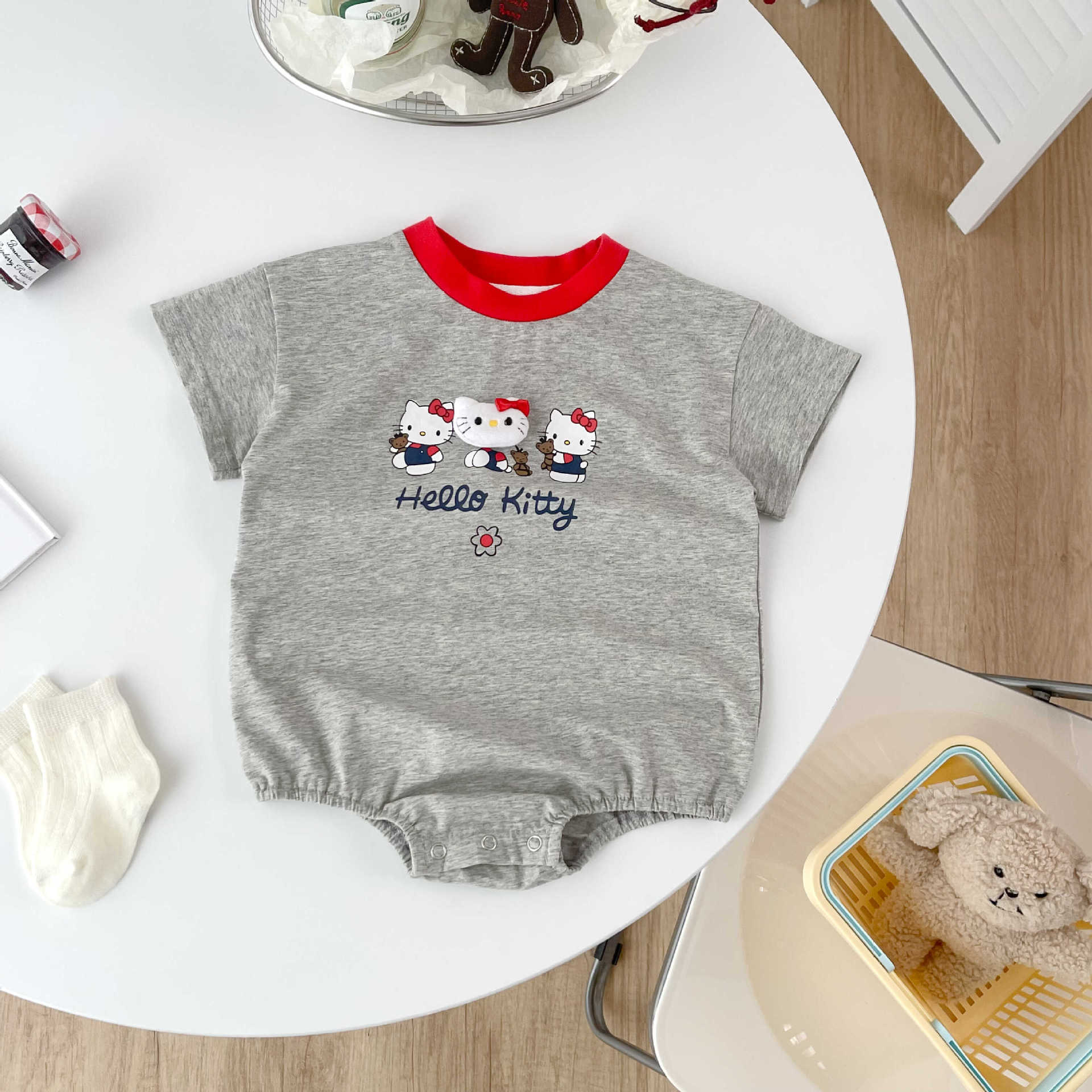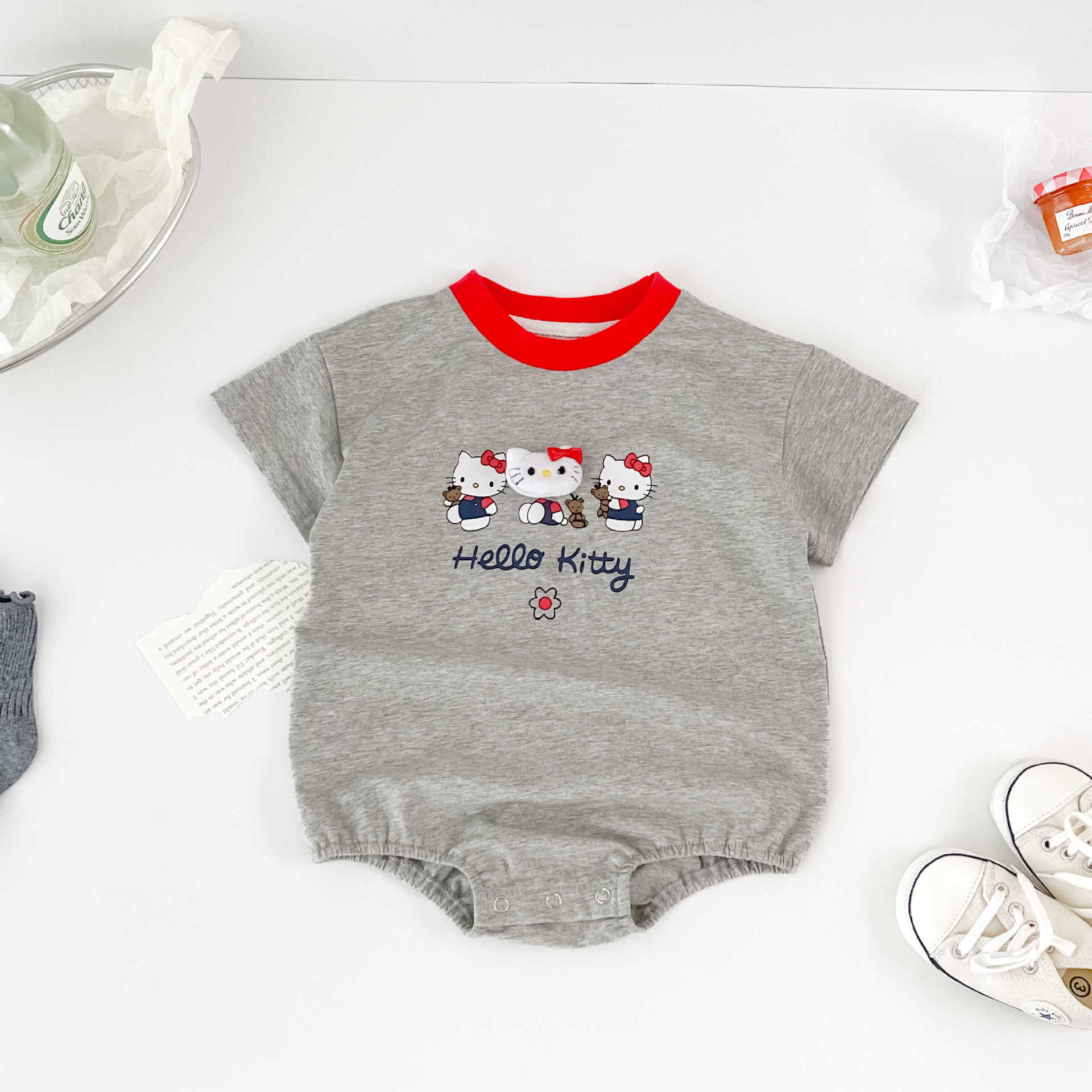 52805LS-夏季韓版卡通貓貓印花短袖包屁衣