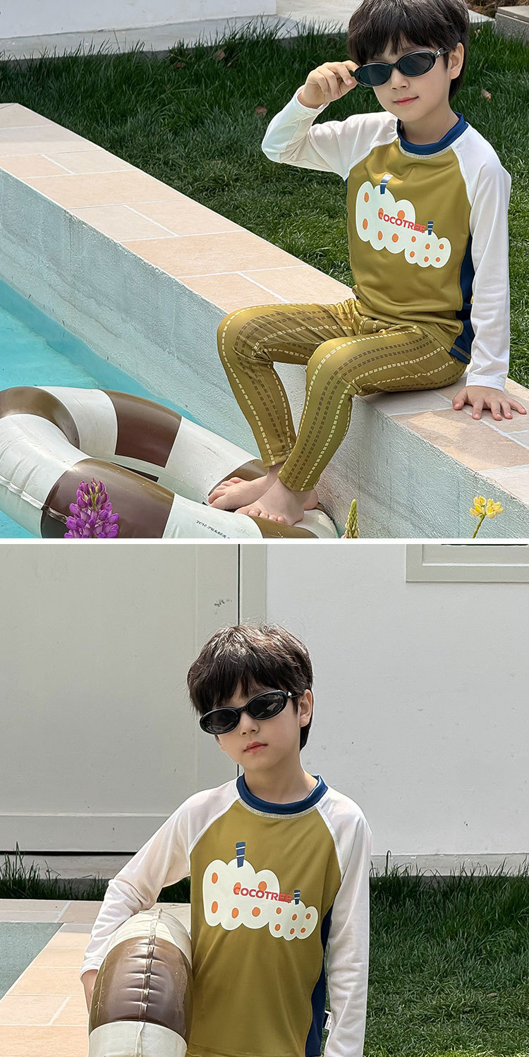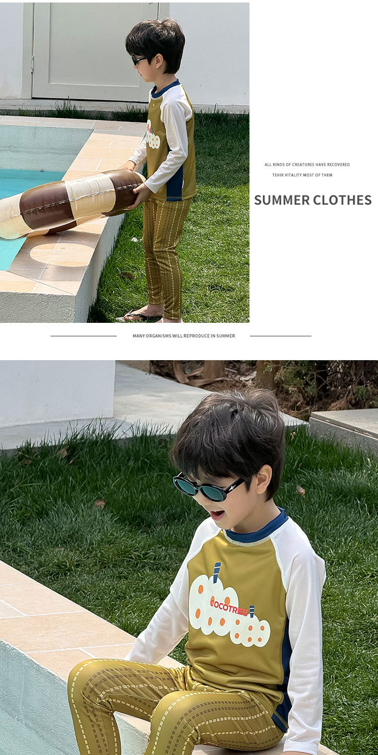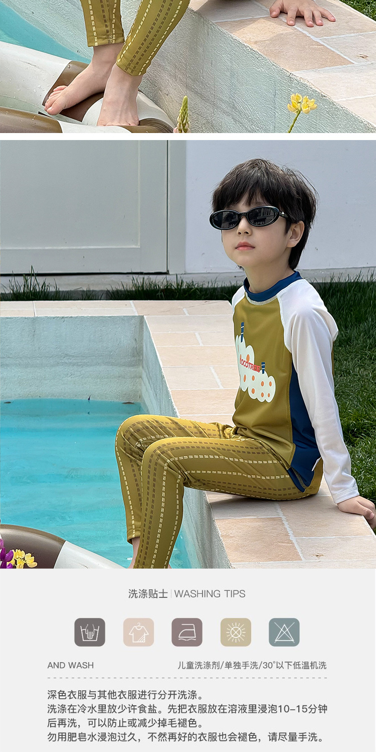 61801TG-兒童分體長袖泳衣+長褲防曬速乾套裝(送泳帽)