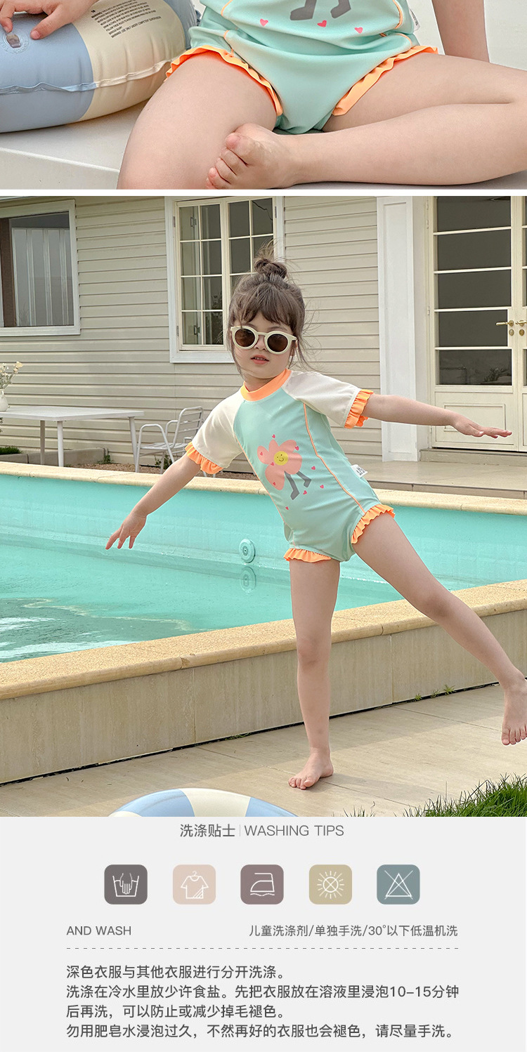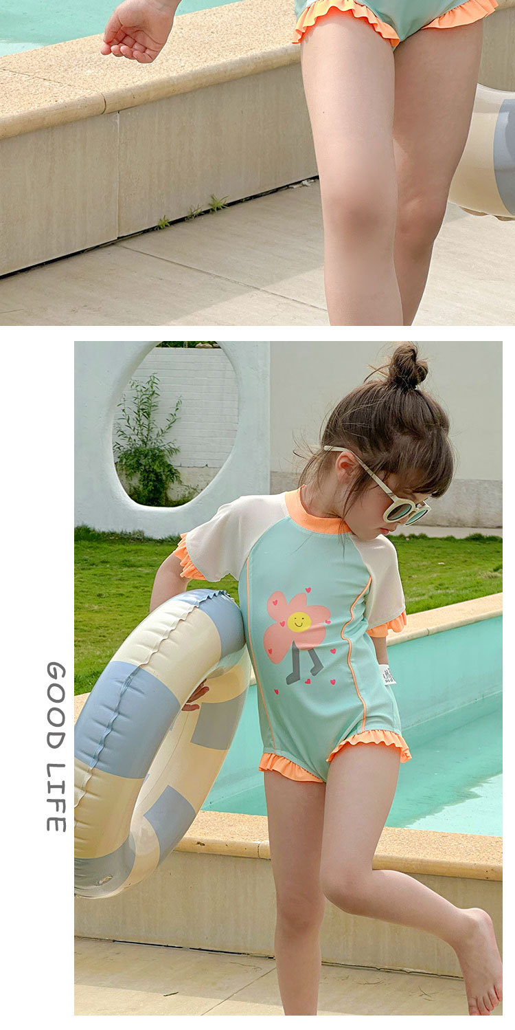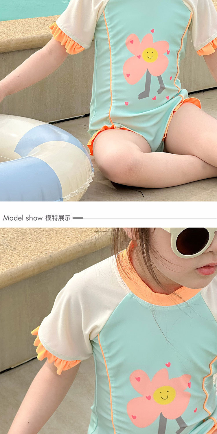 61802LS-夏季女孩連身短袖速乾泳衣(送泳帽)
