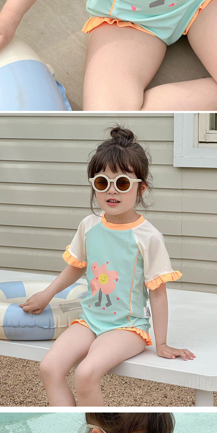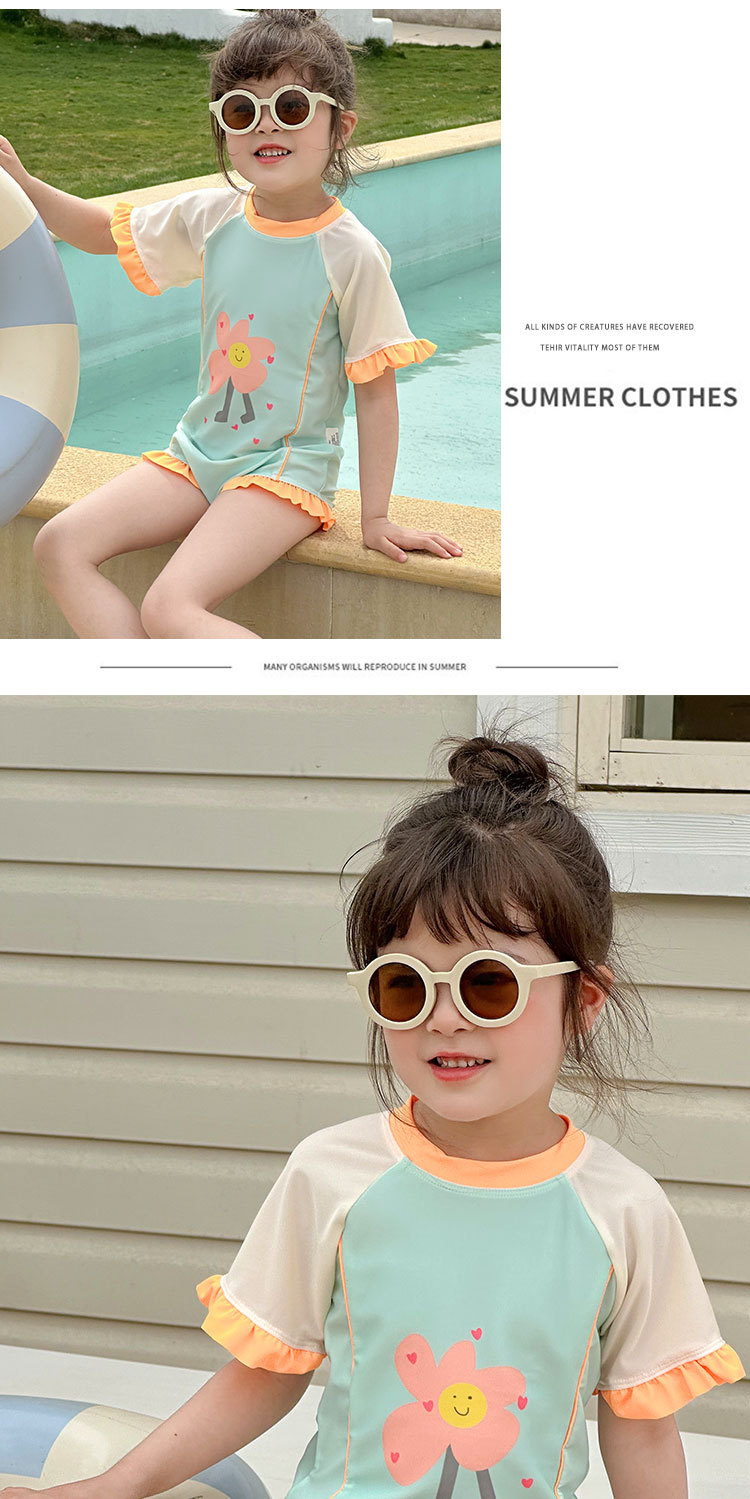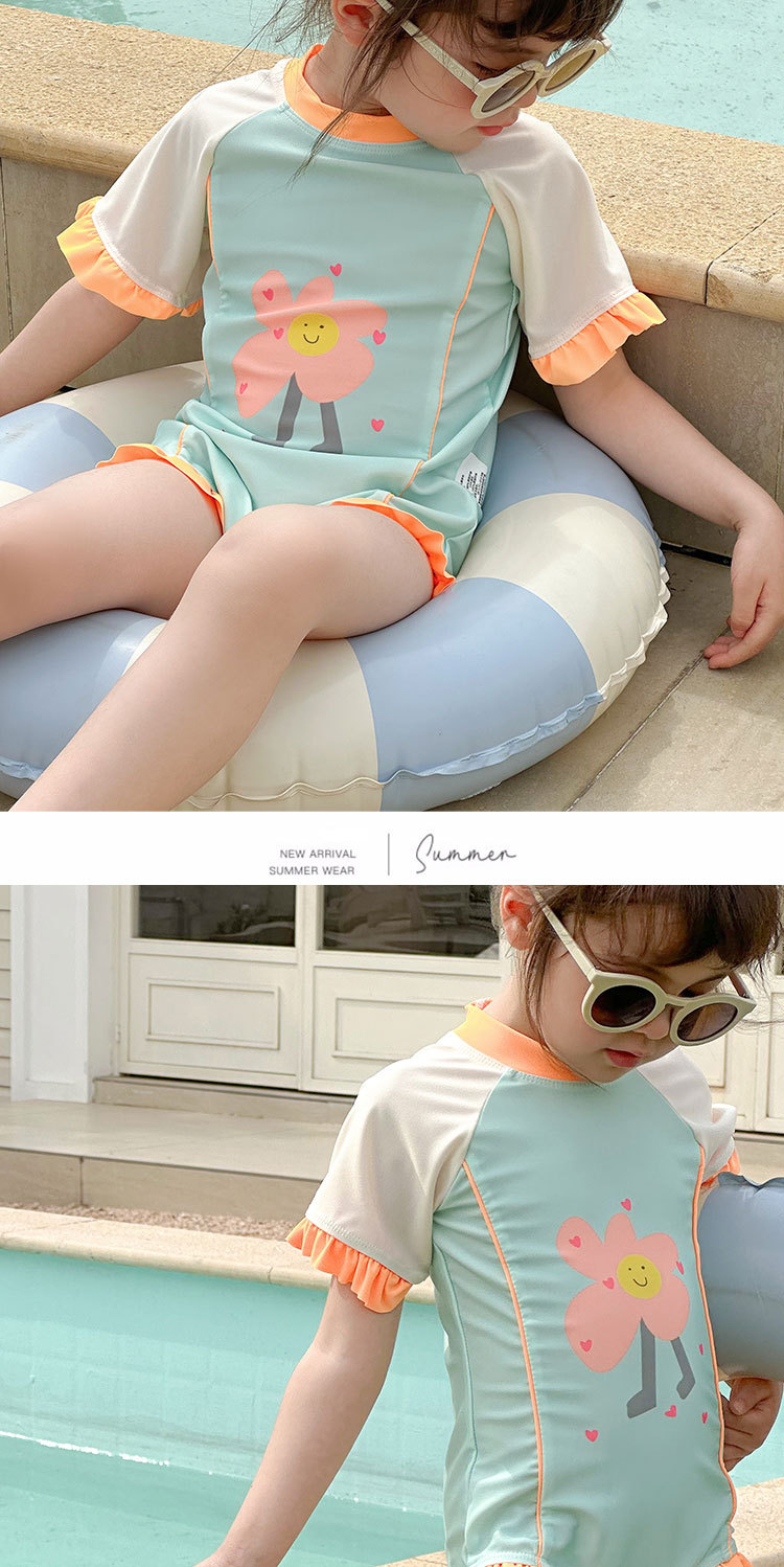 61802LS-夏季女孩連身短袖速乾泳衣(送泳帽)