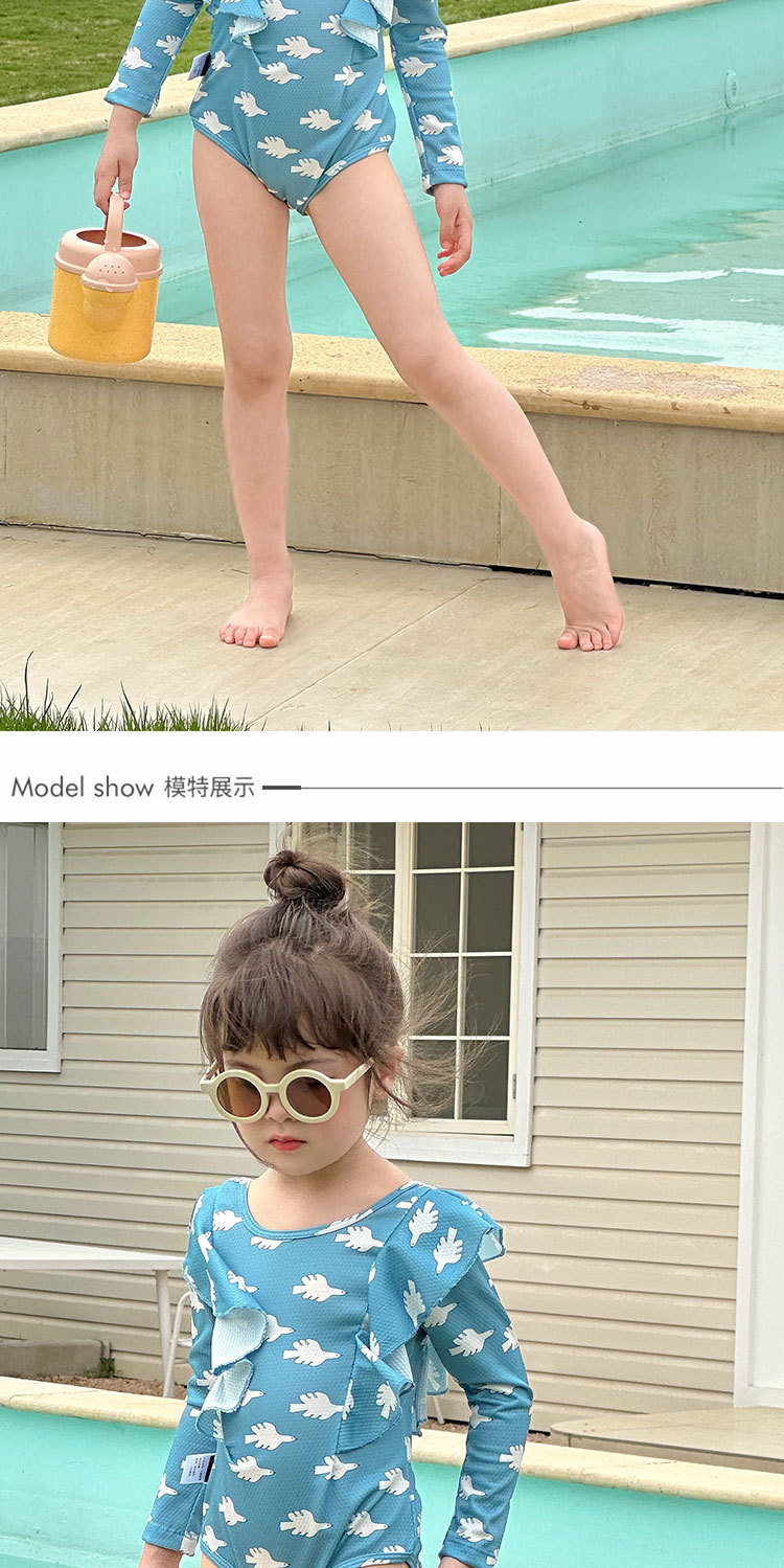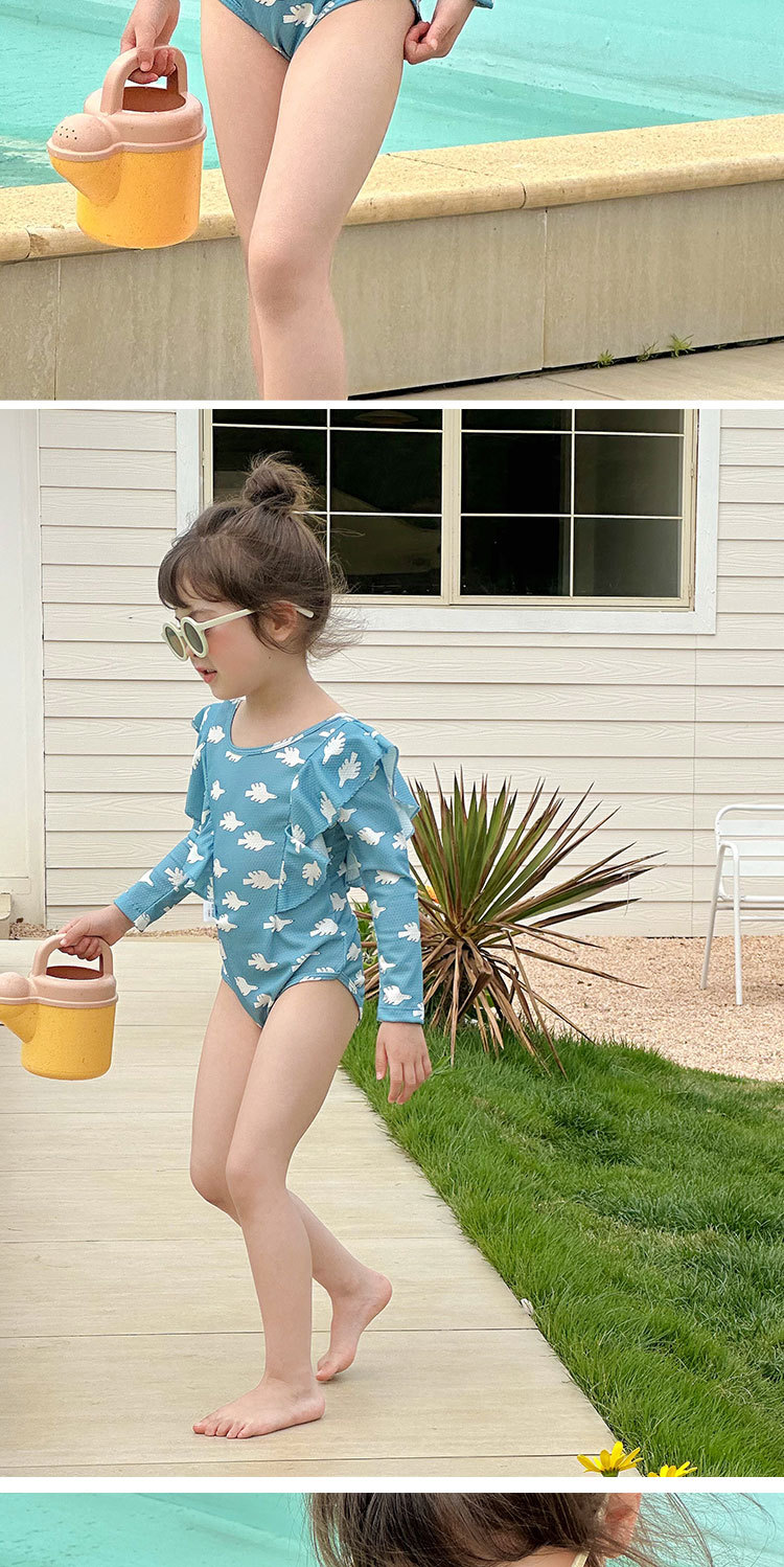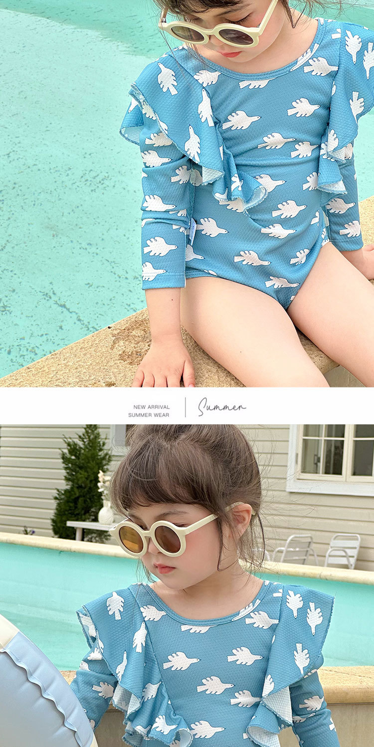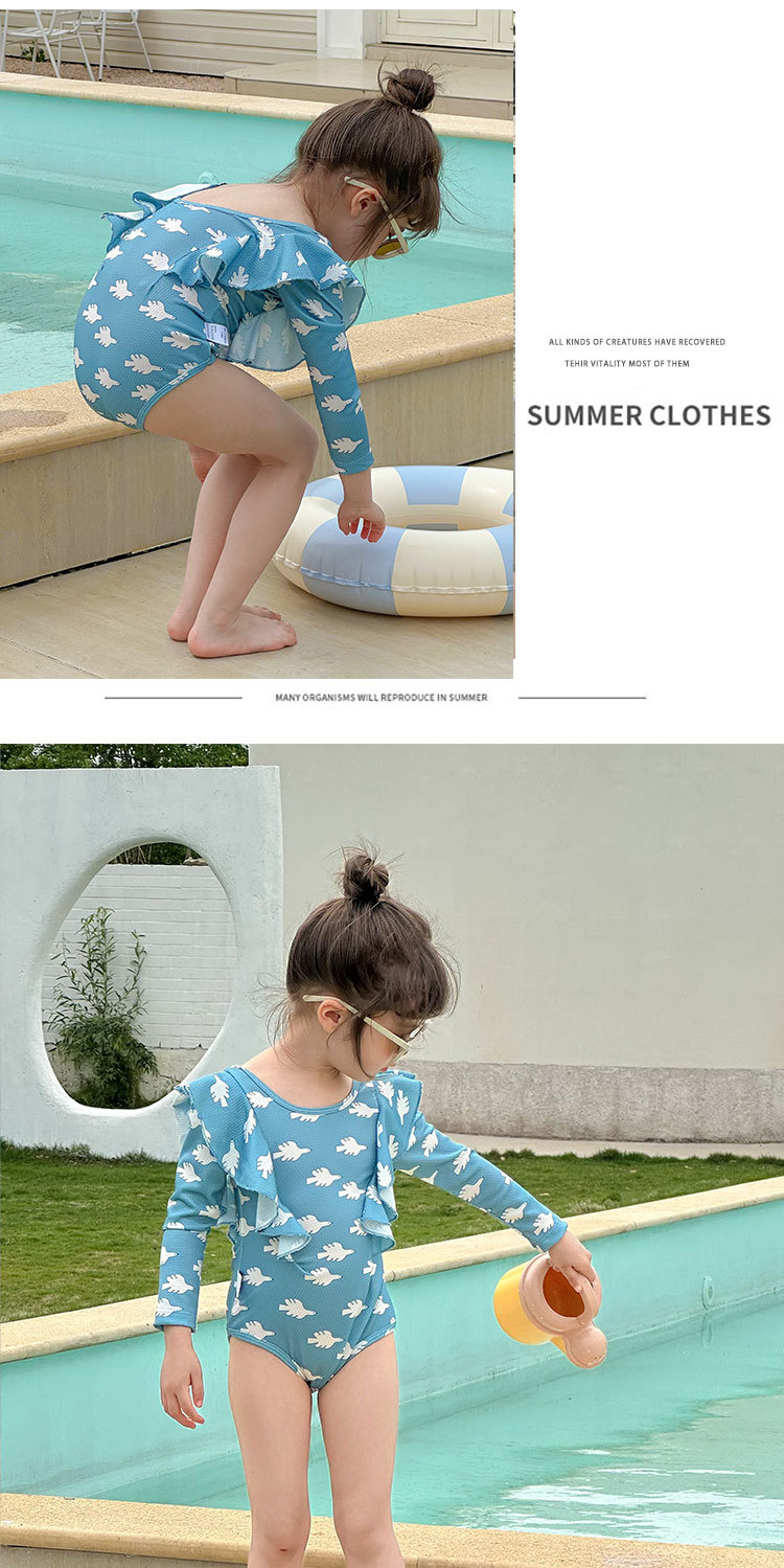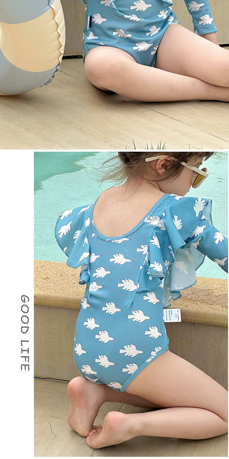 61803LS-夏季女童長袖防曬卡通白鴿泳裝(送泳帽)