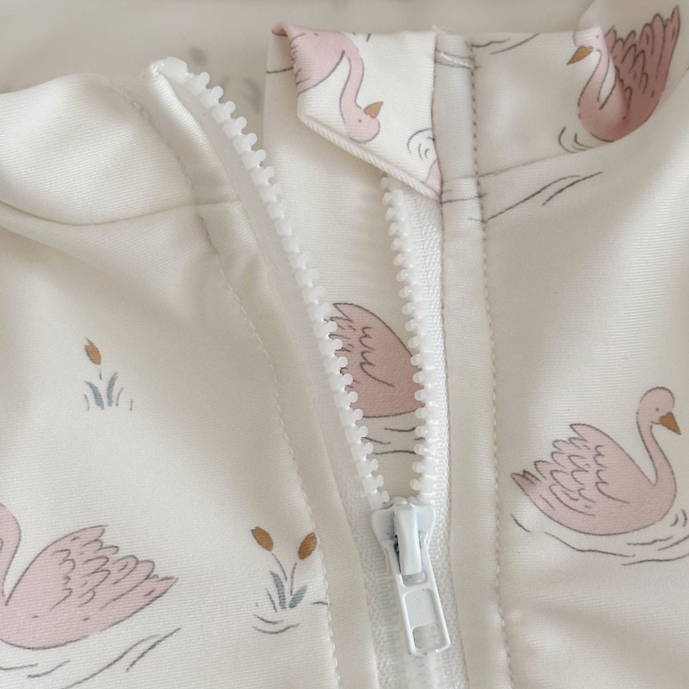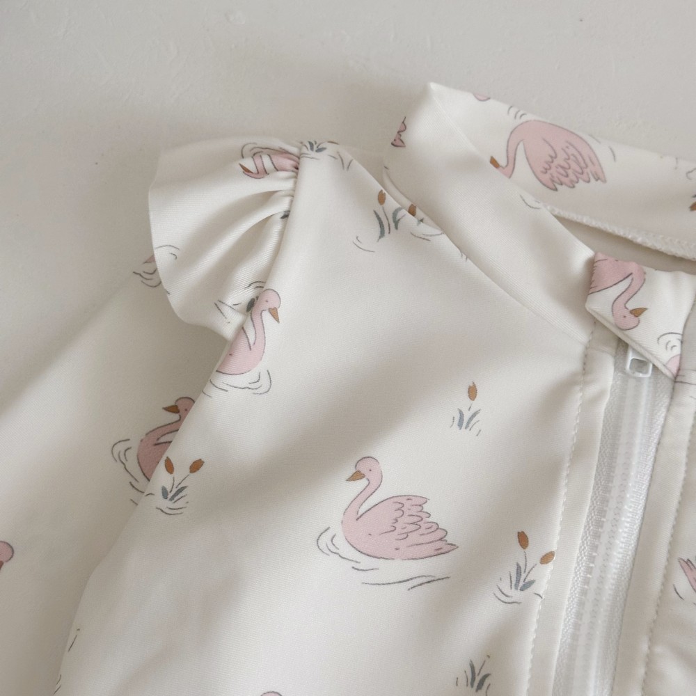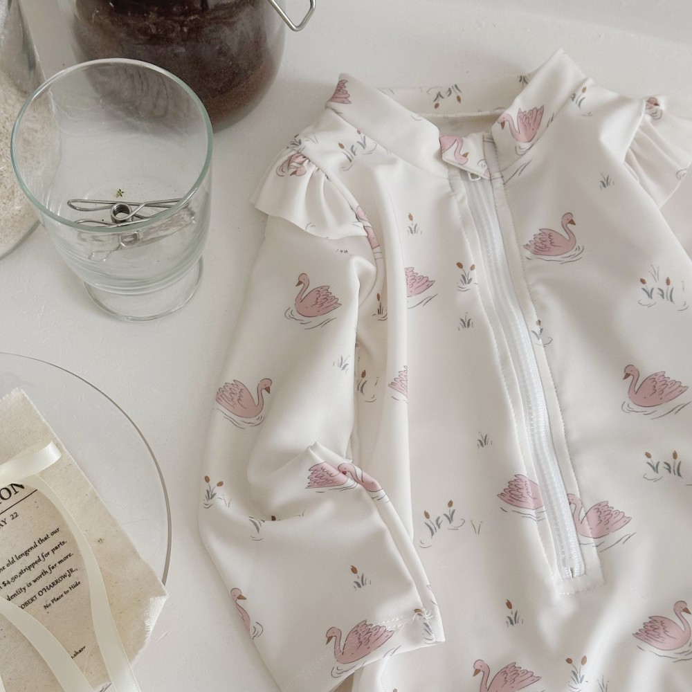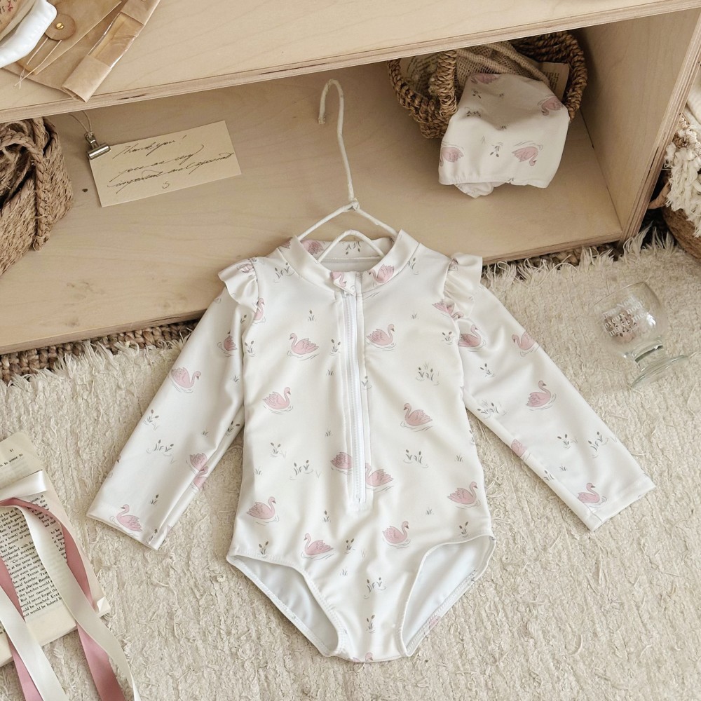 61807LS-夏季兒童長袖天鵝防曬連身游泳衣(送泳帽)