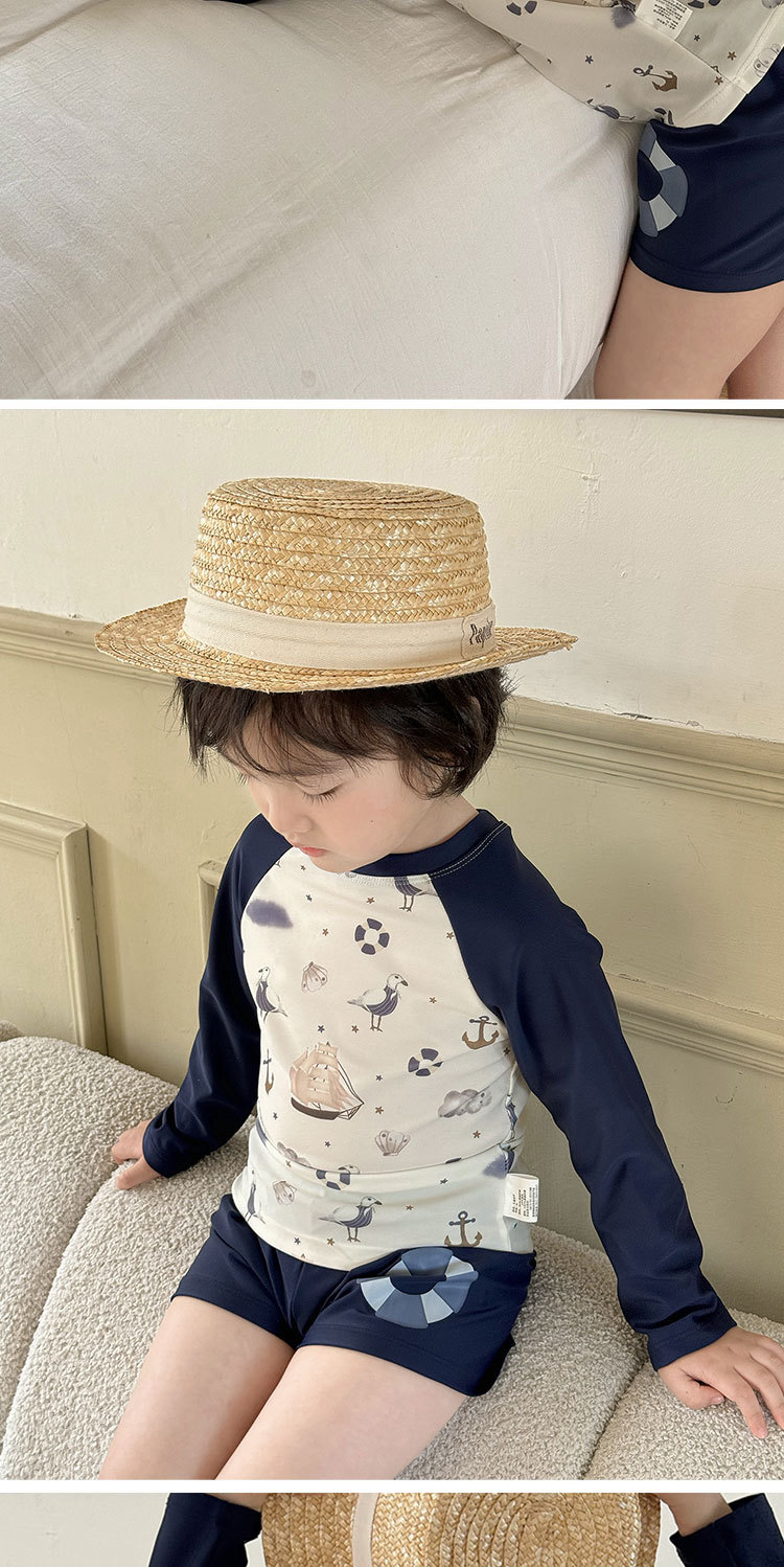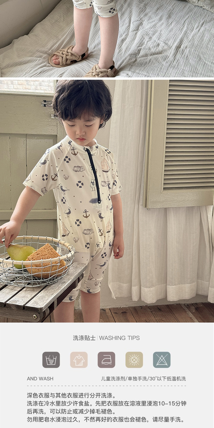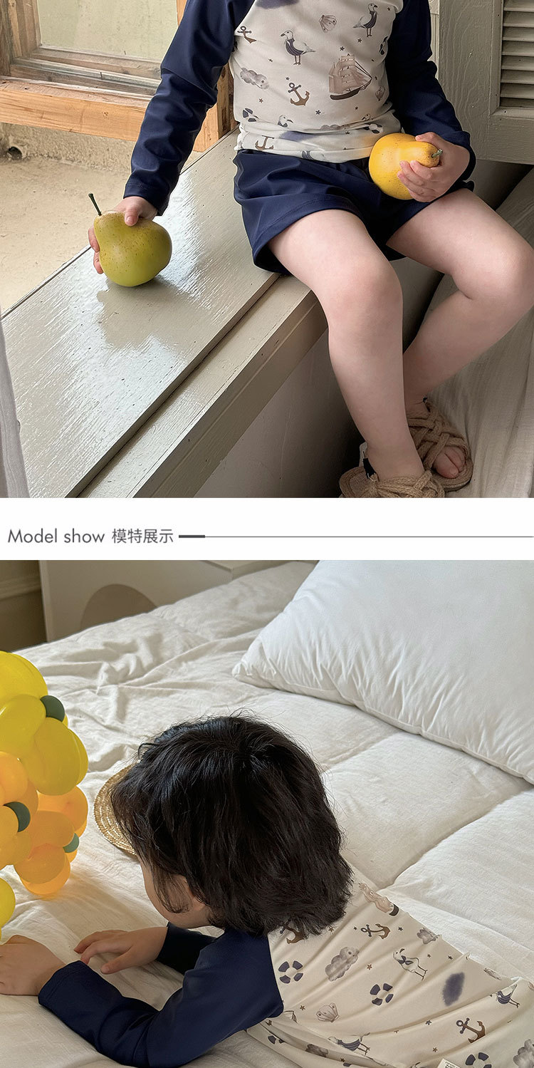 61808LS-夏季兒童韓版簡約休閒分體泳衣套裝(送泳帽)