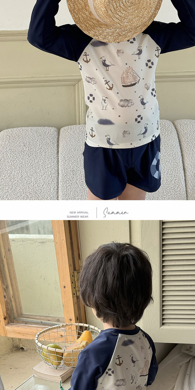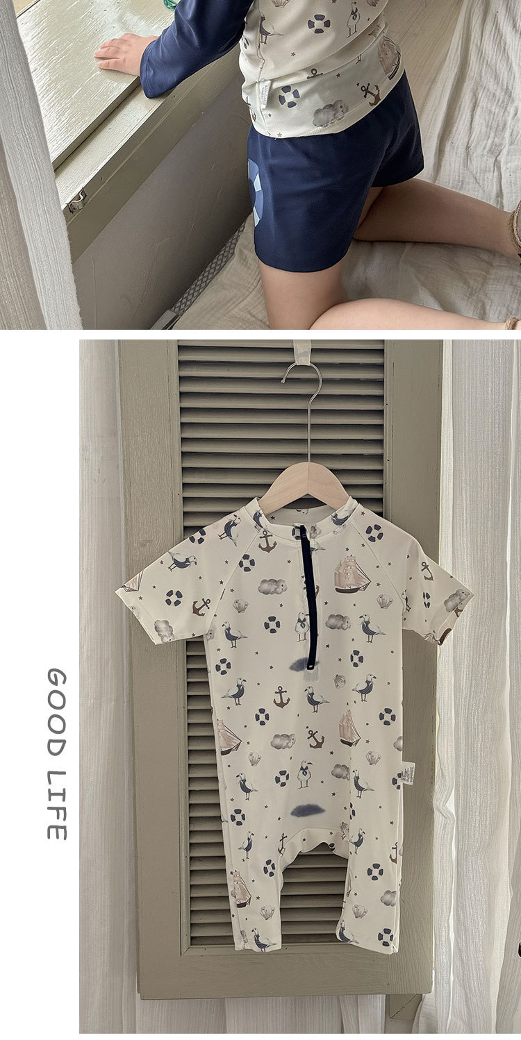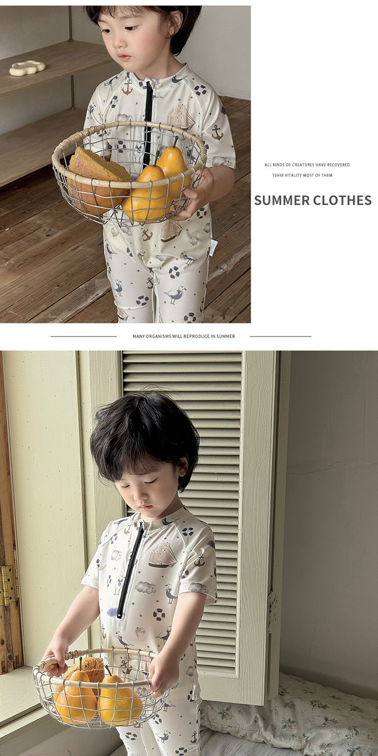 61808LS-夏季兒童韓版簡約休閒分體泳衣套裝(送泳帽)