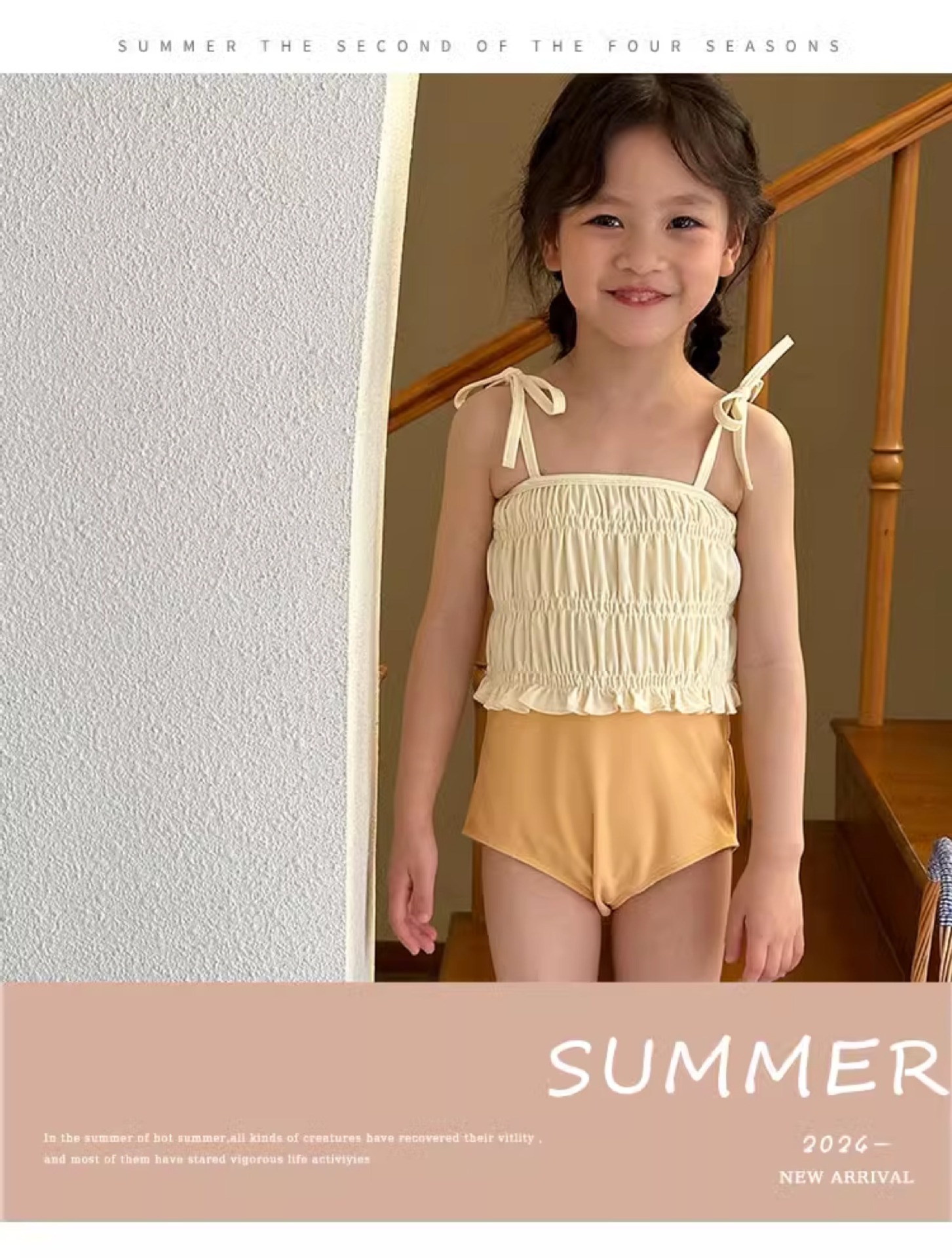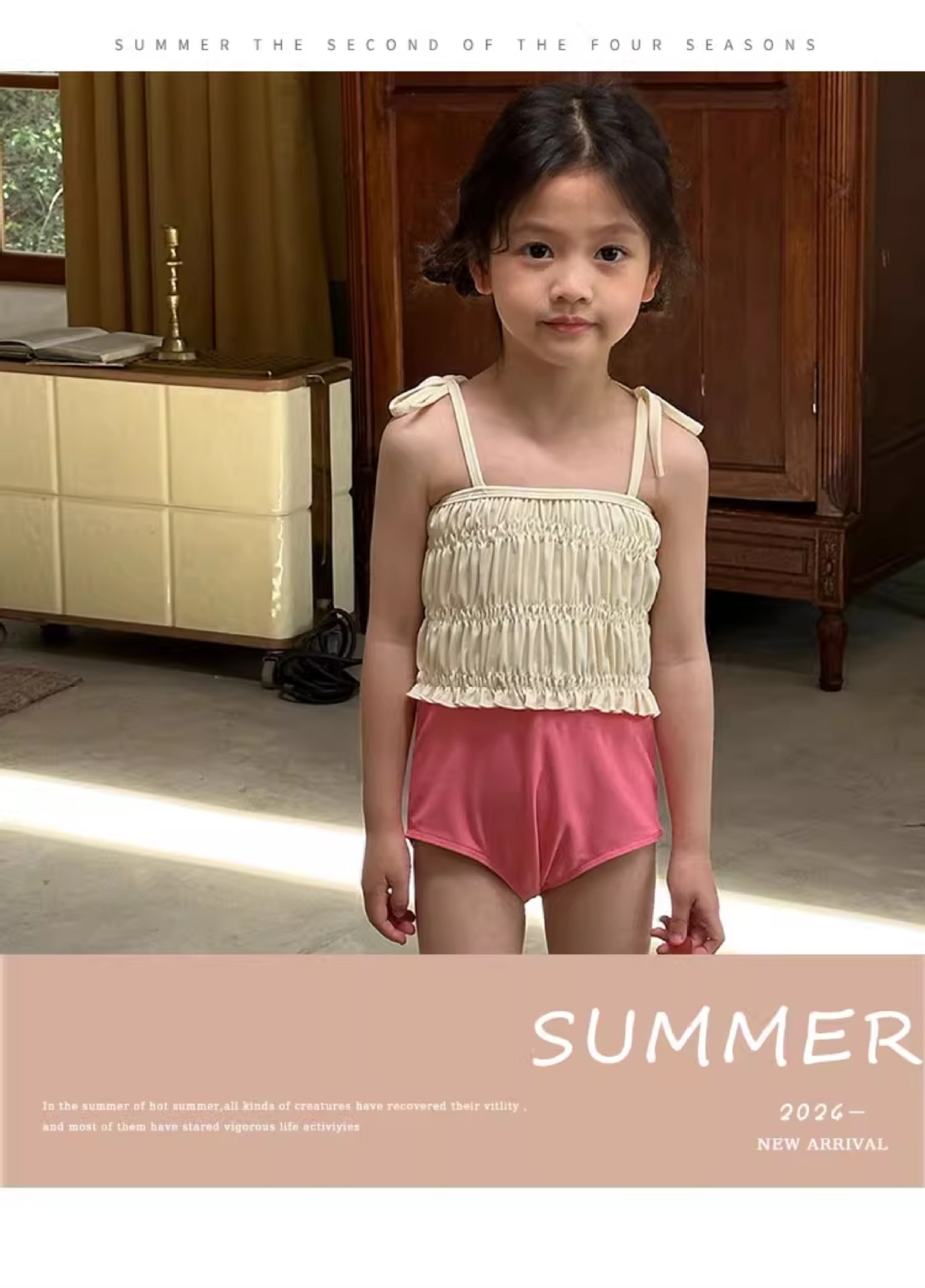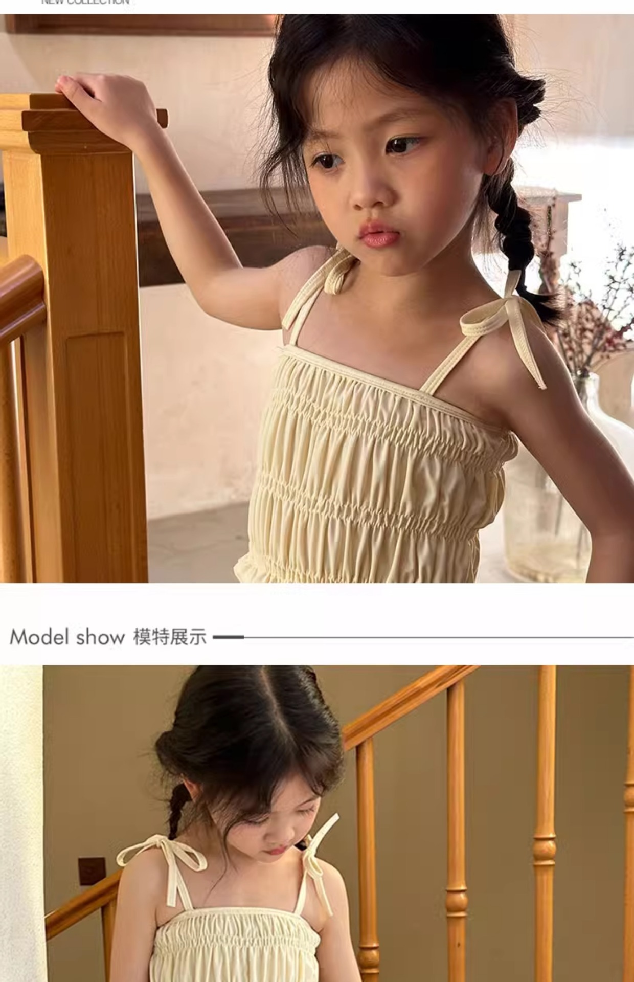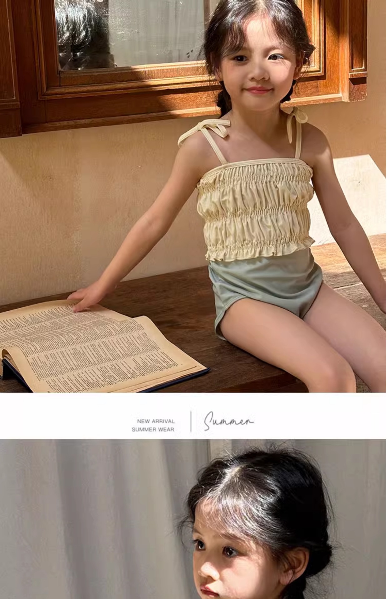 61811TG-夏季復古北歐風中小童簡約吊帶泳裝(送泳帽)