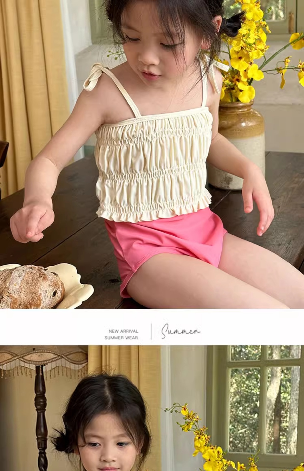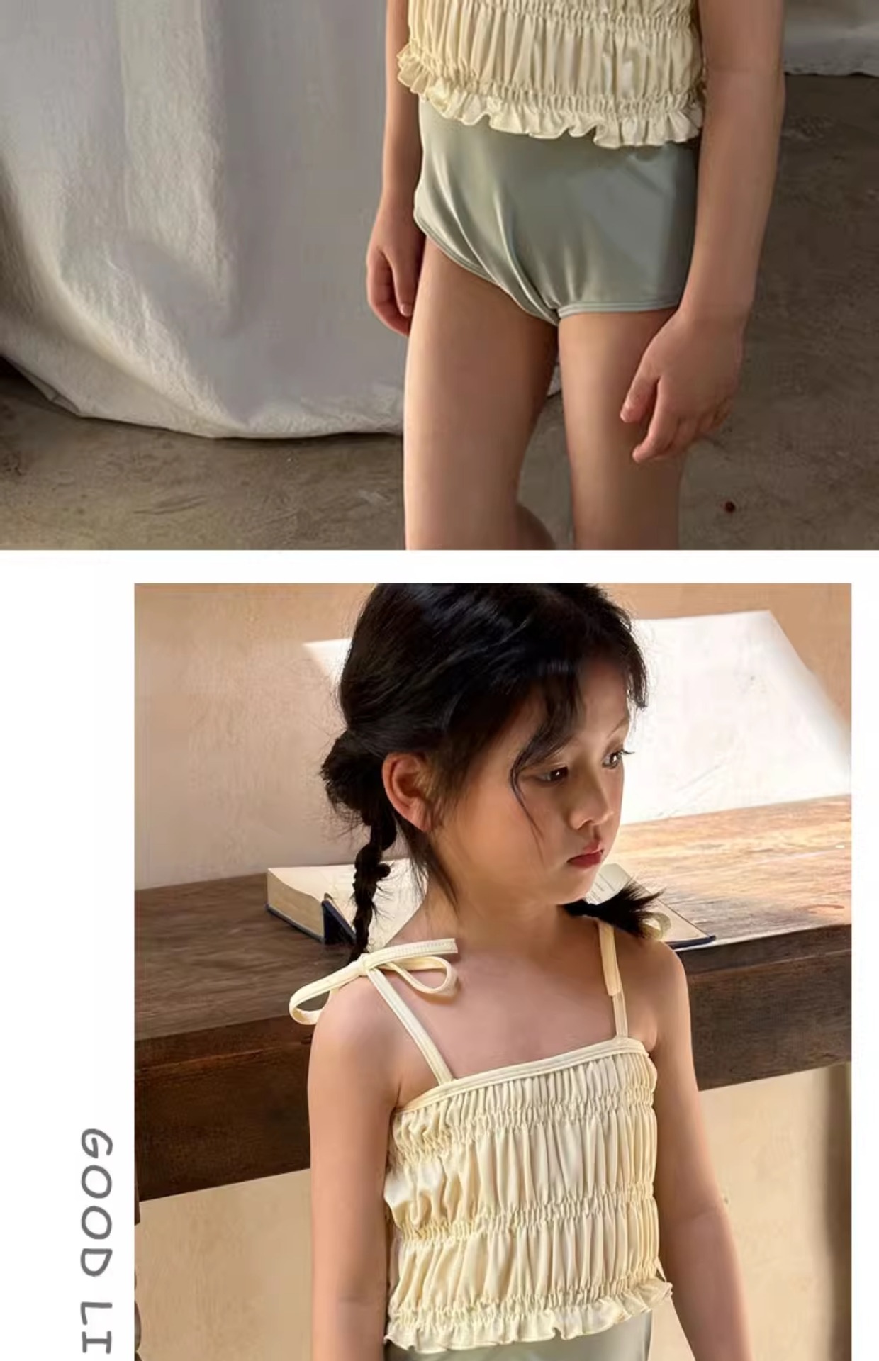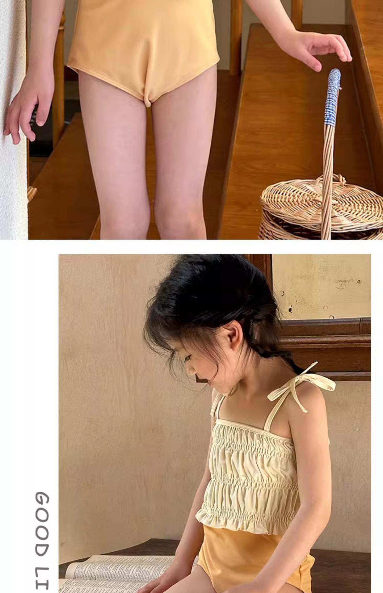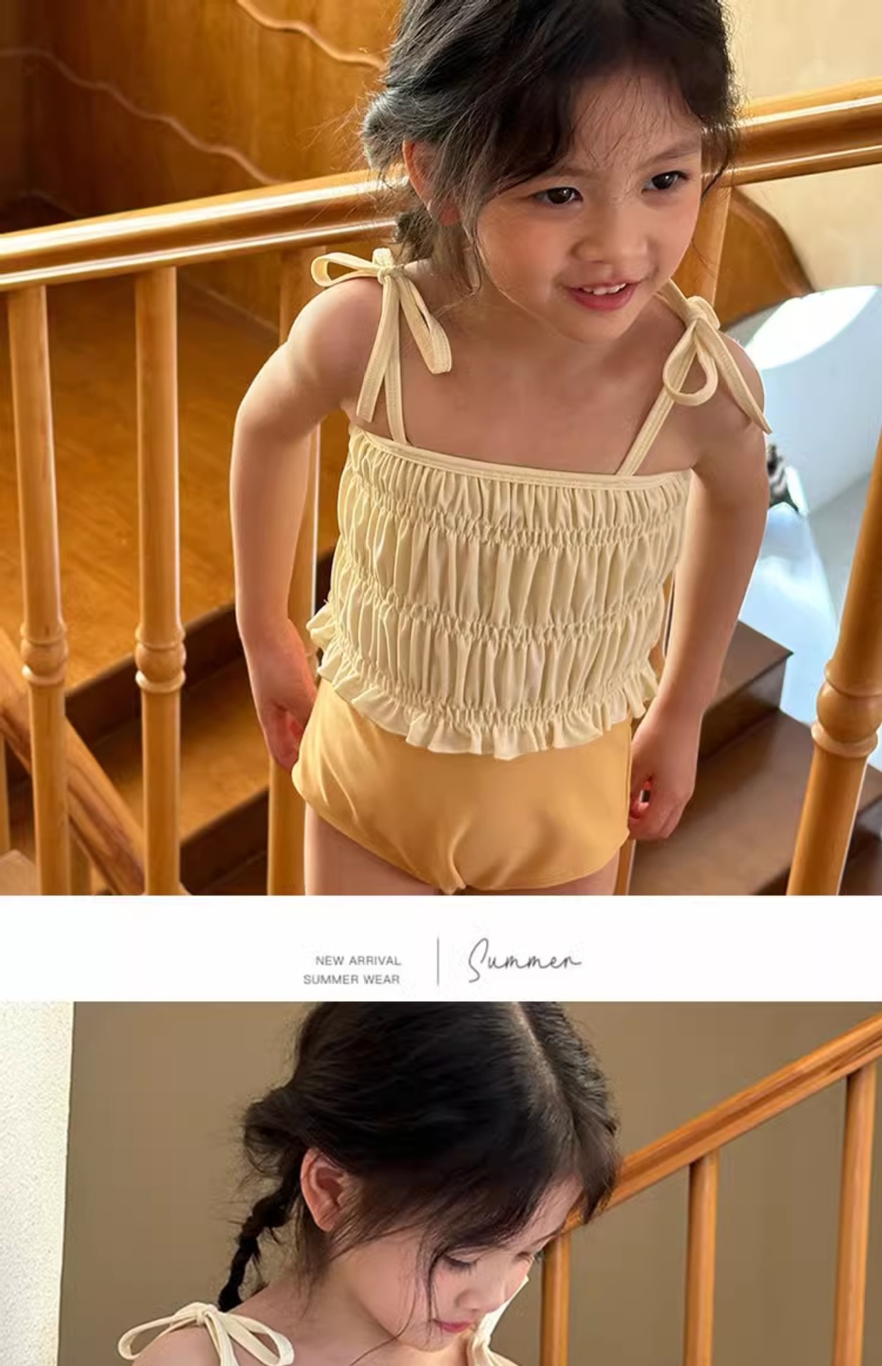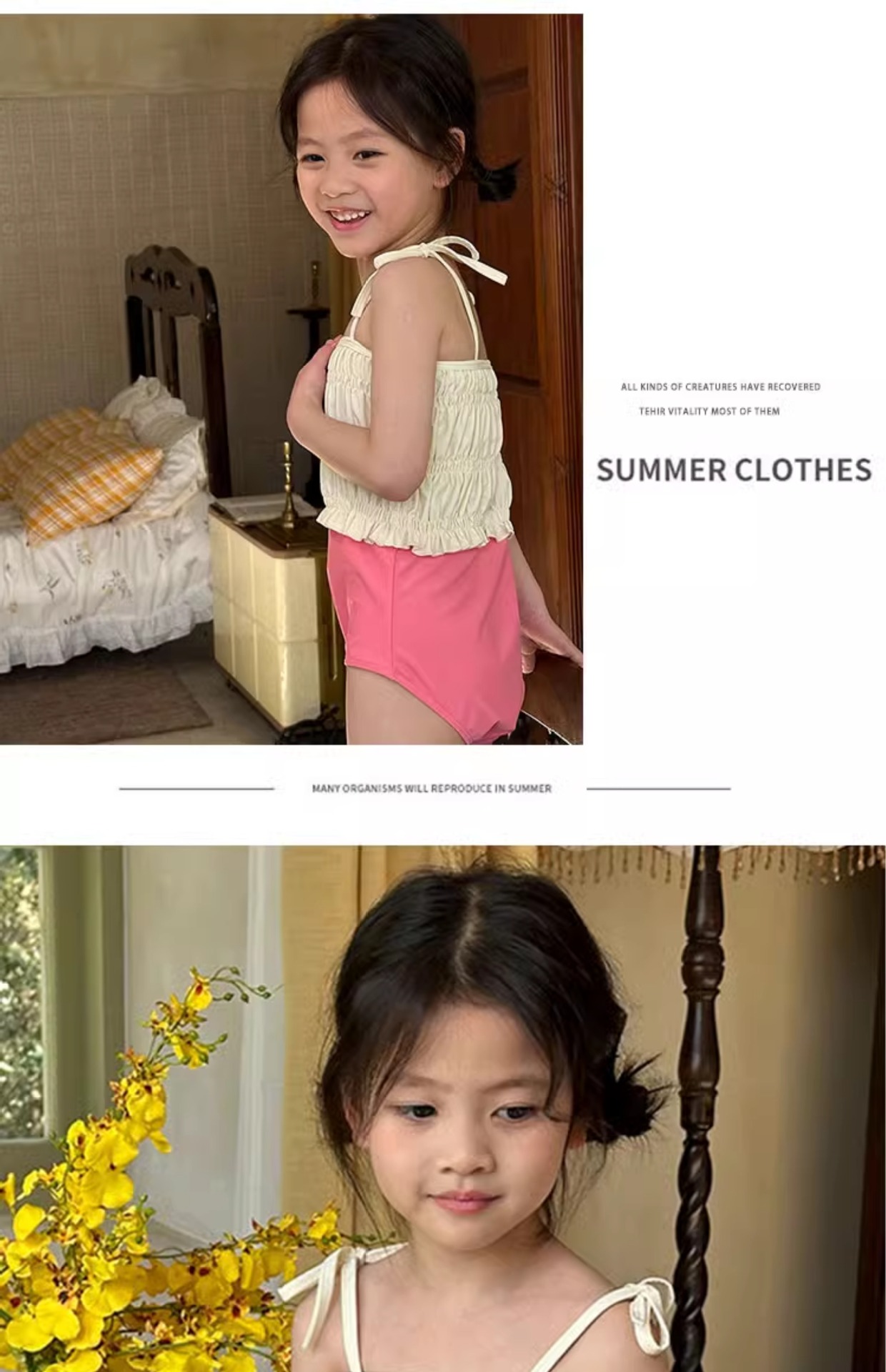 61811TG-夏季復古北歐風中小童簡約吊帶泳裝(送泳帽)