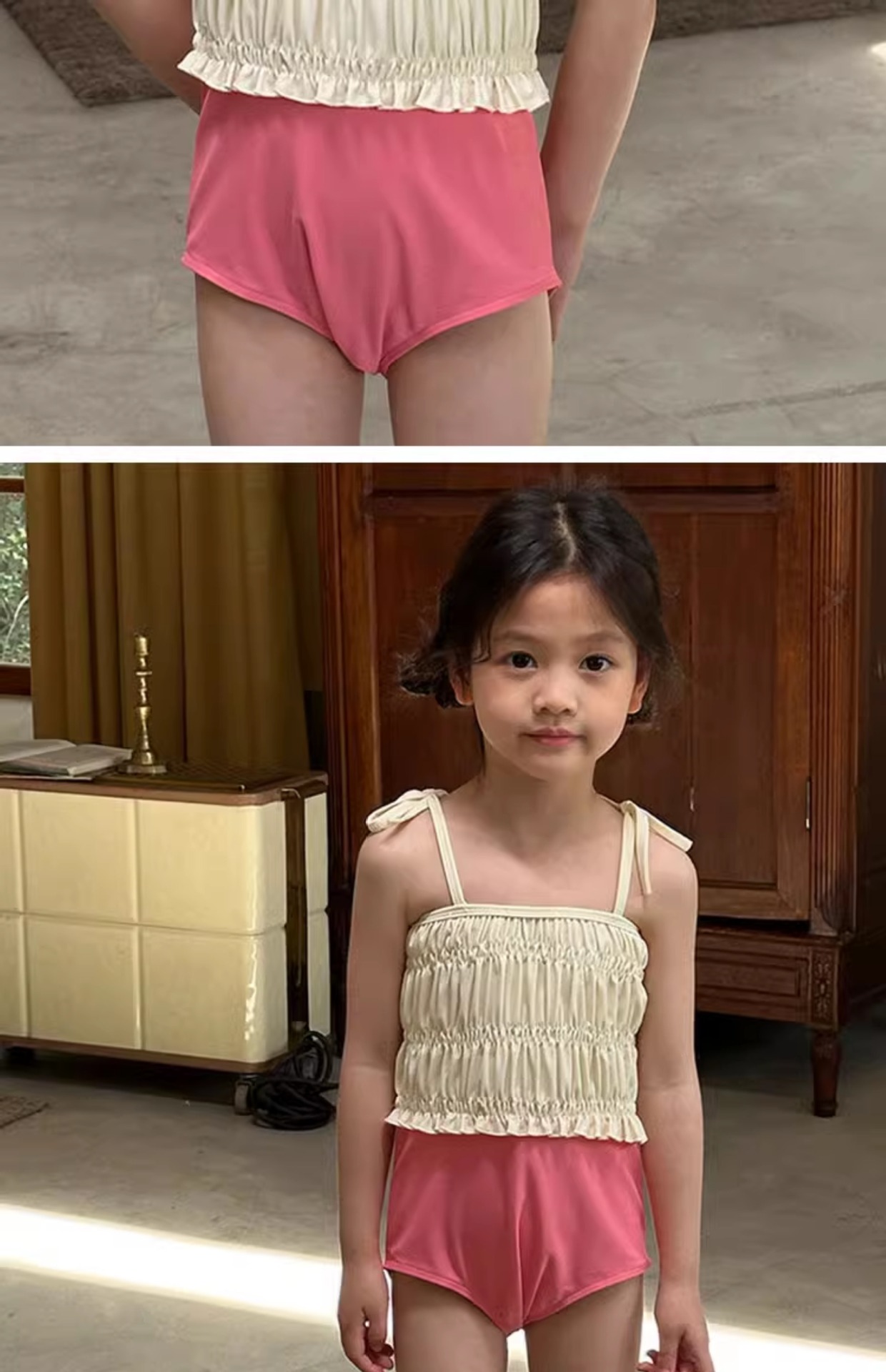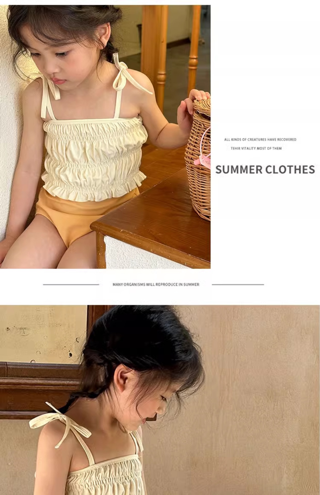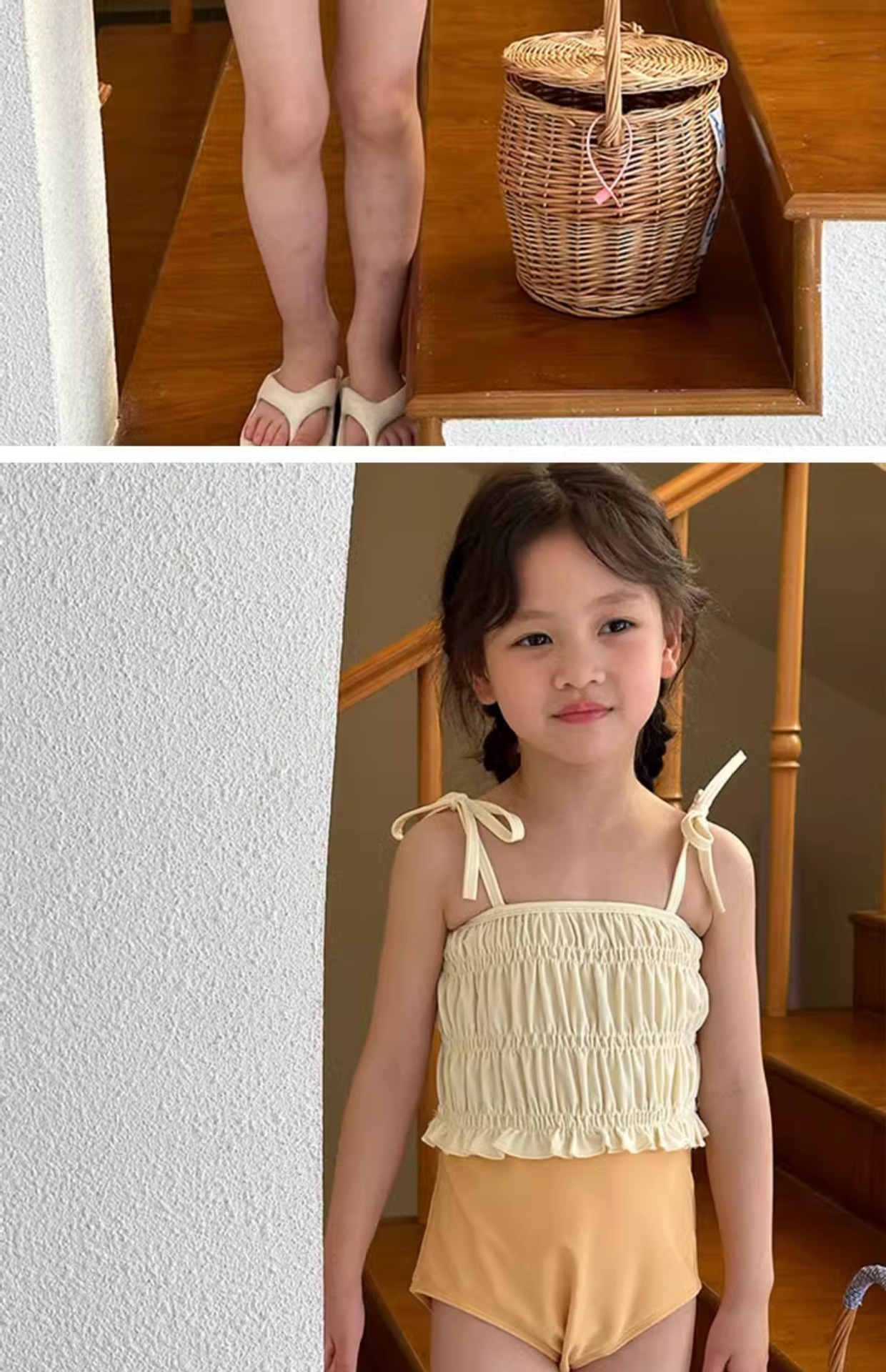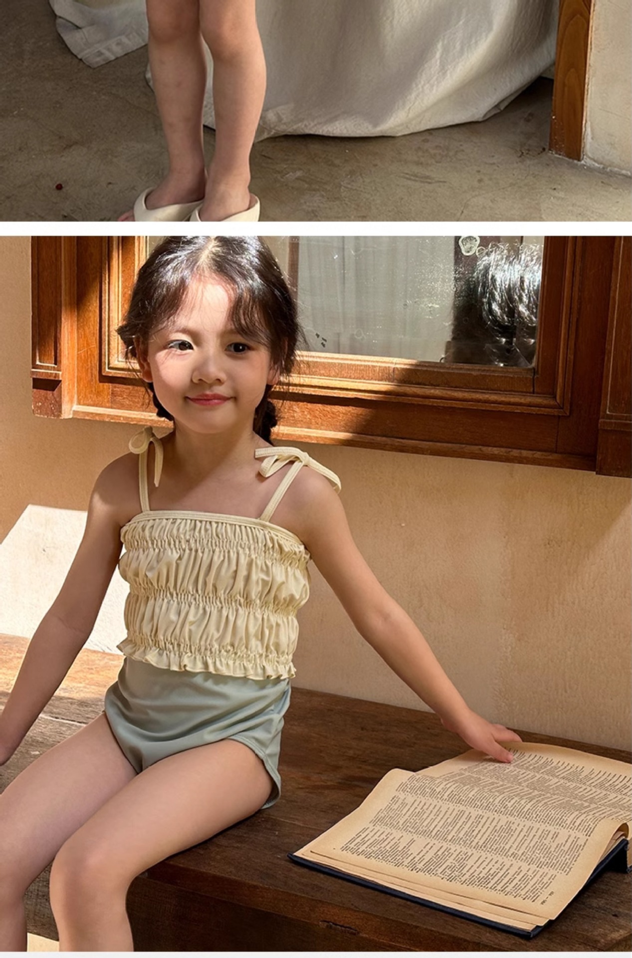 61811TG-夏季復古北歐風中小童簡約吊帶泳裝(送泳帽)