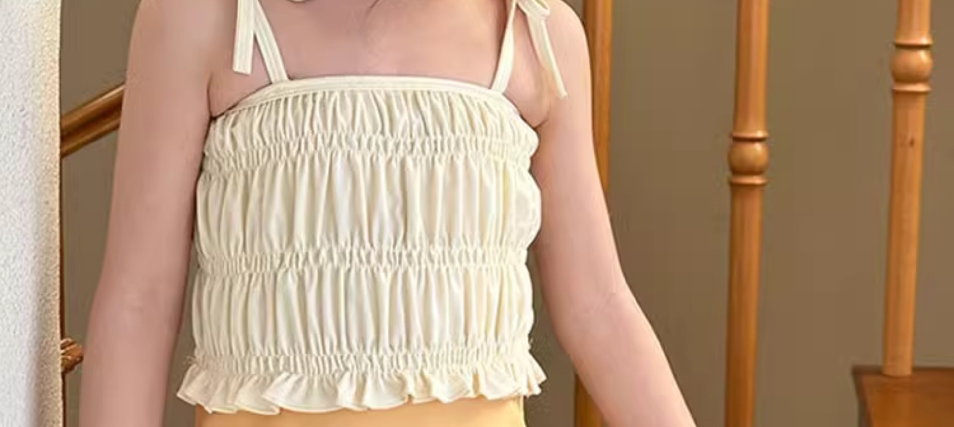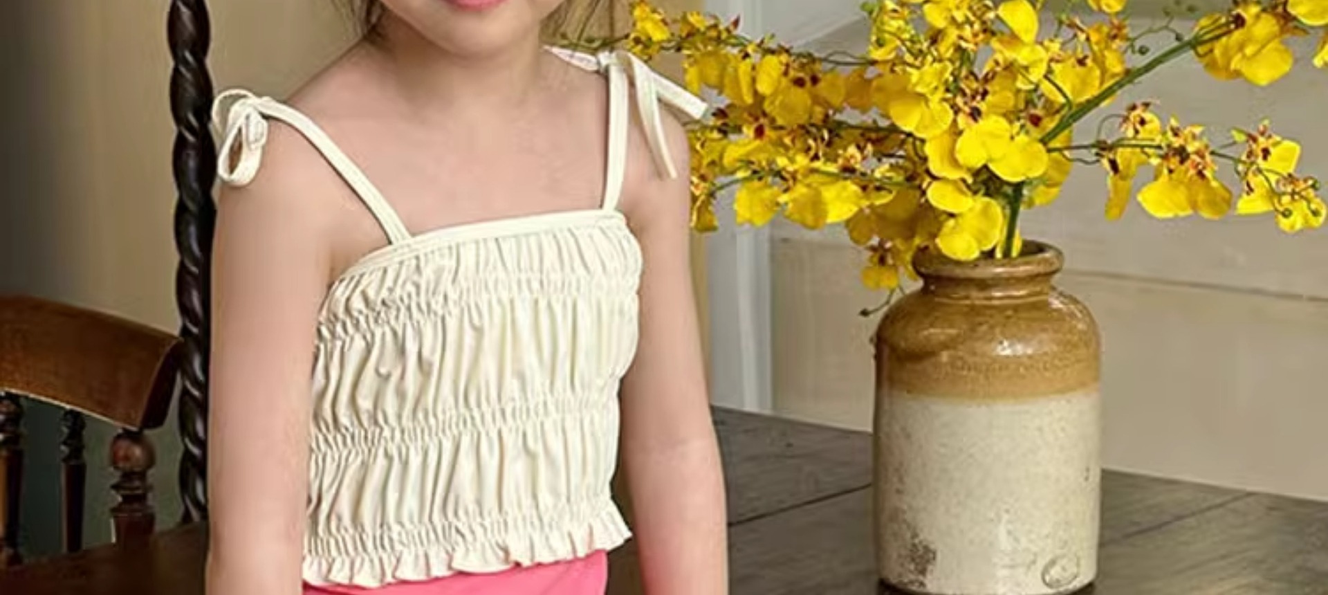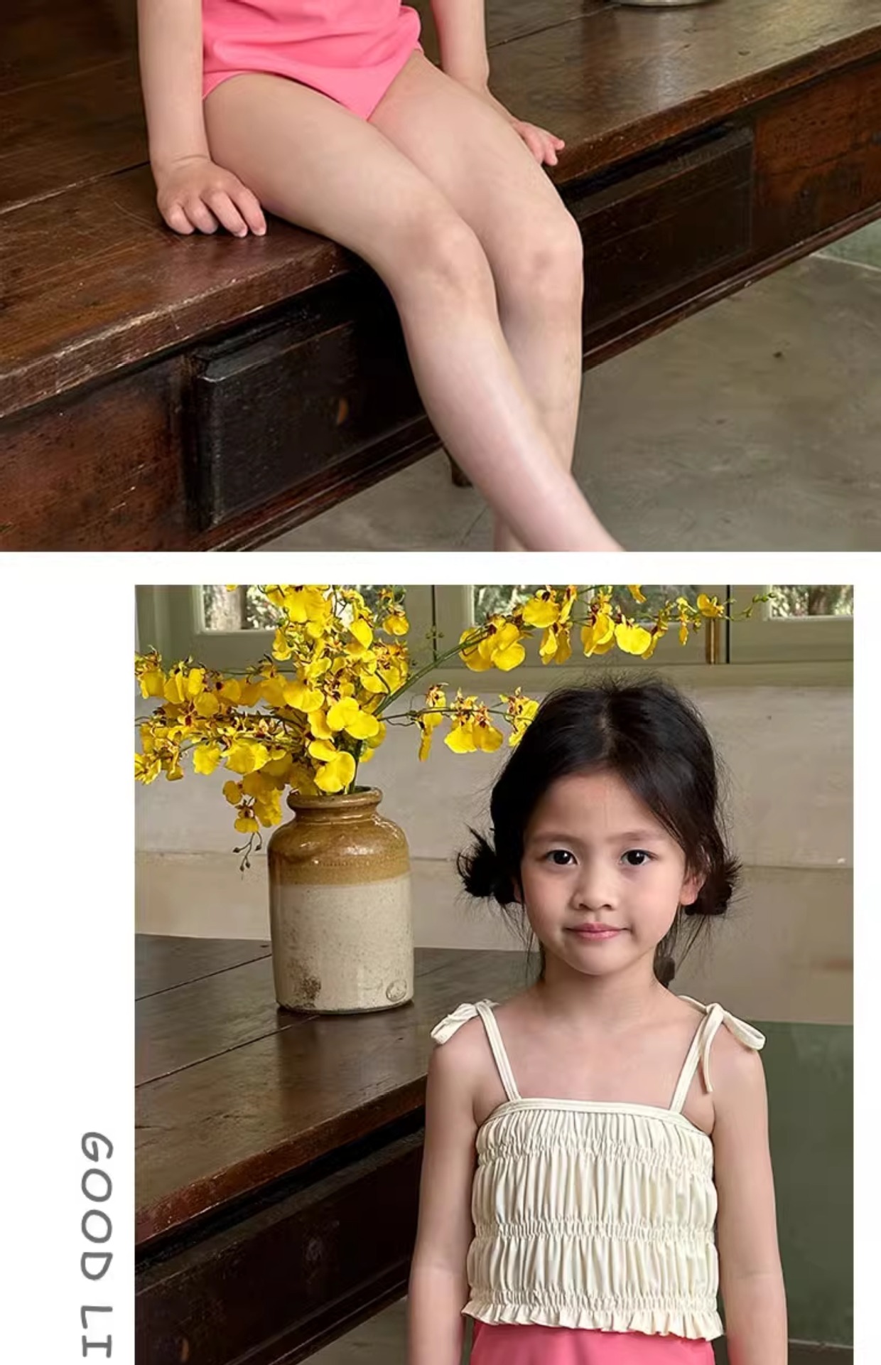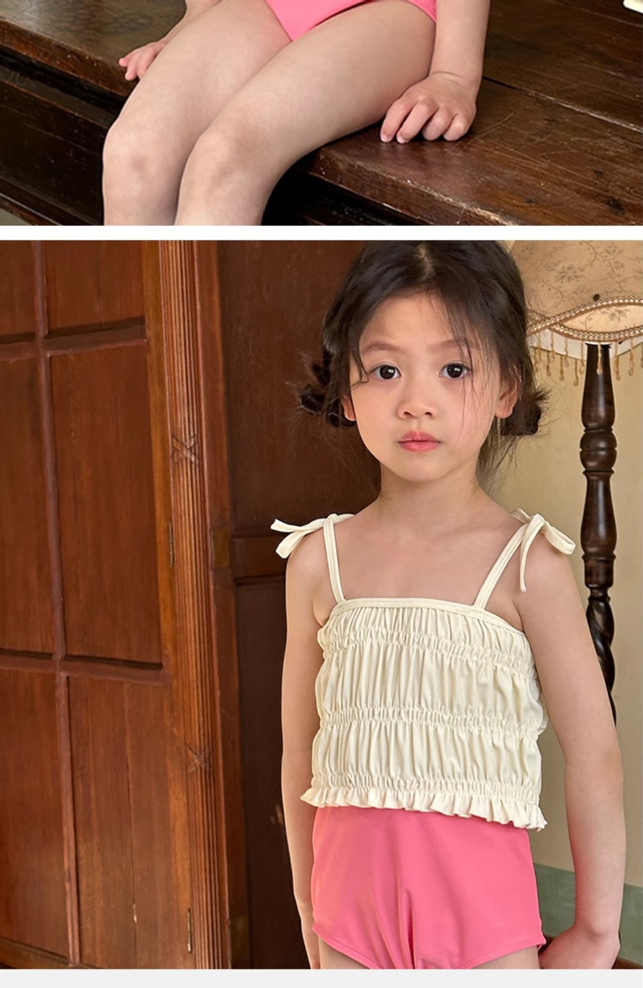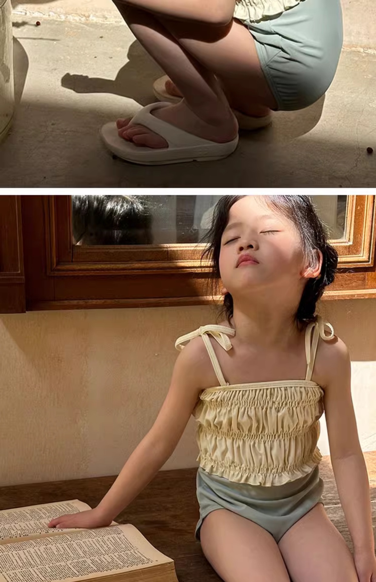 61811TG-夏季復古北歐風中小童簡約吊帶泳裝(送泳帽)