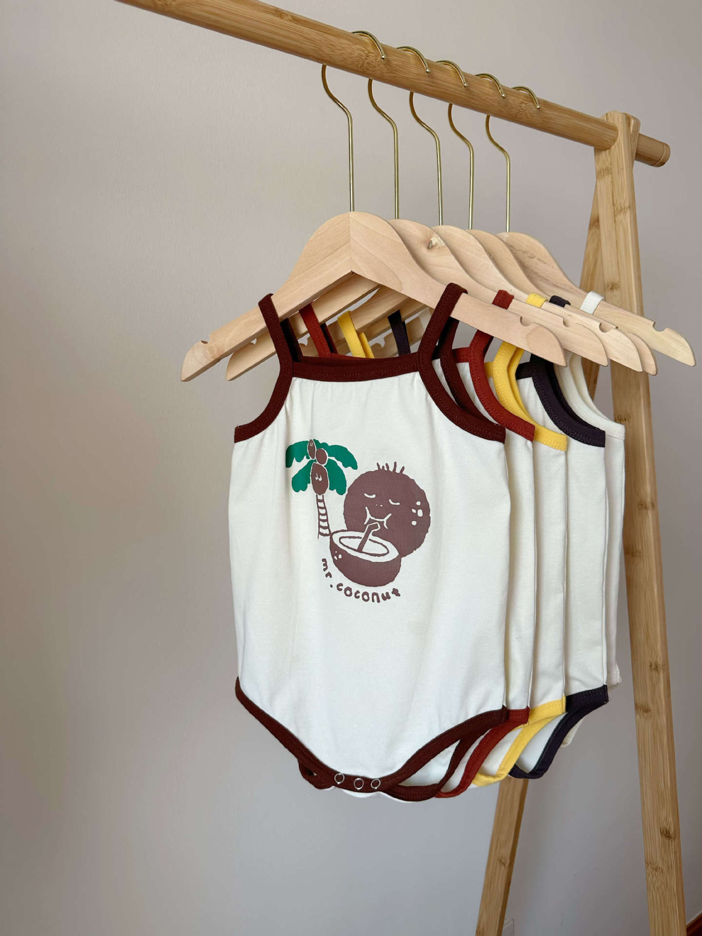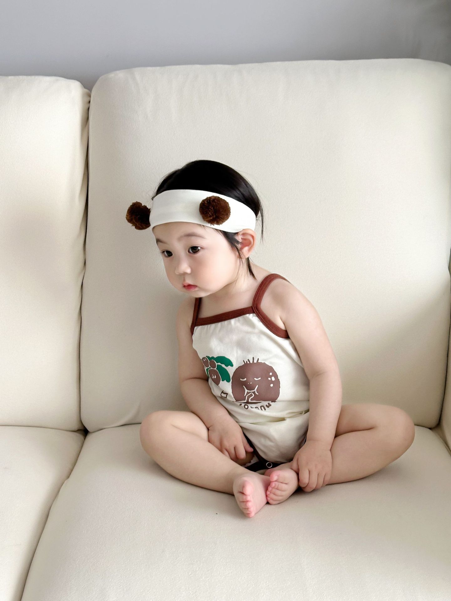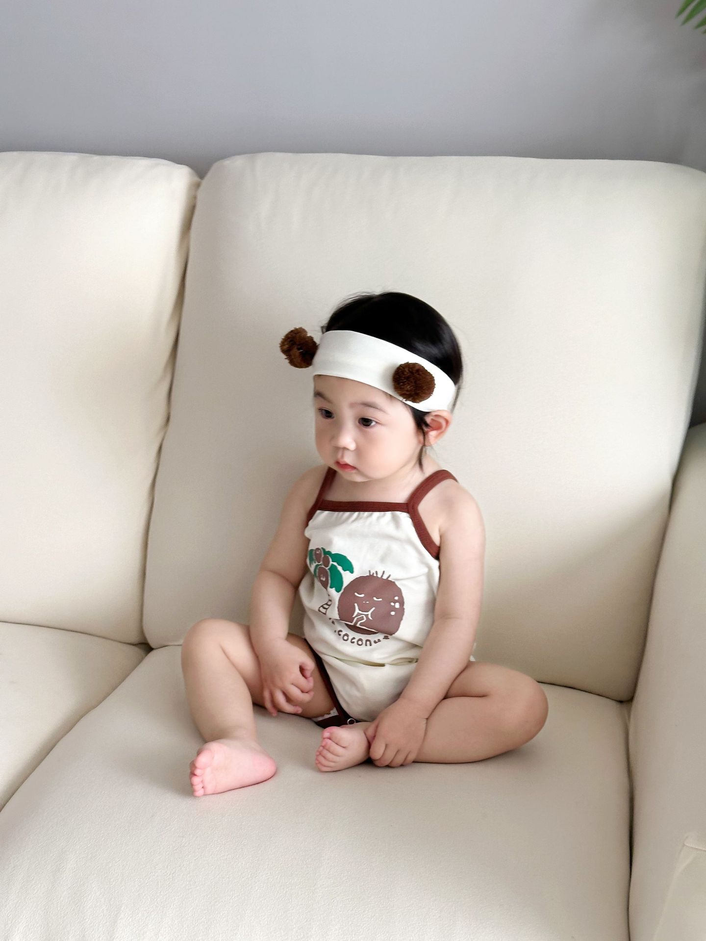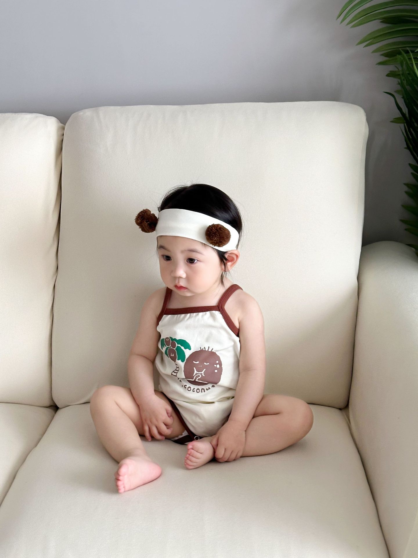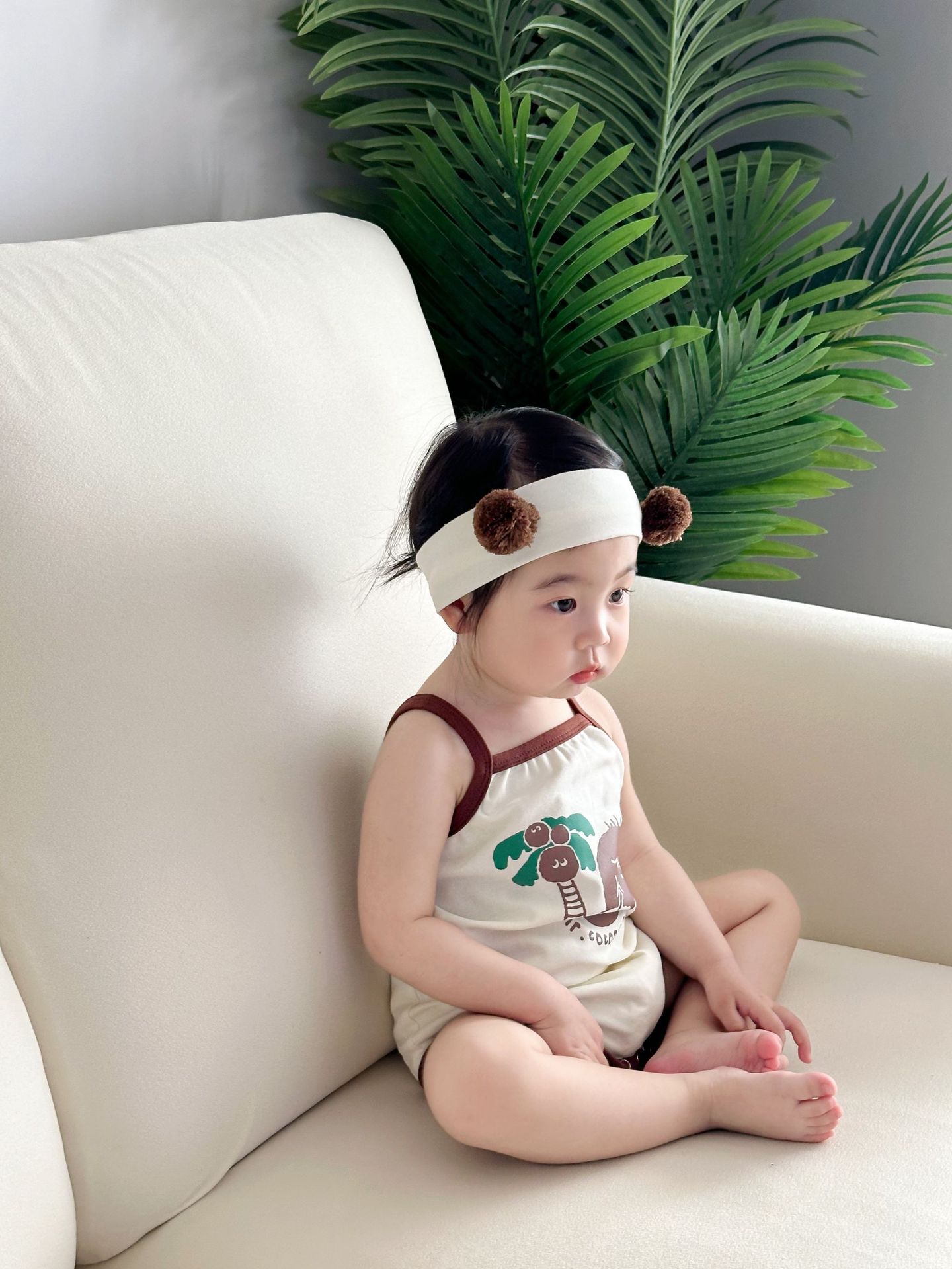 62412LS-夏季韓版椰子印花吊帶哈衣+頭巾套